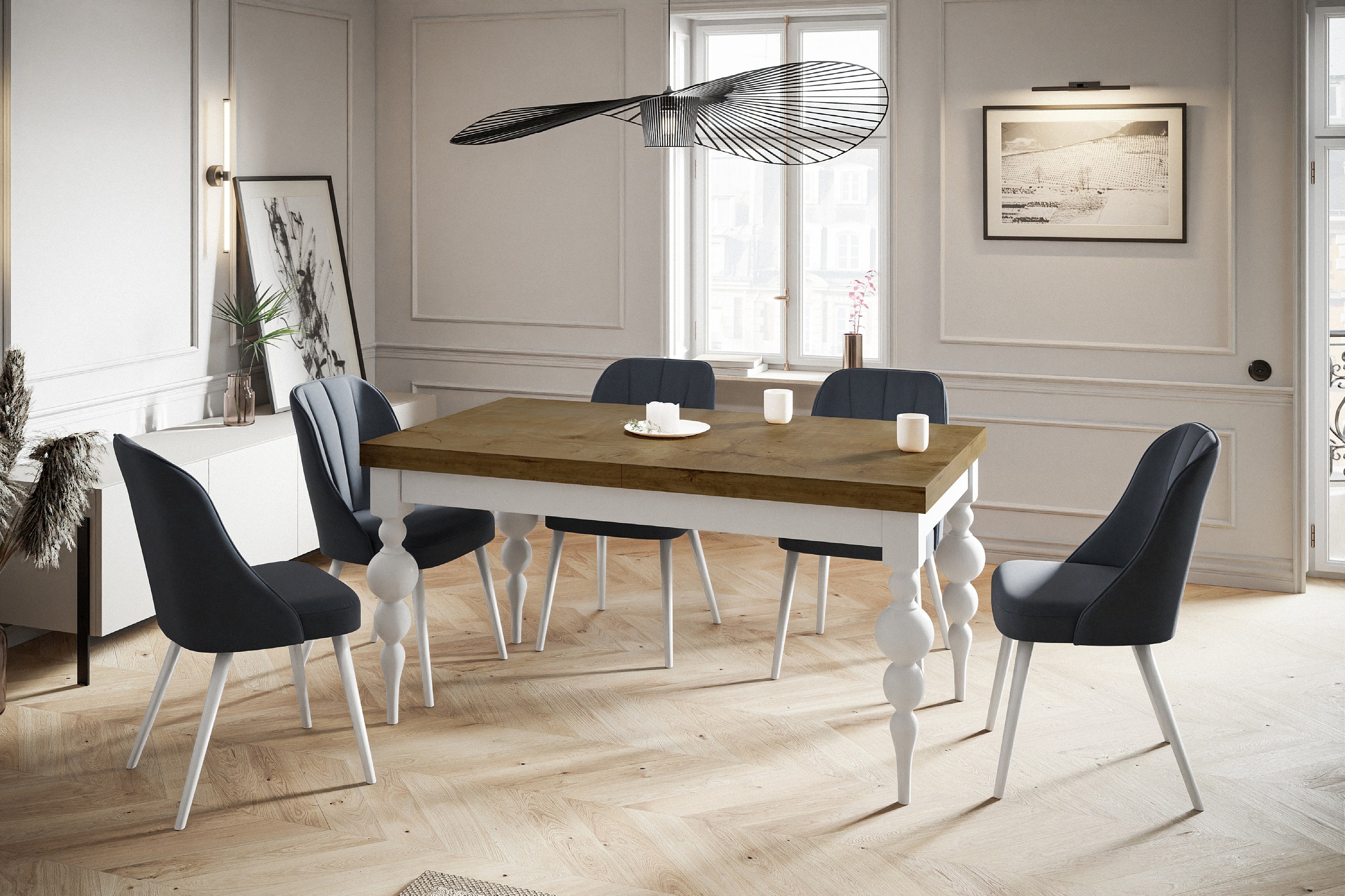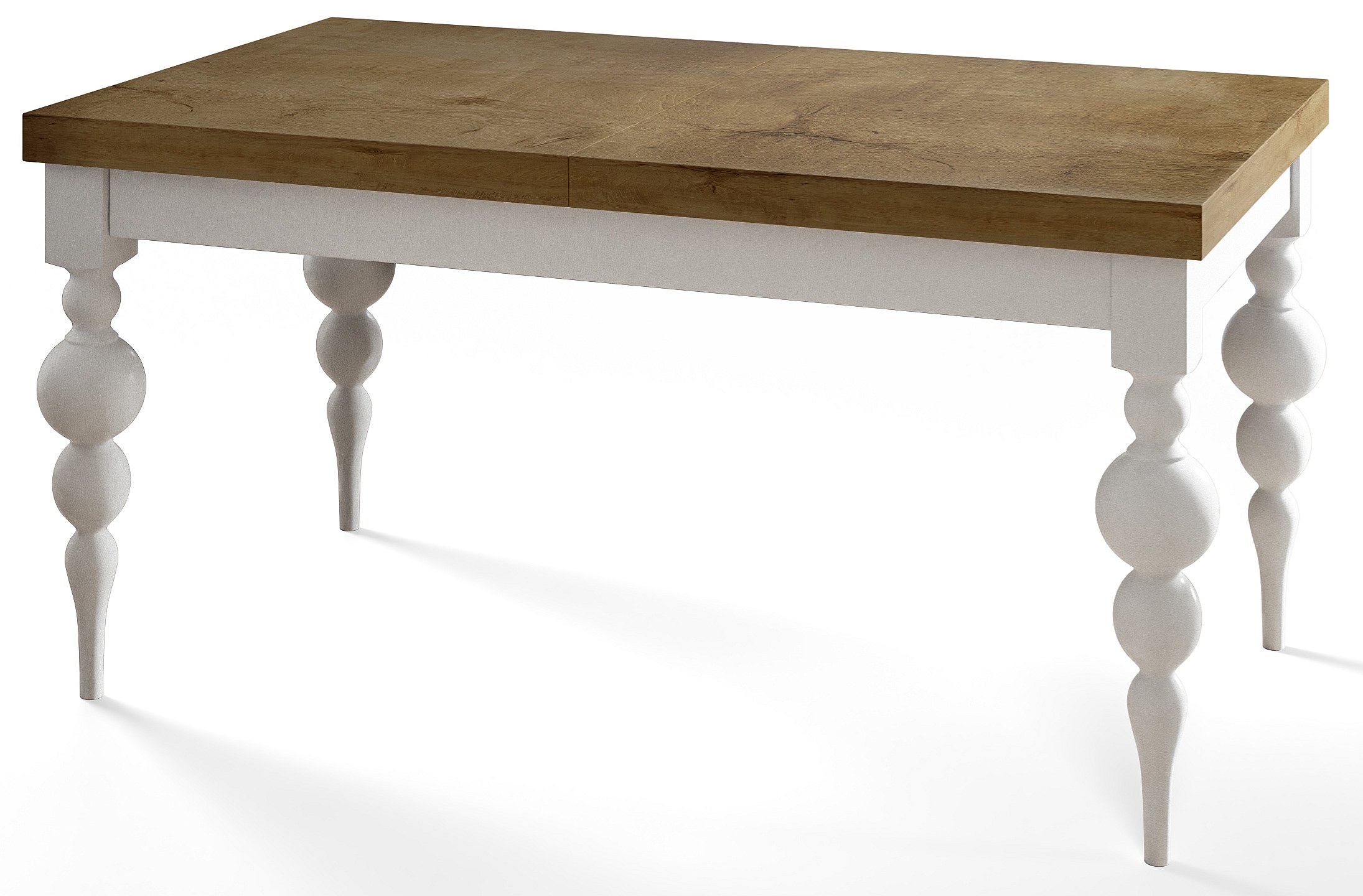 Table de salle à manger rectangulaire LENA, table à rallonges, dimensions: 160-210X90X78,5 cm, couleur: LEFKAS, avec pieds de table de couleur blanche