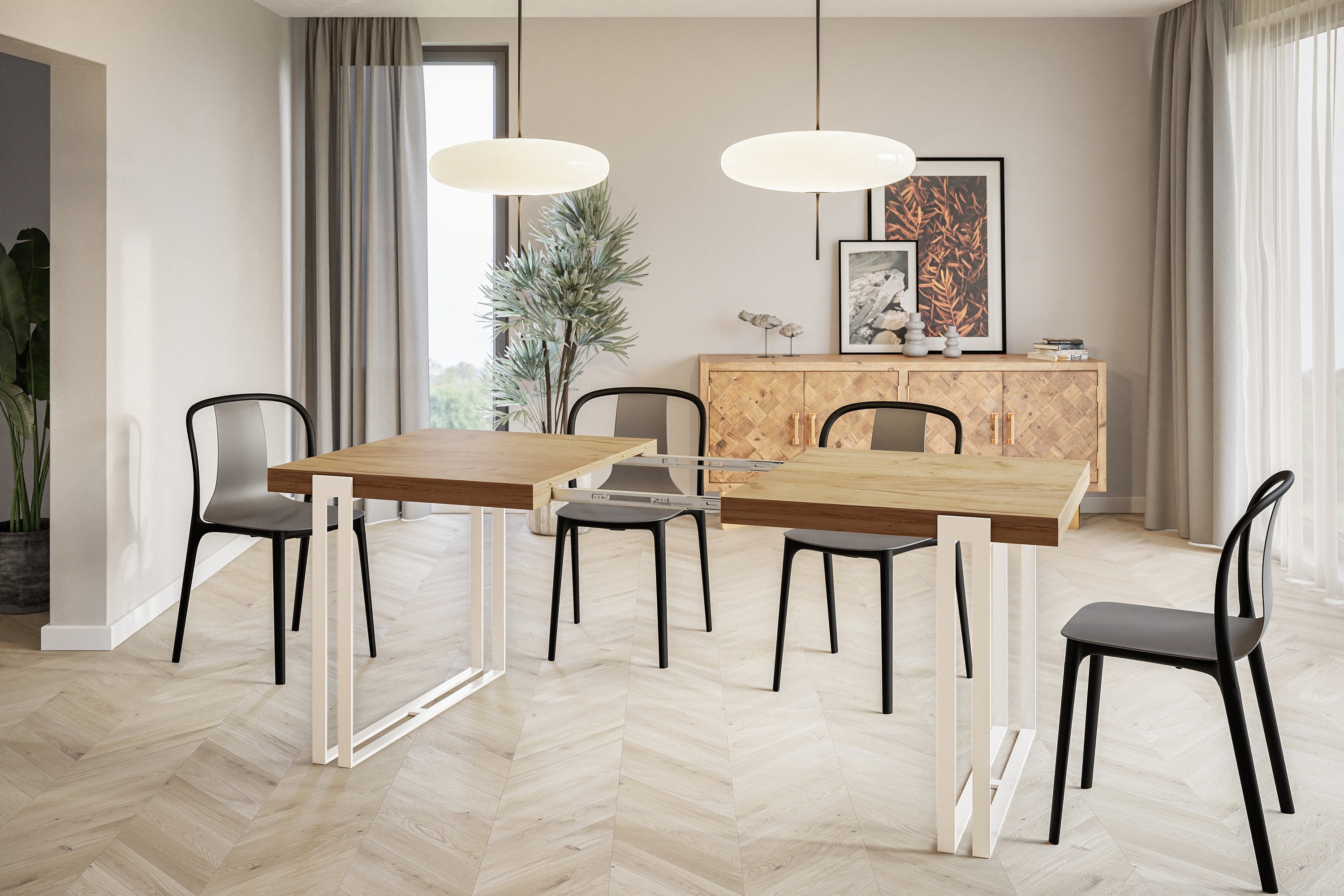 Table de salle à manger rectangulaire ROSA, table à rallonges, dimensions: 120-220X80X77 cm, couleur: CRAFT, avec pieds métalliques de couleur blanche