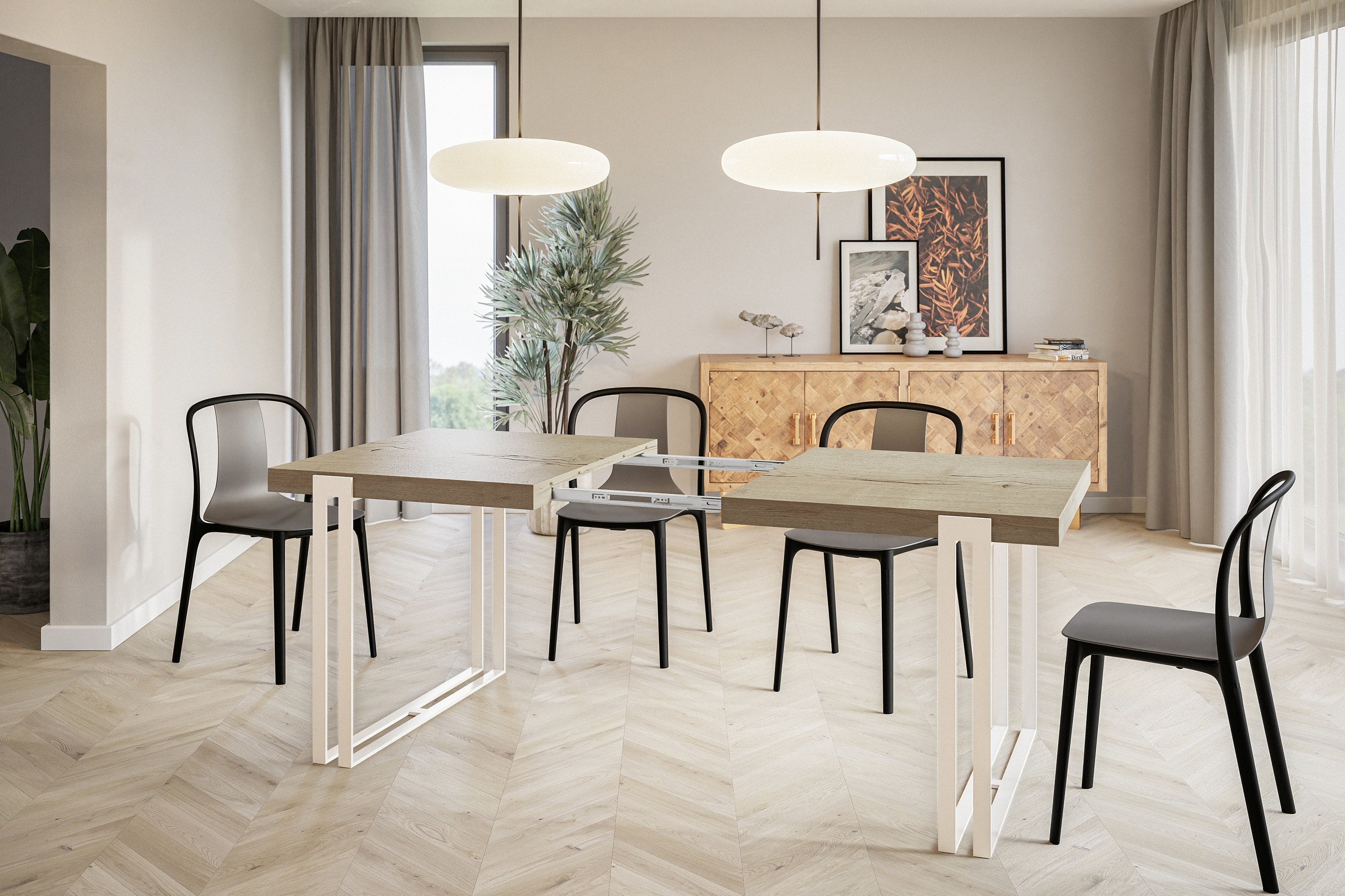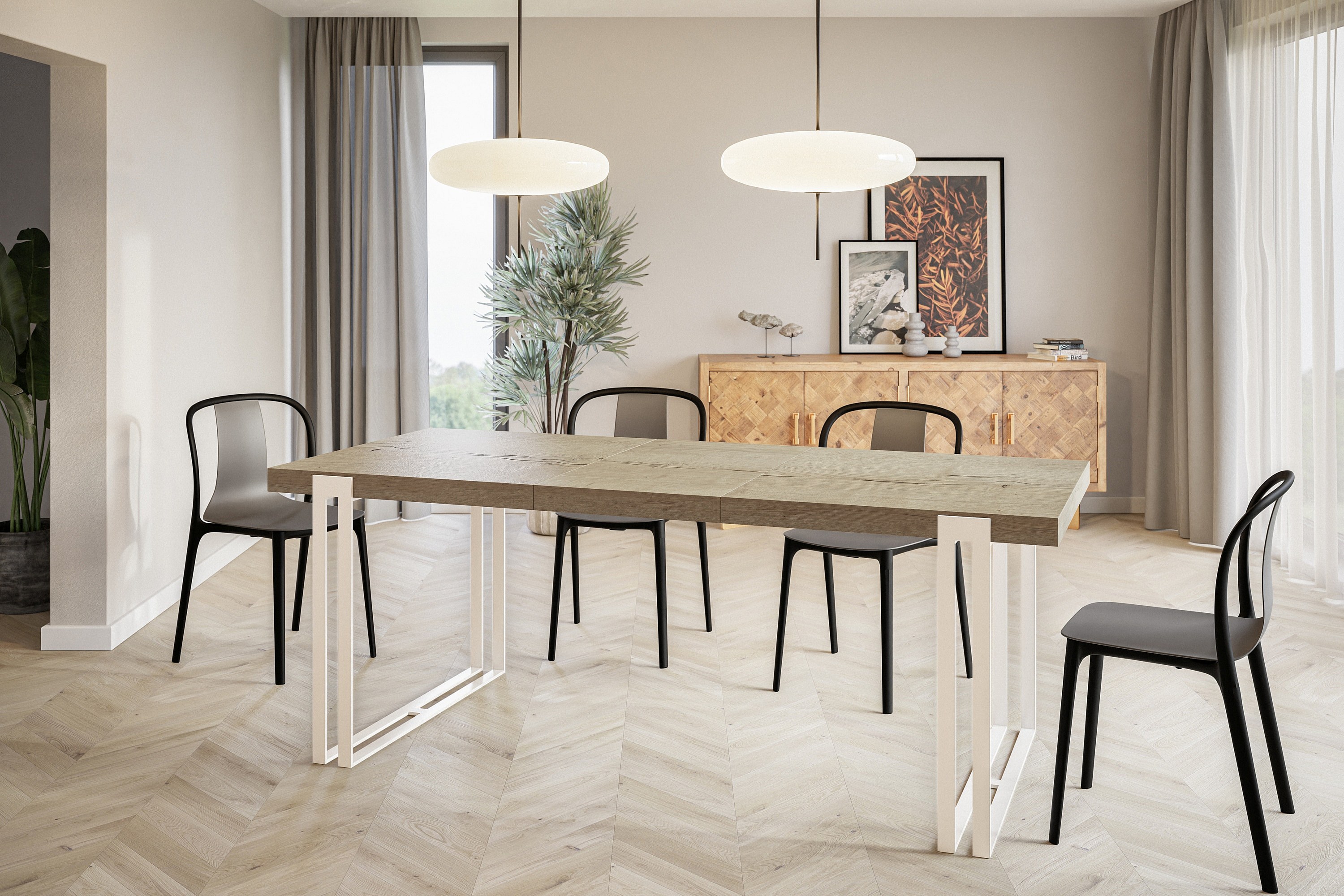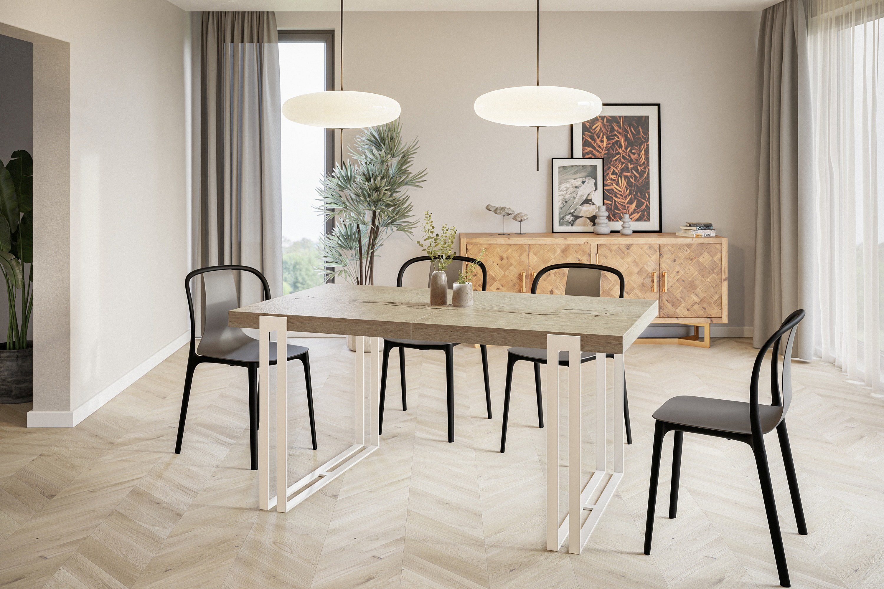 Table de salle à manger rectangulaire ROSA, table à rallonges, dimensions: 120-220X80X77 cm, couleur: HALIFAX, avec pieds métalliques de couleur blanche