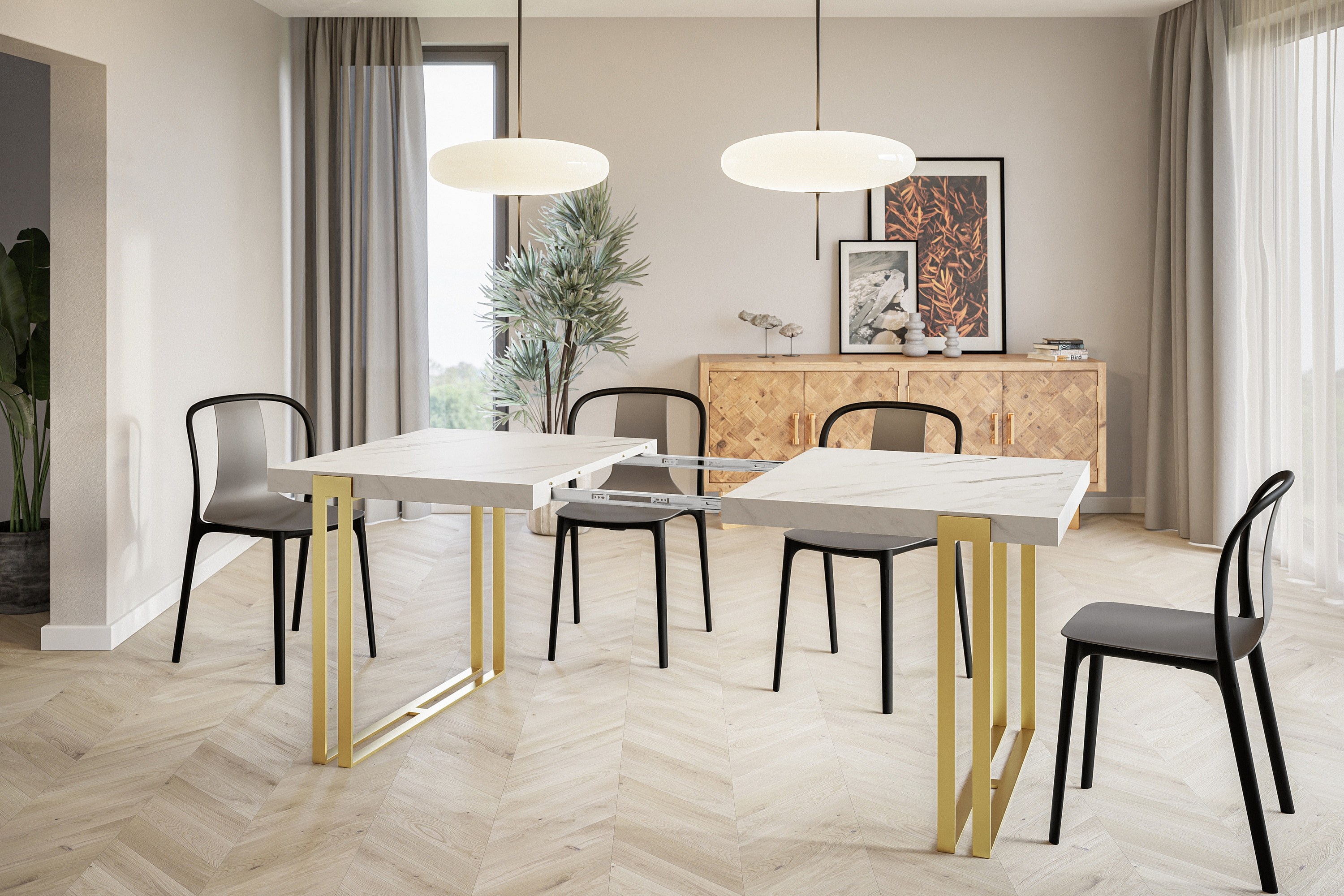 Table de salle à manger rectangulaire ROSA, table à rallonges, dimensions: 120-220X80X77 cm,couleur: MARMUR, avec pieds métalliques couleur or