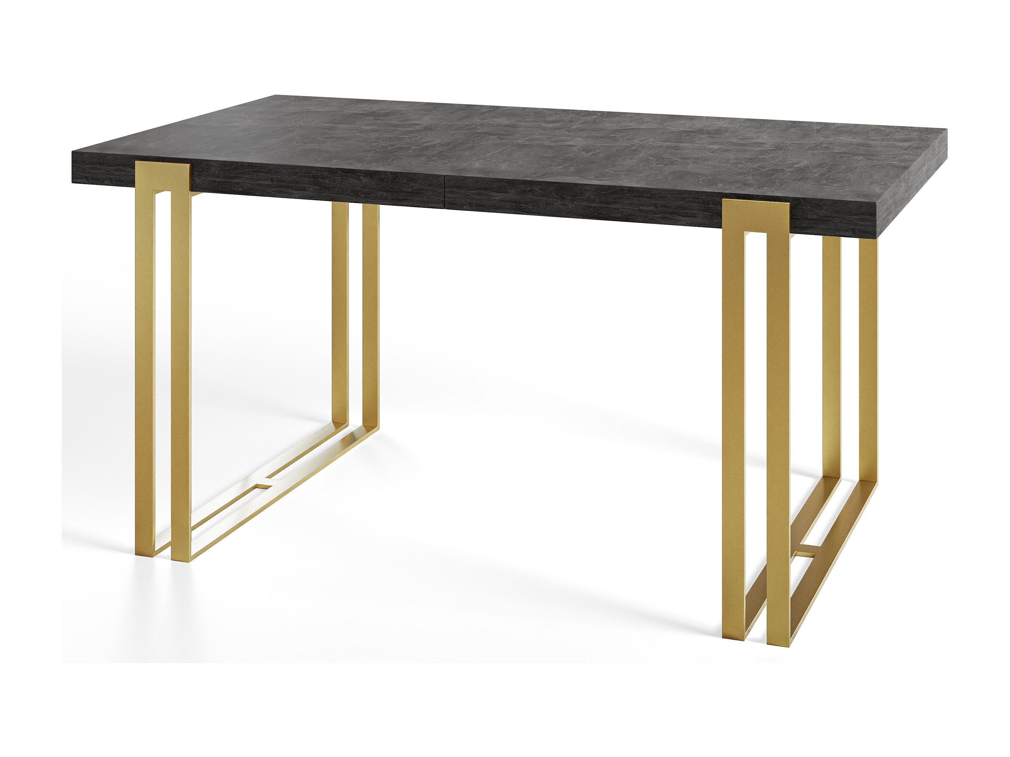 Table de salle à manger rectangulaire ROSA, table à rallonges, dimensions: 140-240X80X77 cm,couleur: gris foncé, avec pieds métalliques couleur or