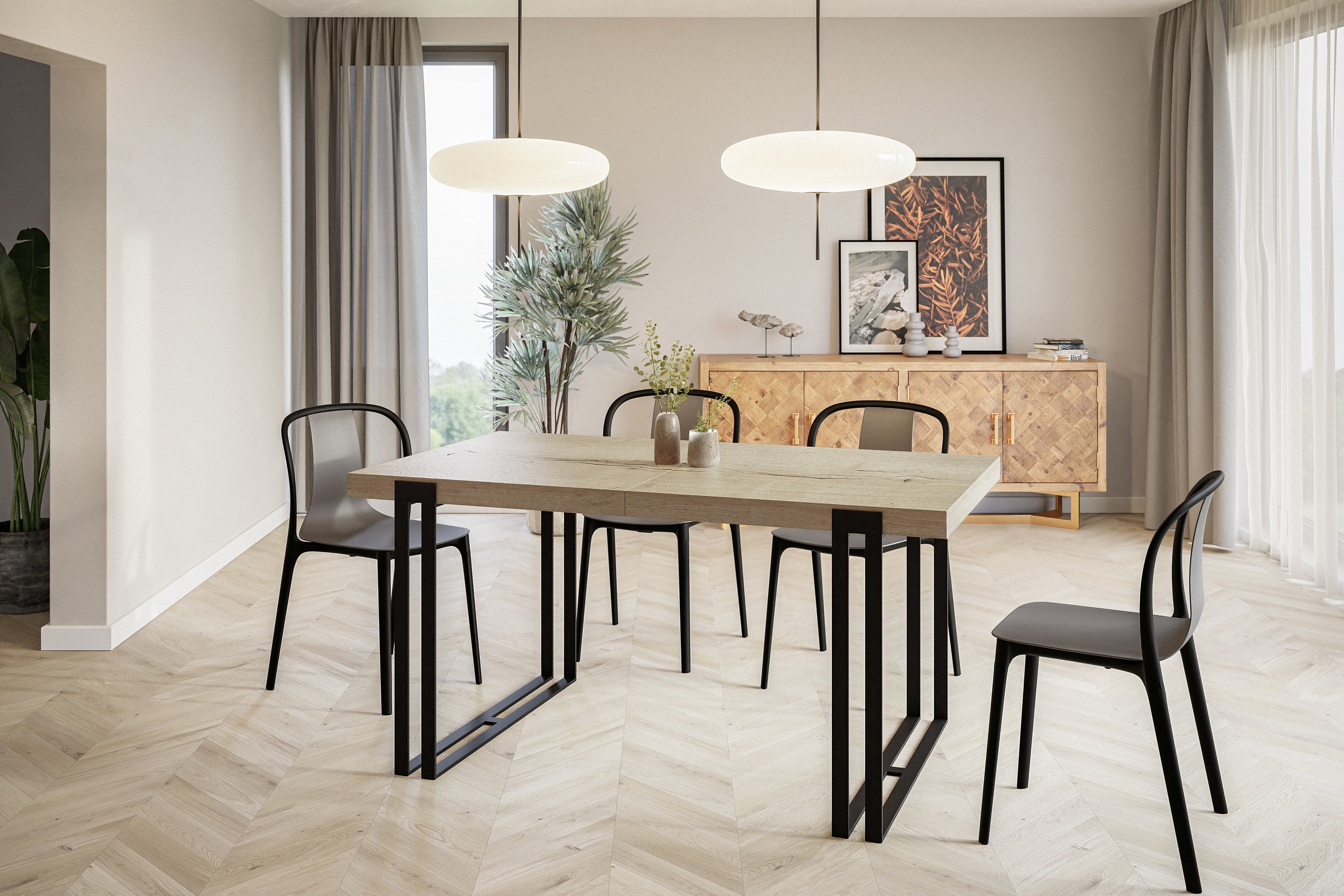 Table de salle à manger rectangulaire ROSA, table à rallonges, dimensions: 140-240X80X77 cm, couleur: HALIFAX, avec pieds métalliques de couleur noire