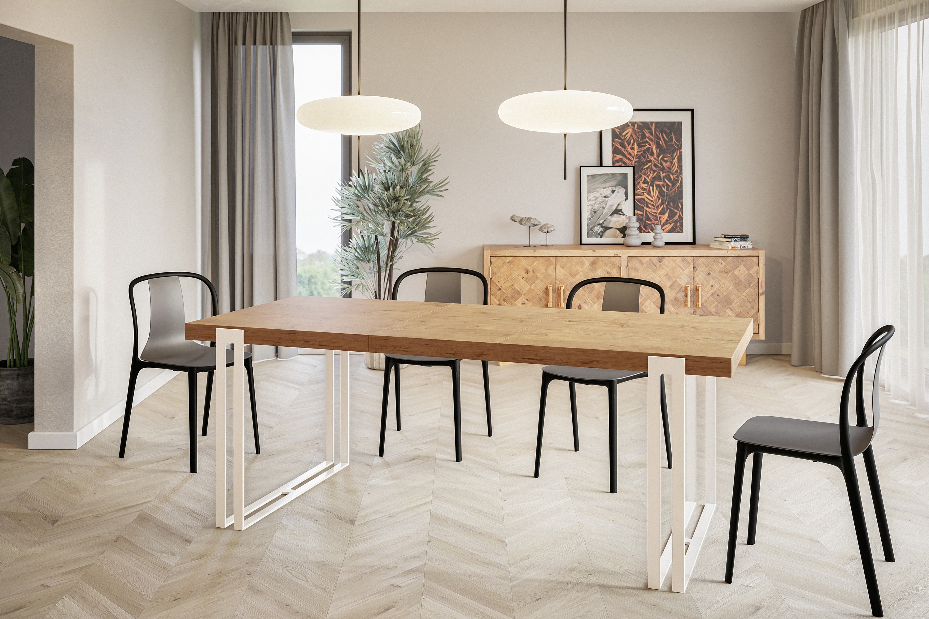 Table de salle à manger rectangulaire ROSA, table à rallonges, dimensions: 140-240X80X77 cm, couleur: LANCELOT, avec pieds métalliques de couleur blanche
