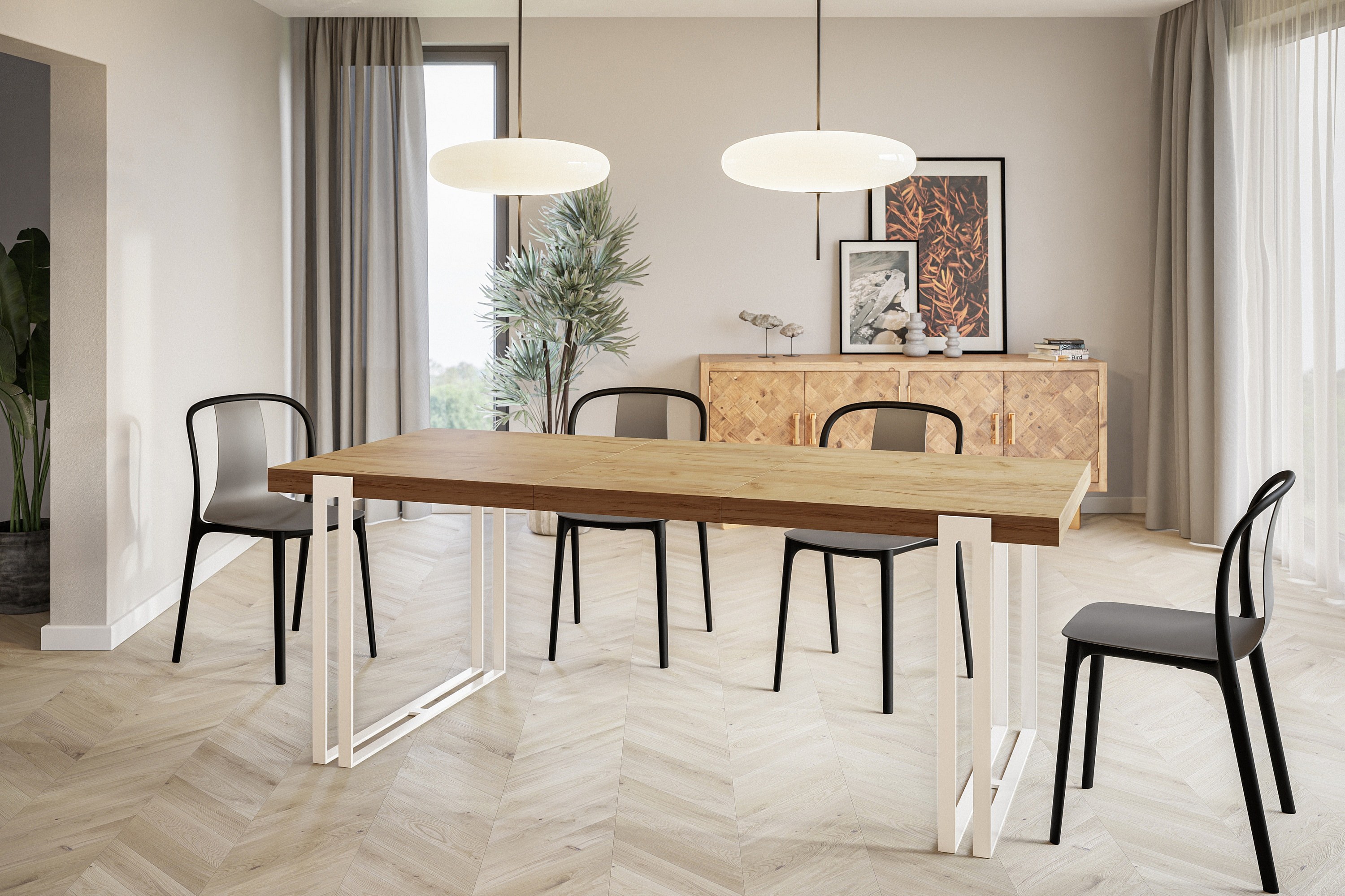 Table de salle à manger rectangulaire ROSA, table à rallonges, dimensions: 160-260X90X77 cm,couleur: CRAFT, avec pieds métalliques de couleur blanche