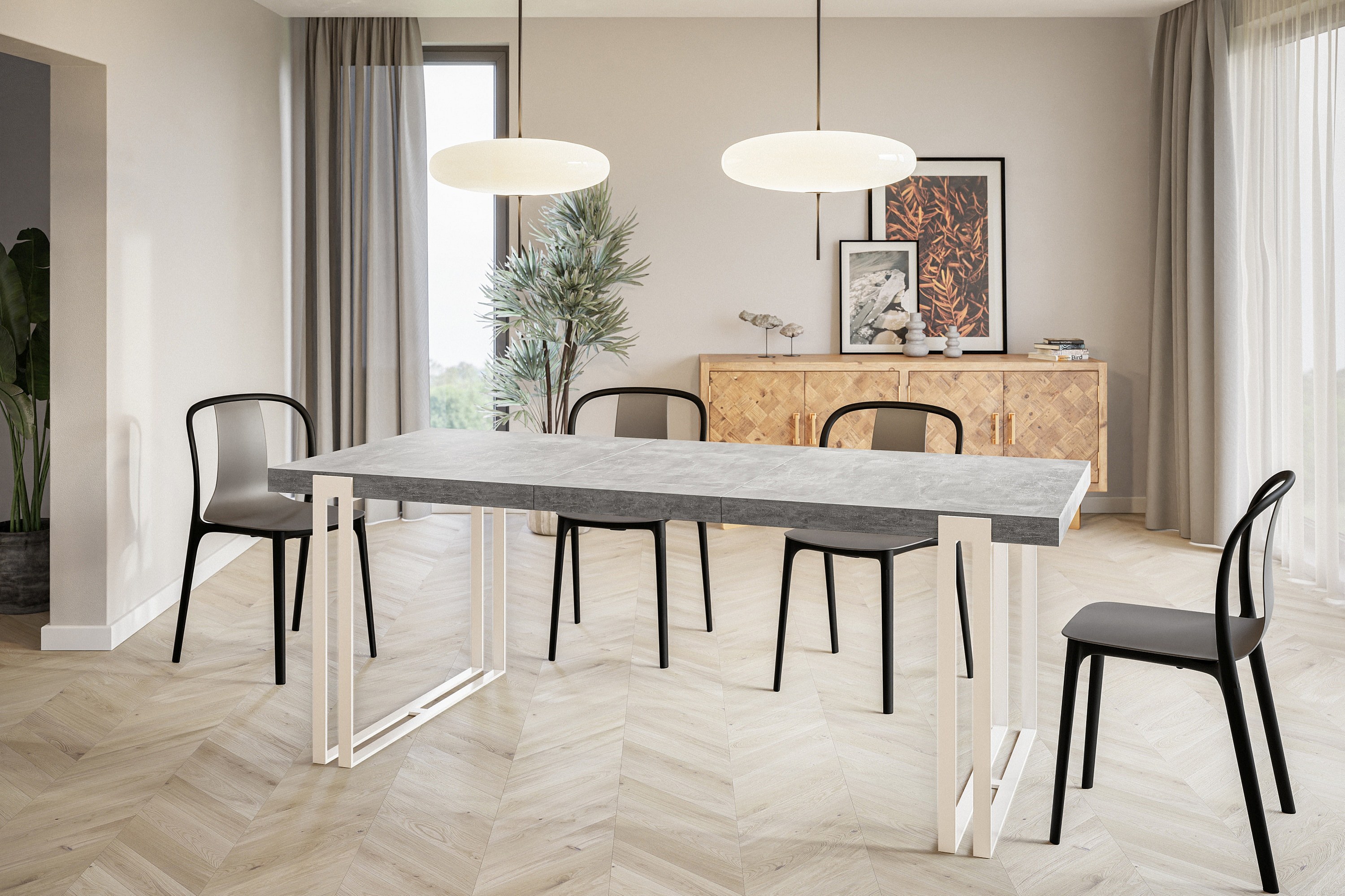 Table de salle à manger rectangulaire ROSA, table à rallonges, dimensions: 160-260X90X77 cm, couleur: gris clair, avec pieds métalliques de couleur blanche