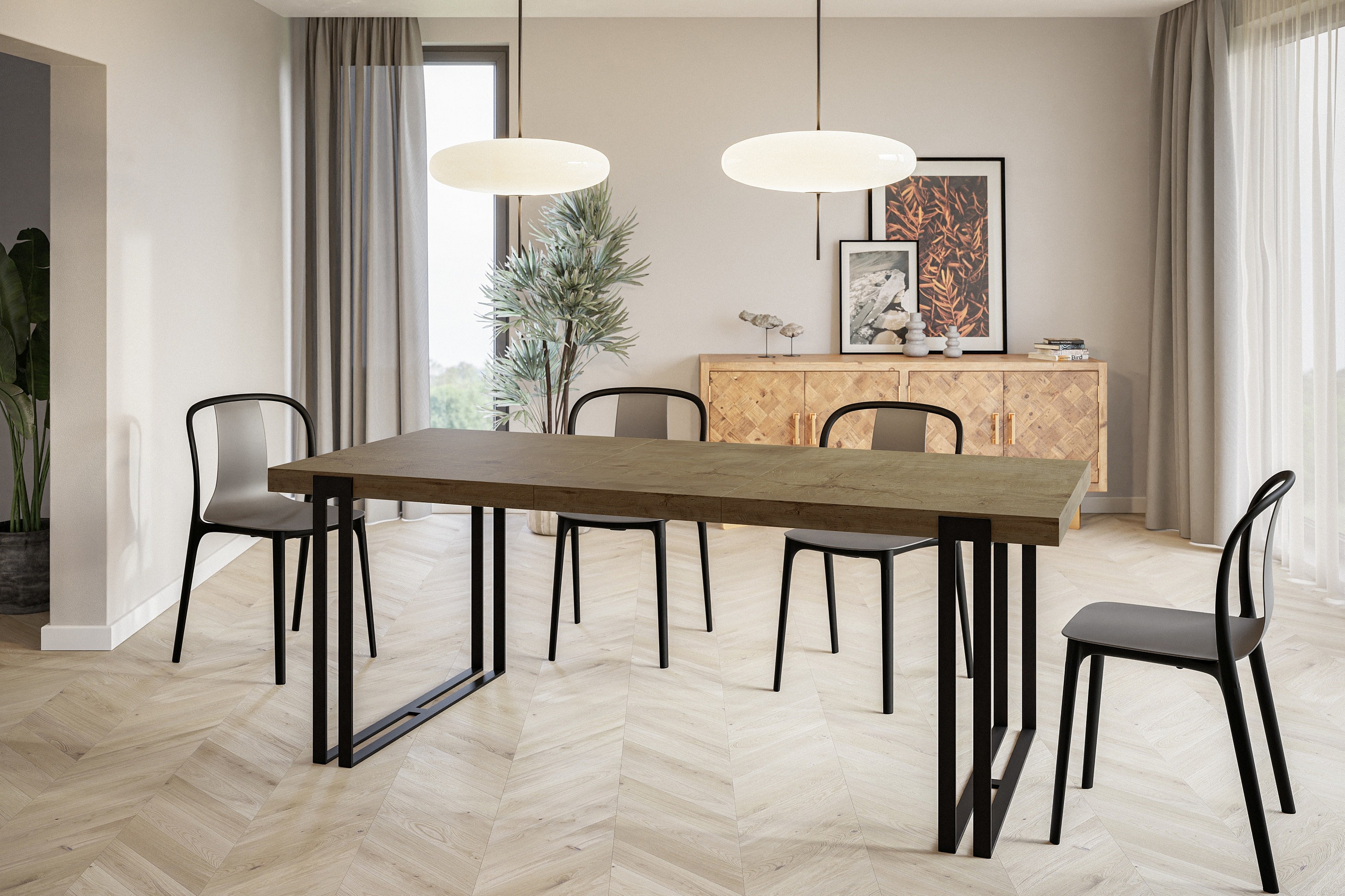Table de salle à manger rectangulaire ROSA, table à rallonges, dimensions: 160-260X90X77 cm, couleur: LEFKAS, avec pieds métalliques de couleur noire