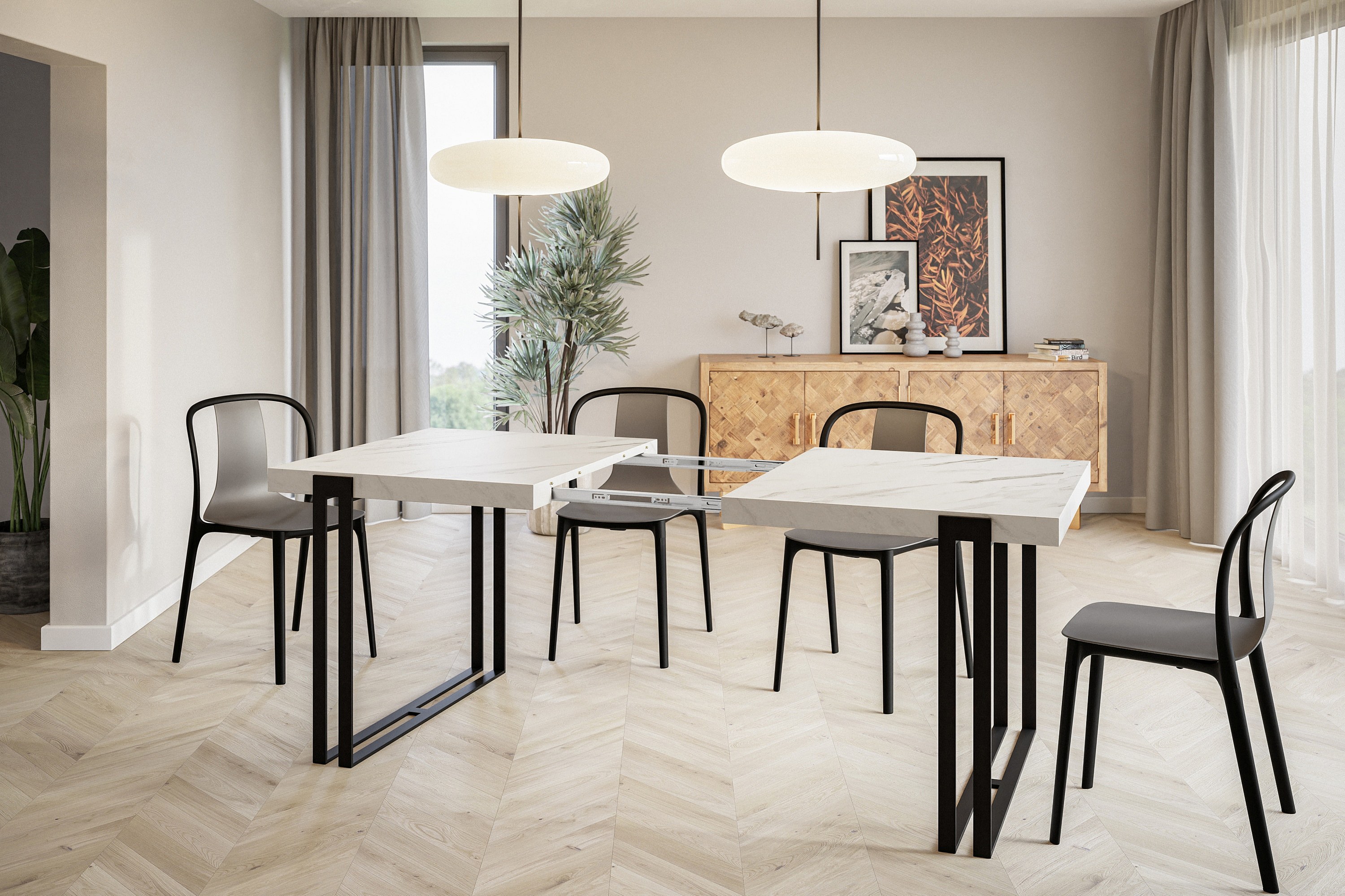 Table de salle à manger rectangulaire ROSA, table à rallonges, dimensions: 160-260X90X77 cm,couleur: MARBRE, avec pieds métalliques de couleur noire