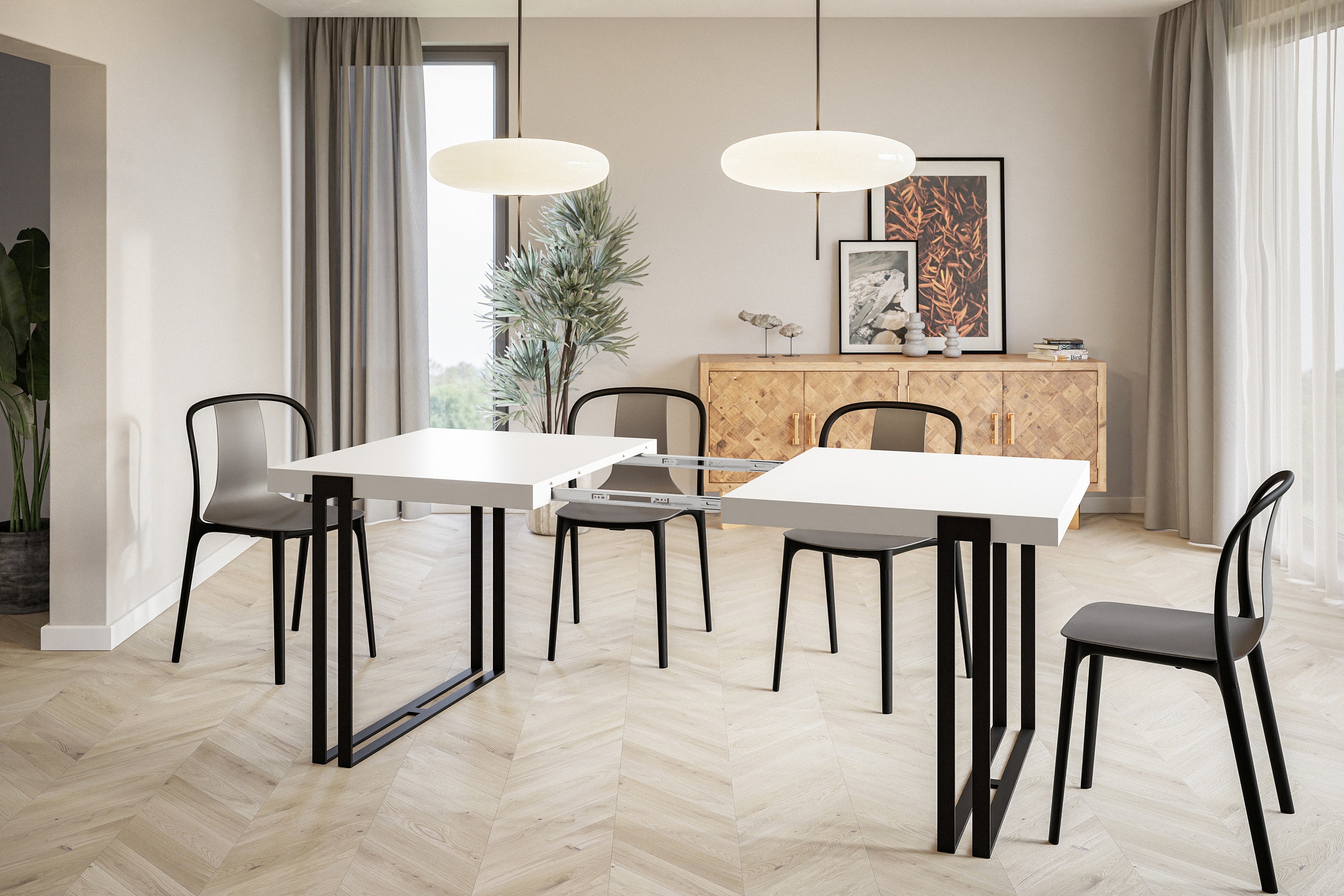 Table de salle à manger rectangulaire ROSA, table à rallonges, dimensions: 180-280X90X77 cm,couleur: blanc, avec pieds métalliques de couleur noir