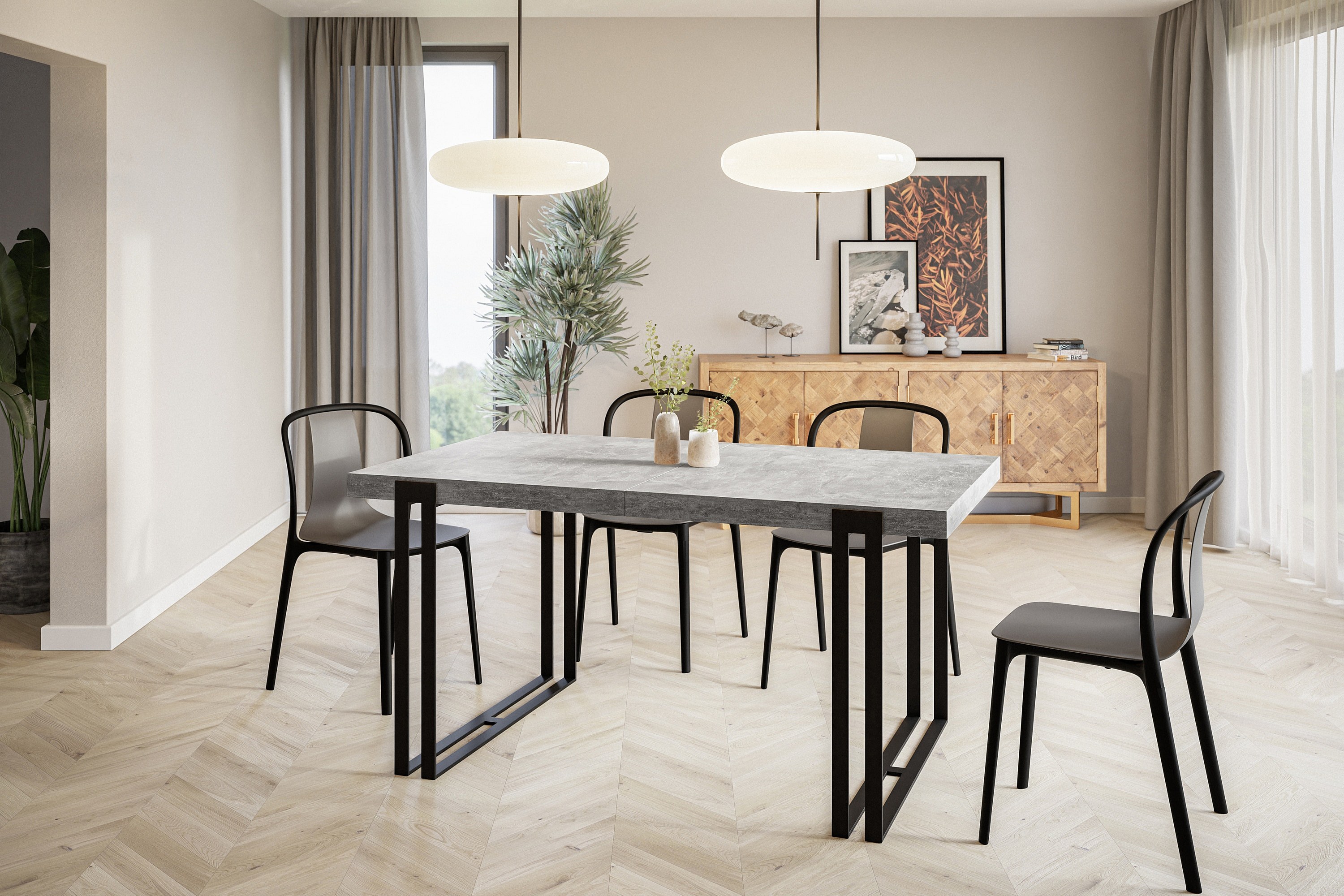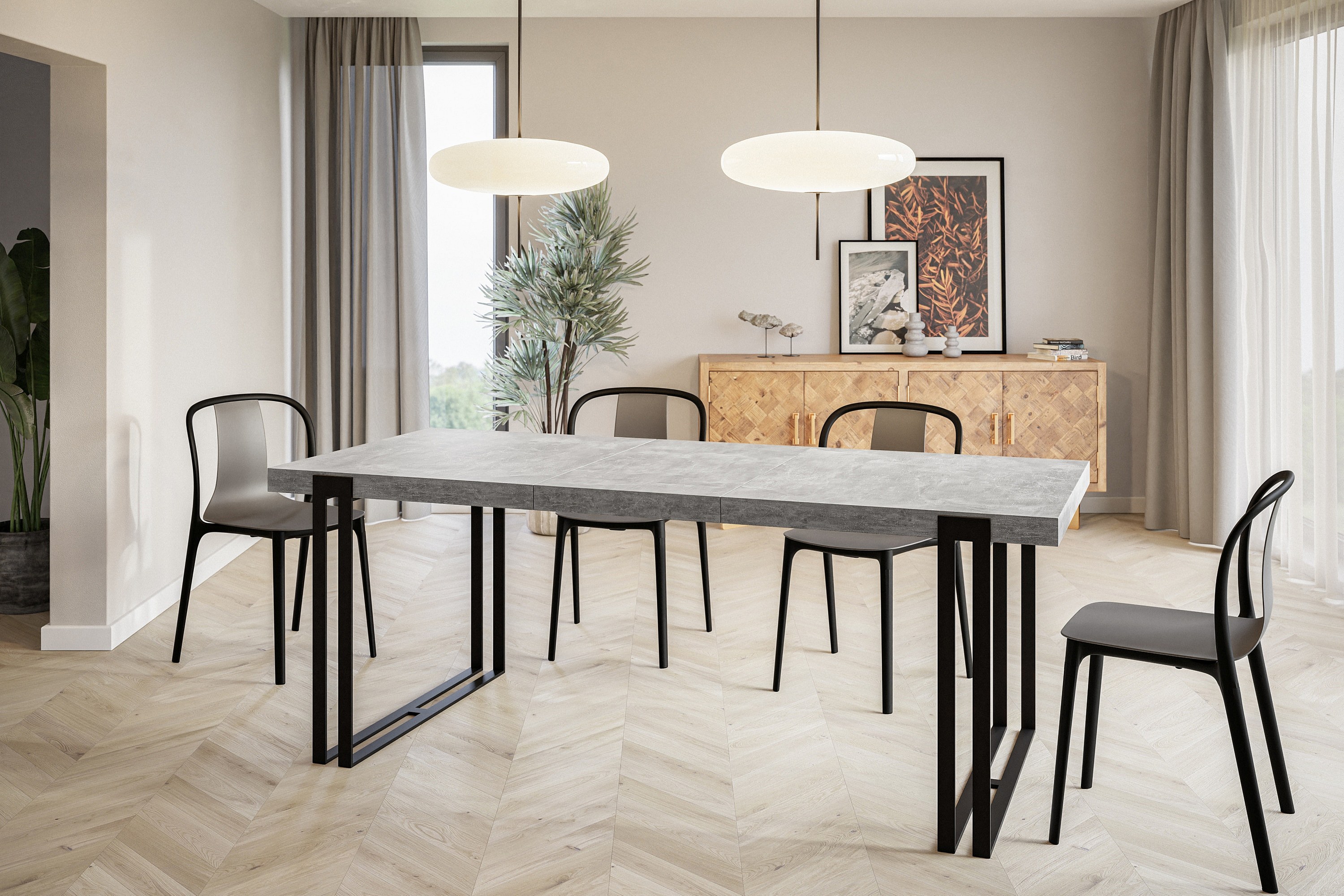 Table de salle à manger rectangulaire ROSA, table à rallonges, dimensions: 180-280X90X77 cm, couleur: gris clair, avec pieds métalliques de couleur noire