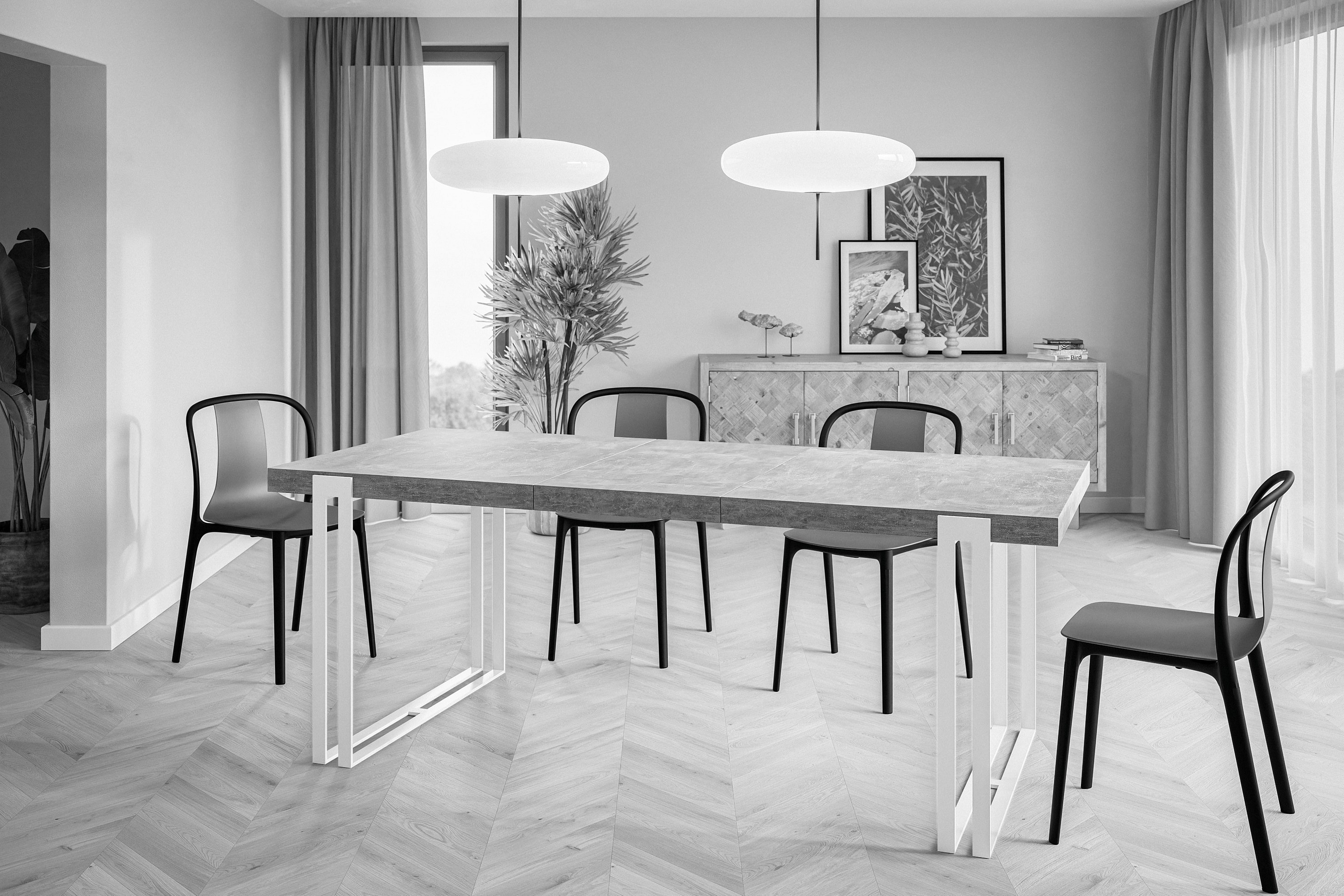Table de salle à manger rectangulaire ROSA, table à rallonges, dimensions: 180-280X90X77 cm, couleur: gris foncé, avec pieds métalliques couleur or
