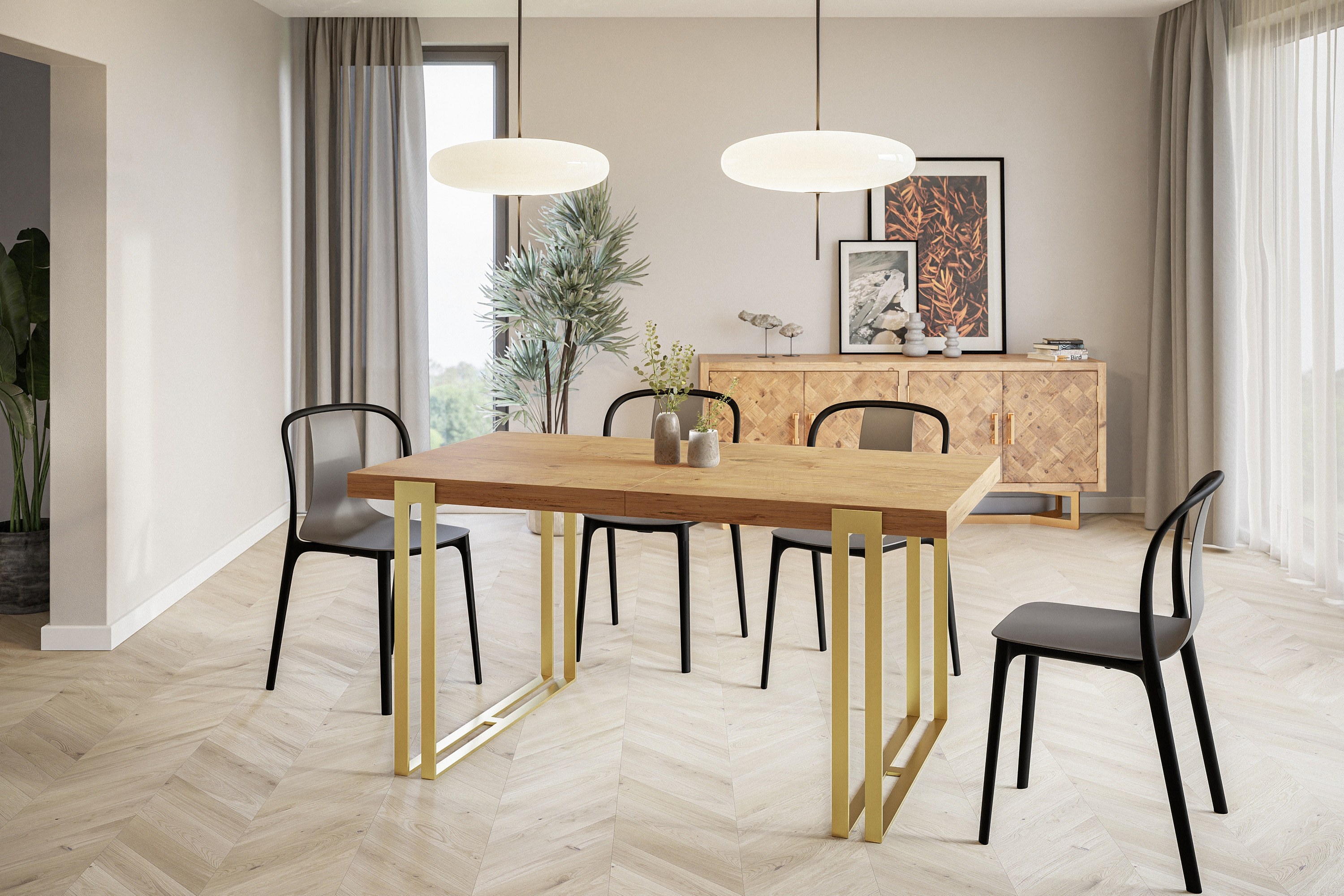 Table de salle à manger rectangulaire ROSA, table à rallonges, dimensions: 180-280X90X77 cm,couleur: LANCELOT, avec pieds métalliques couleur or