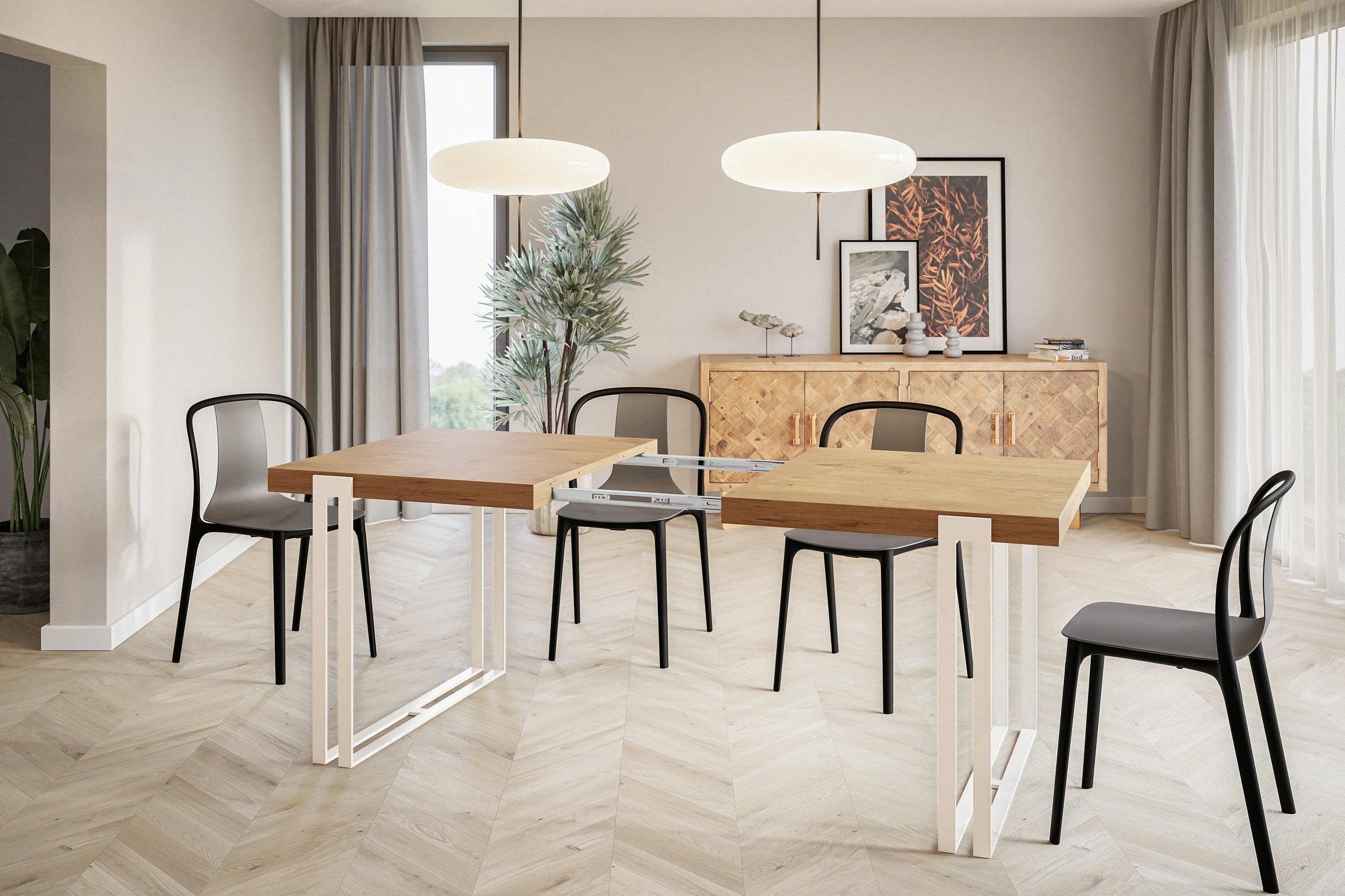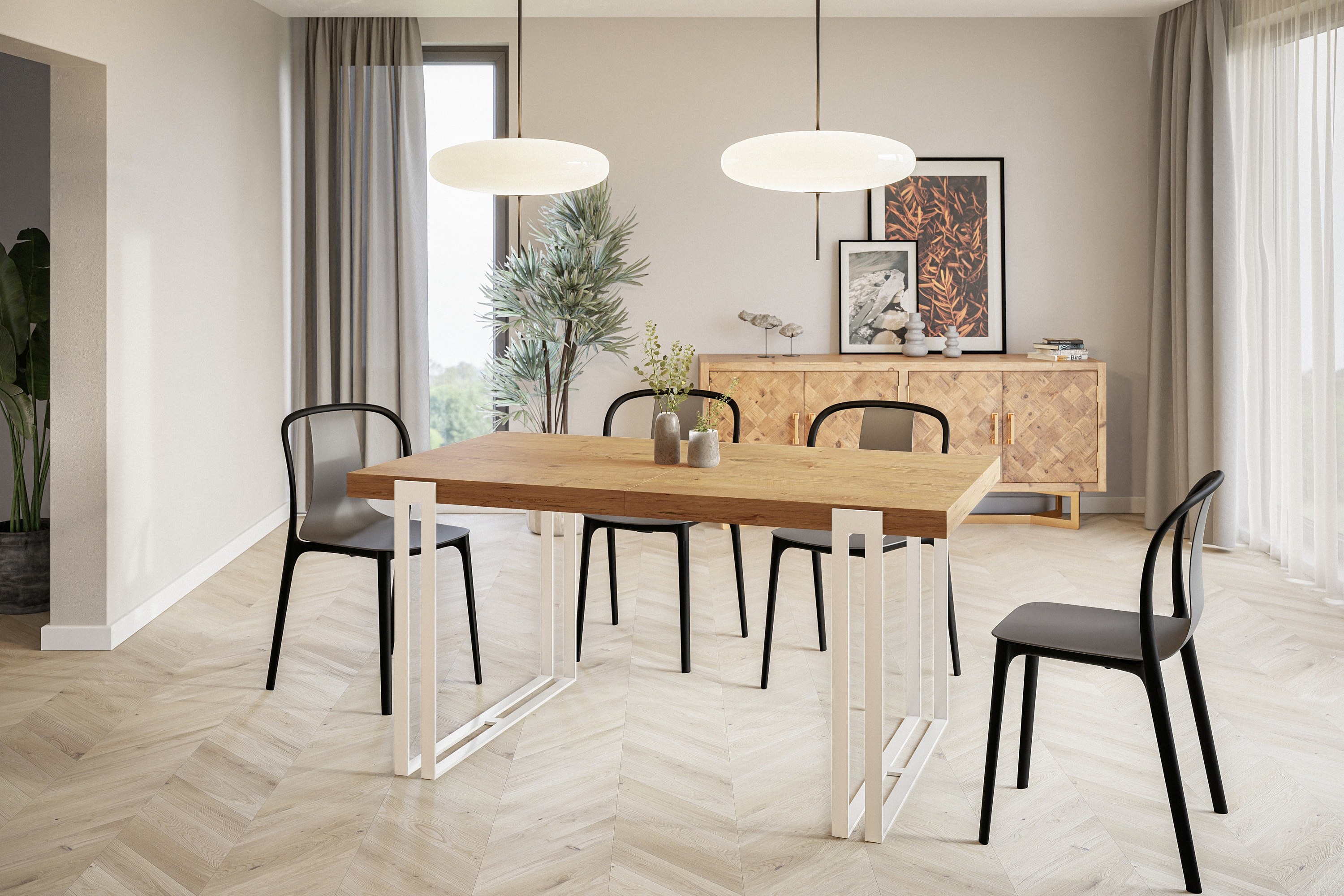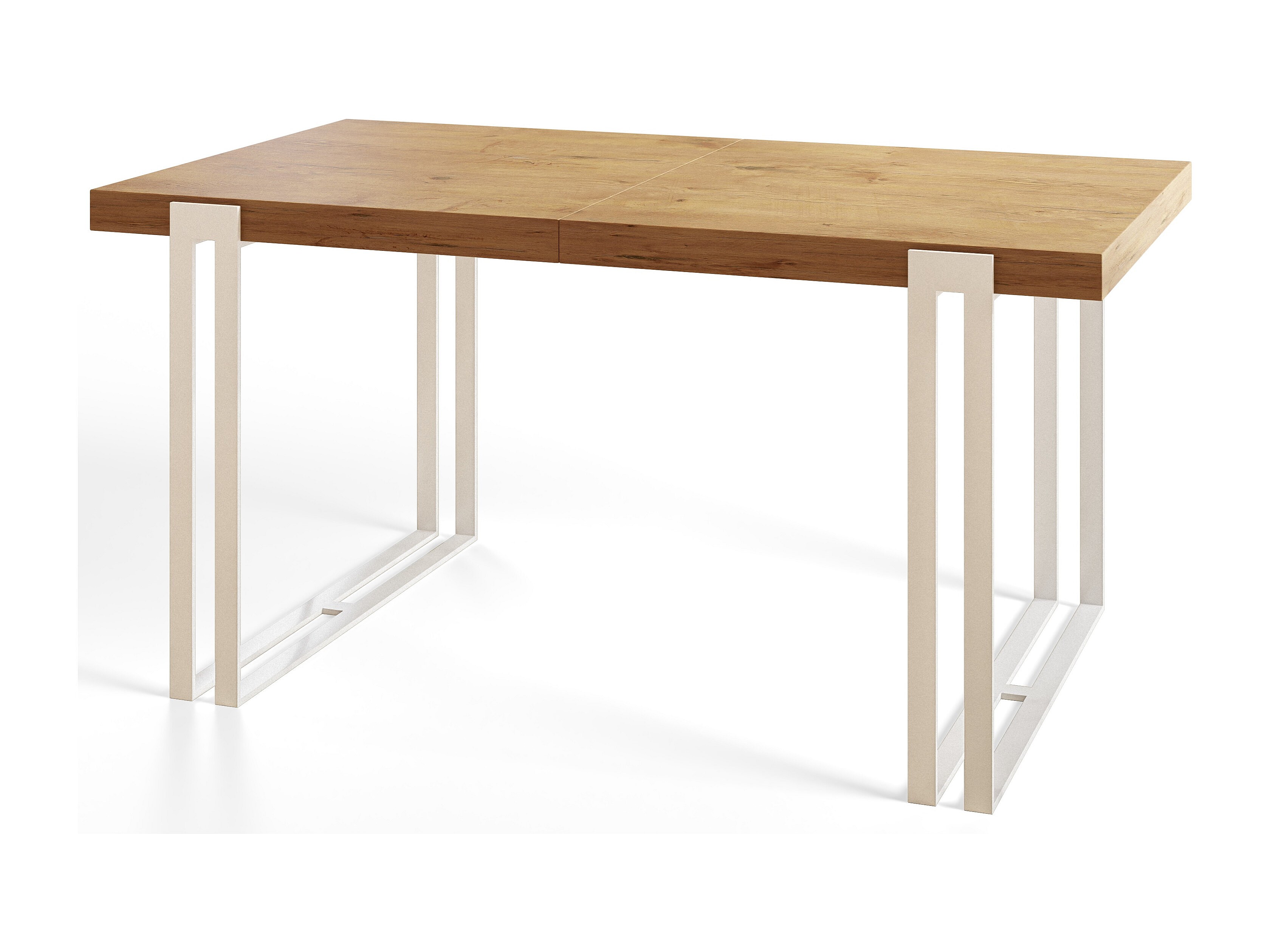 Table de salle à manger rectangulaire ROSA, table à rallonges, dimensions: 180-280X90X77 cm,couleur: LANCELOT, avec pieds métalliques de couleur blanche