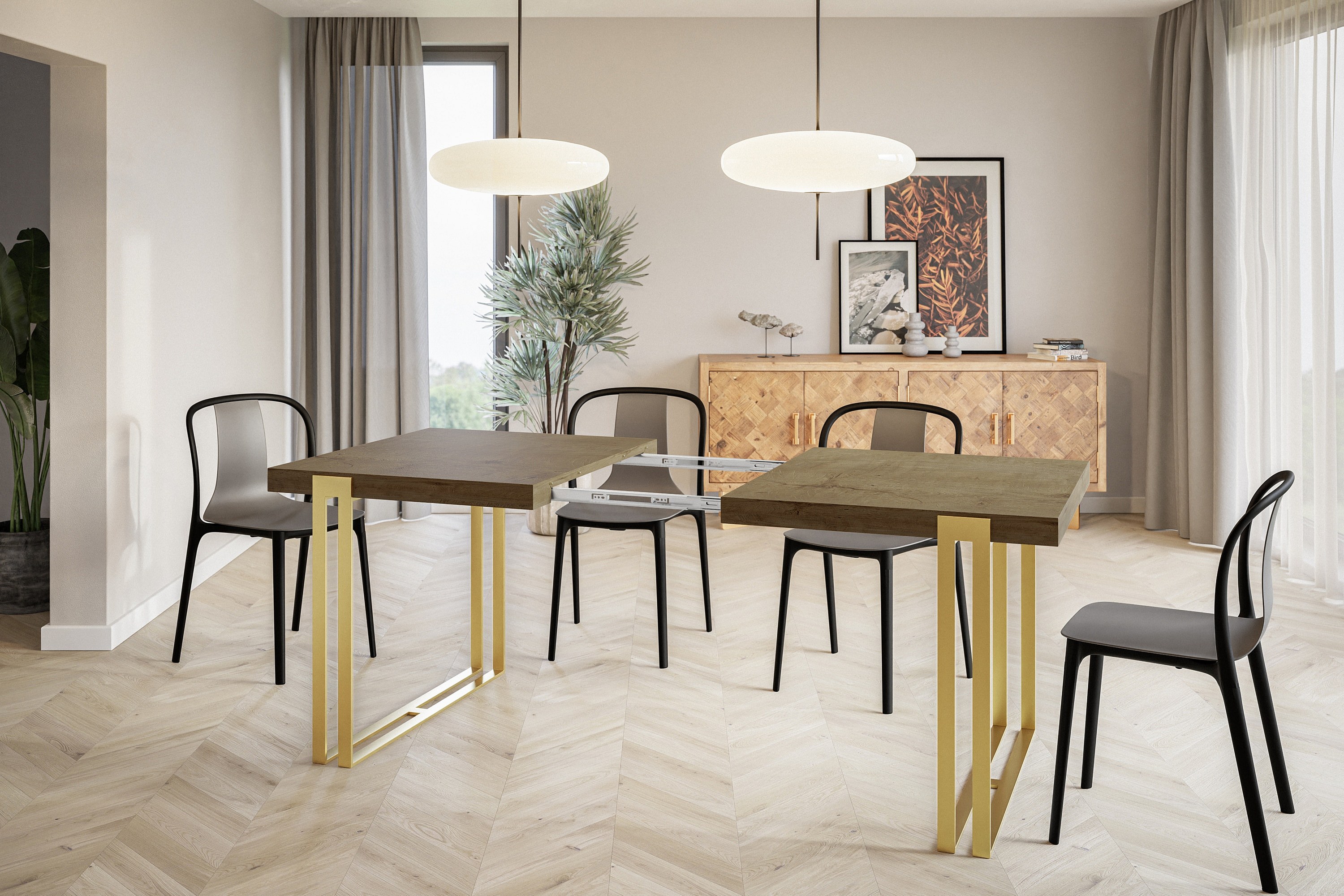 Table de salle à manger rectangulaire ROSA, table à rallonges, dimensions: 180-280X90X77 cm, couleur: LEFKAS, avec pieds métalliques couleur or