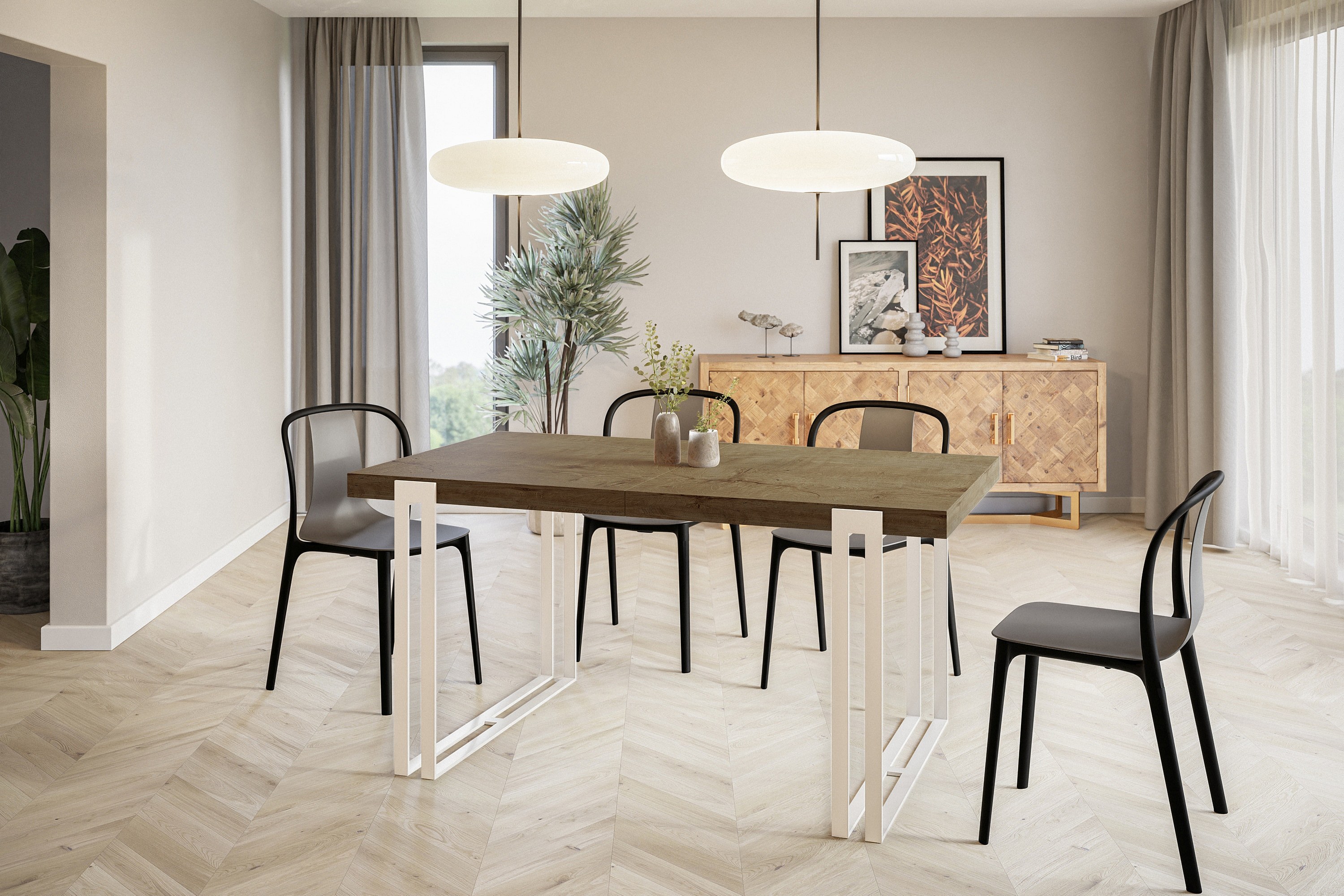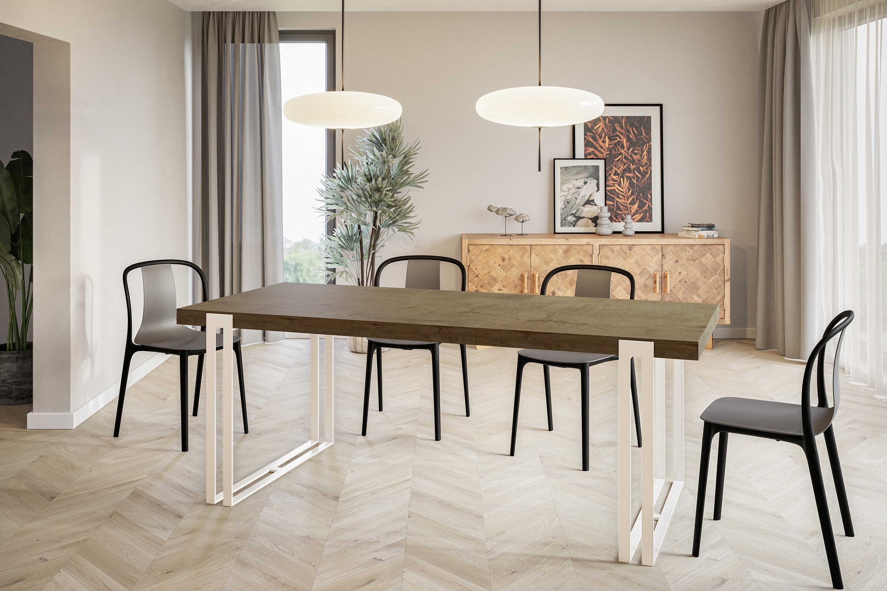 Table de salle à manger rectangulaire ROSA, table à rallonges, dimensions: 180-280X90X77 cm, couleur: LEFKAS, avec pieds métalliques de couleur blanche