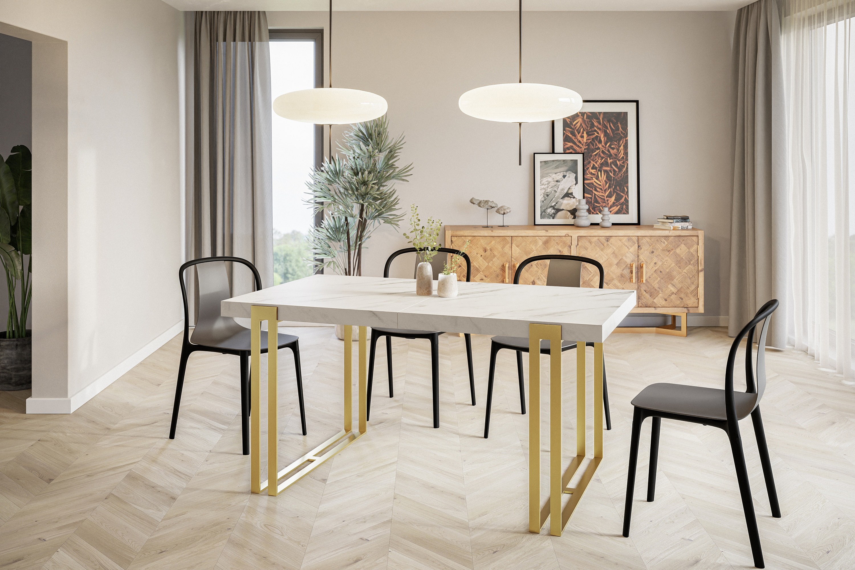 Table de salle à manger rectangulaire ROSA, table à rallonges, dimensions: 180-280X90X77 cm,couleur: MARBRE, avec pieds métalliques couleur or