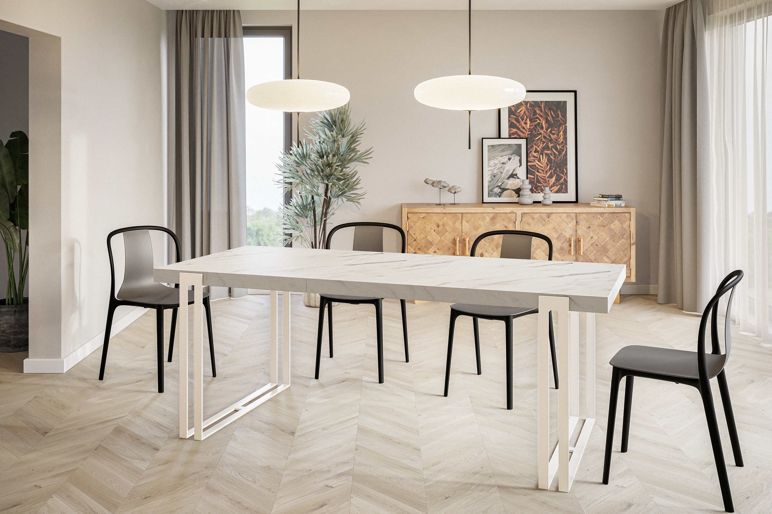 Table de salle à manger rectangulaire ROSA, table à rallonges, dimensions: 180-280X90X77 cm,couleur: MARBRE, avec pieds métalliques de couleur blanche