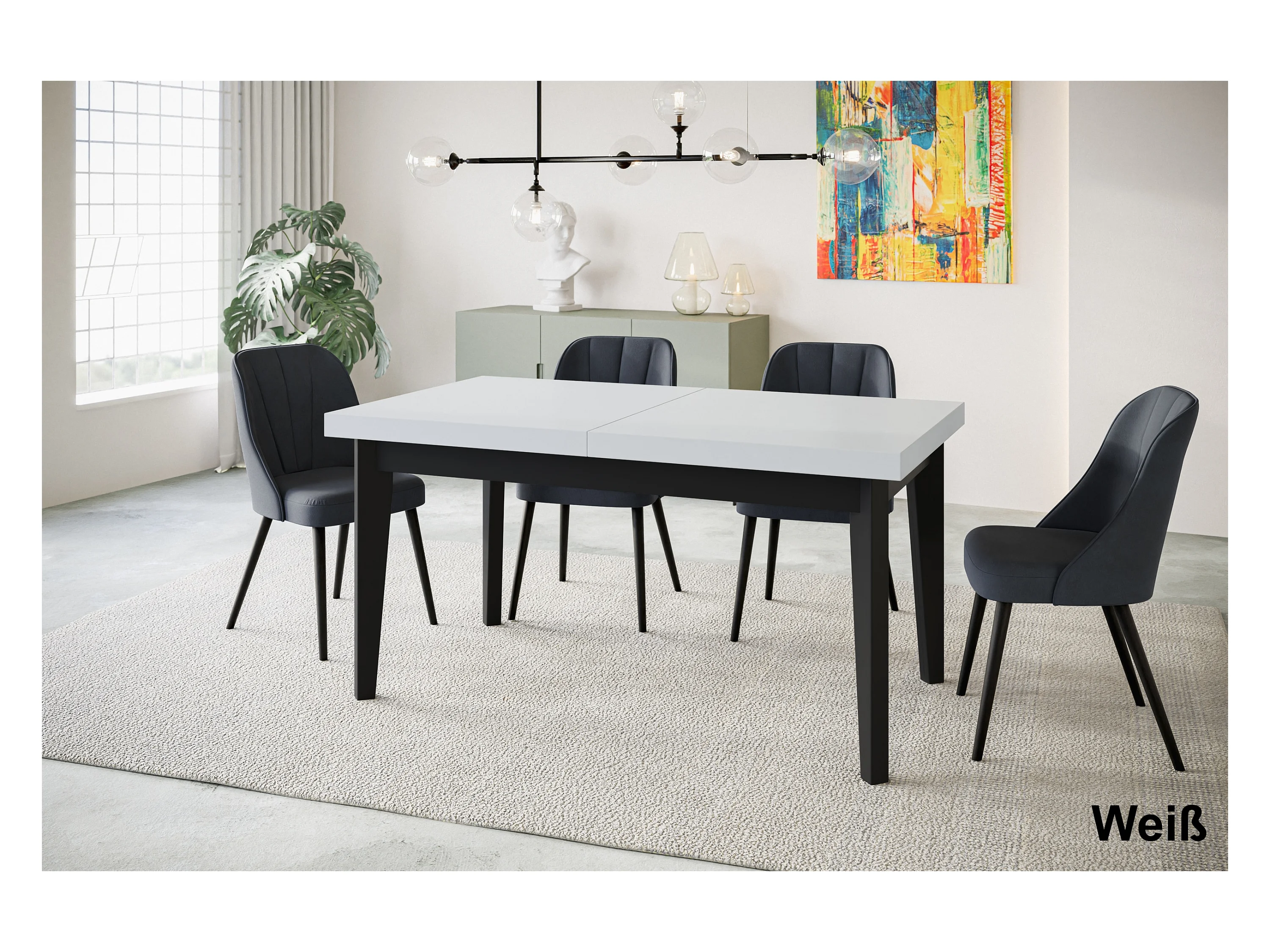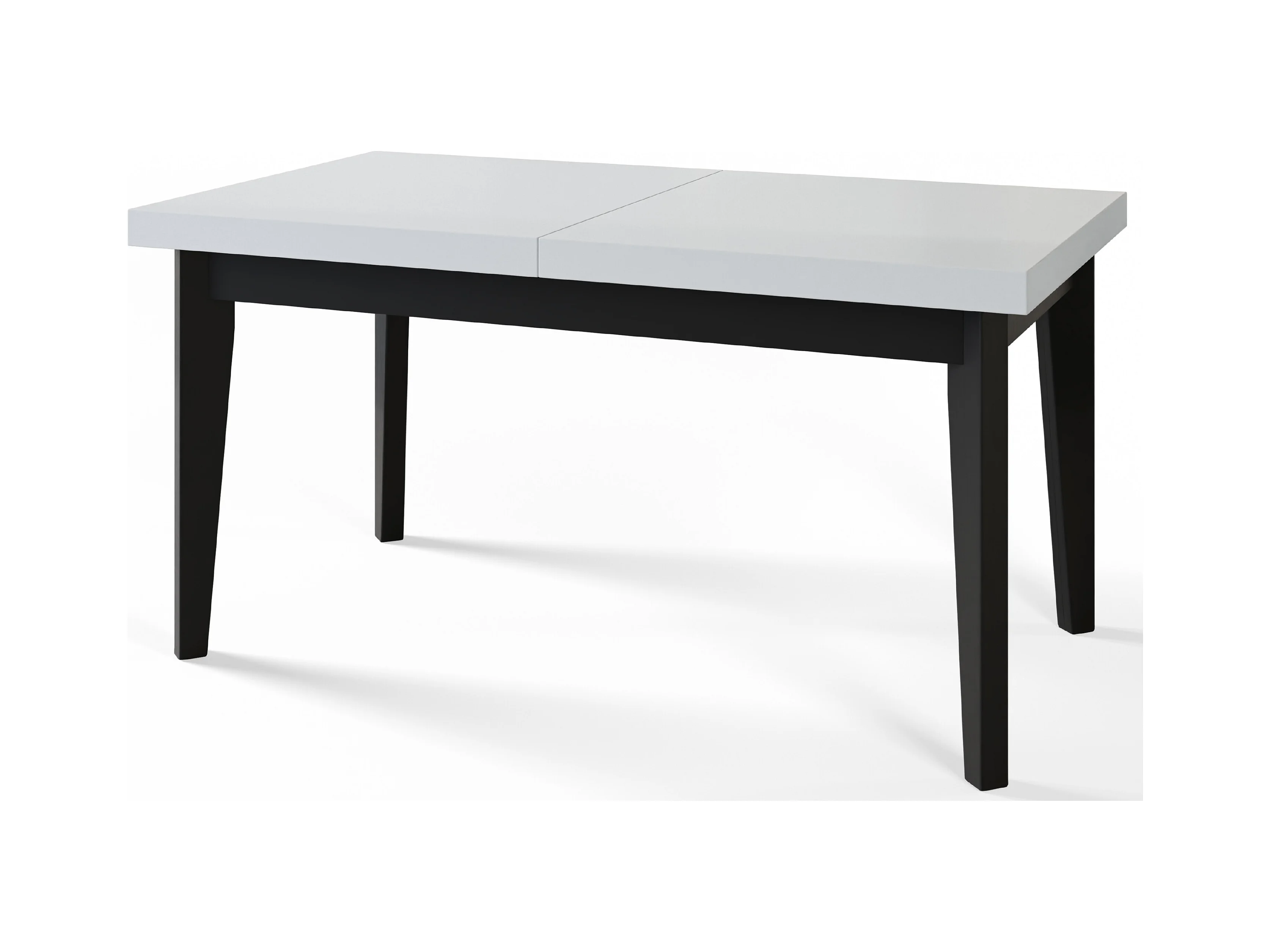 Table de salle à manger rectangulaire SKANDI, table à rallonges, dimensions: 120-160X80X78 cm, couleur: blanc, avec pieds en bois de couleur noir
