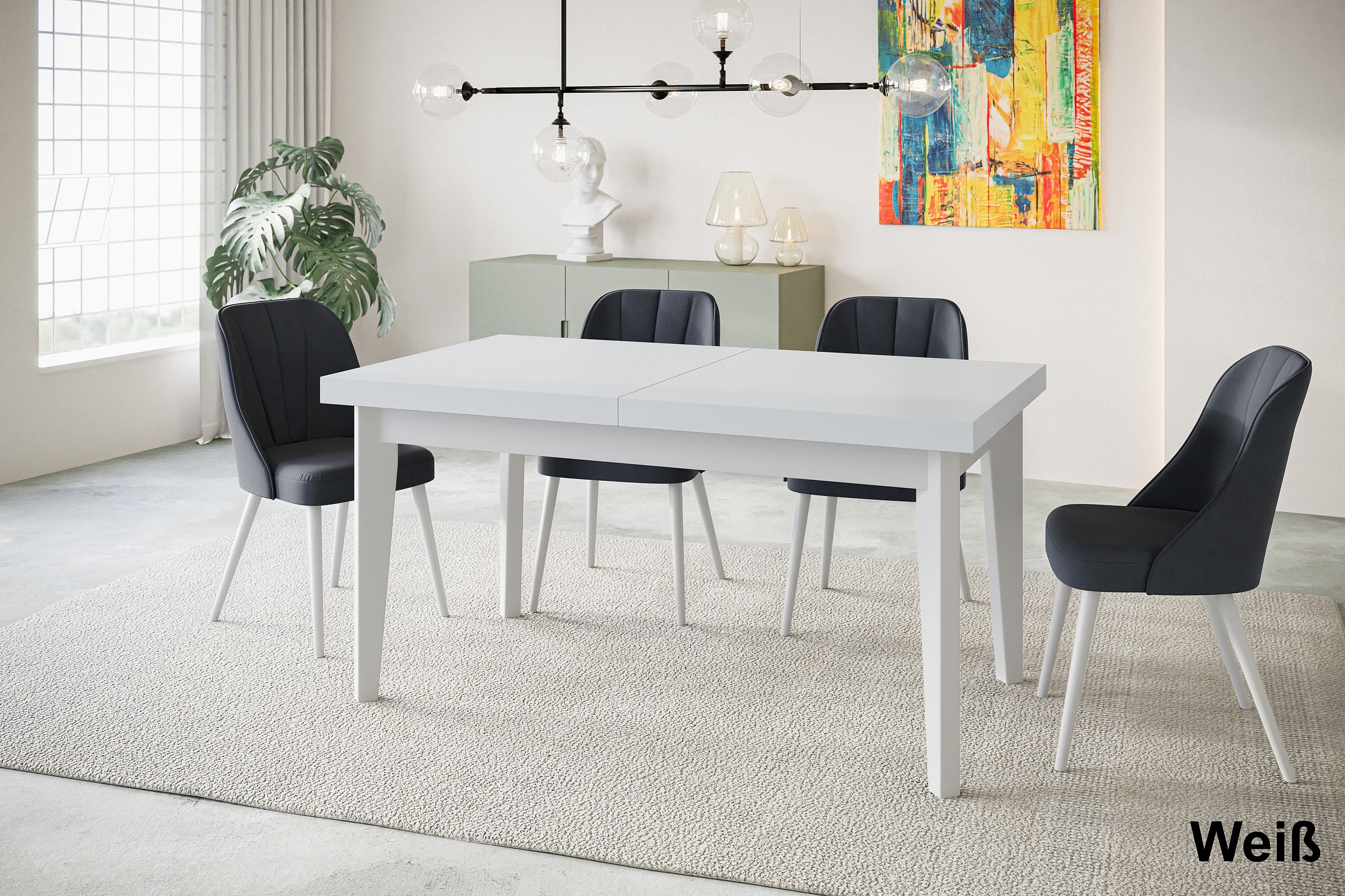 Table de salle à manger rectangulaire SKANDI, table à rallonges, dimensions: 140-180X80X78 cm, couleur: blanc, avec pieds en bois de couleur blanc