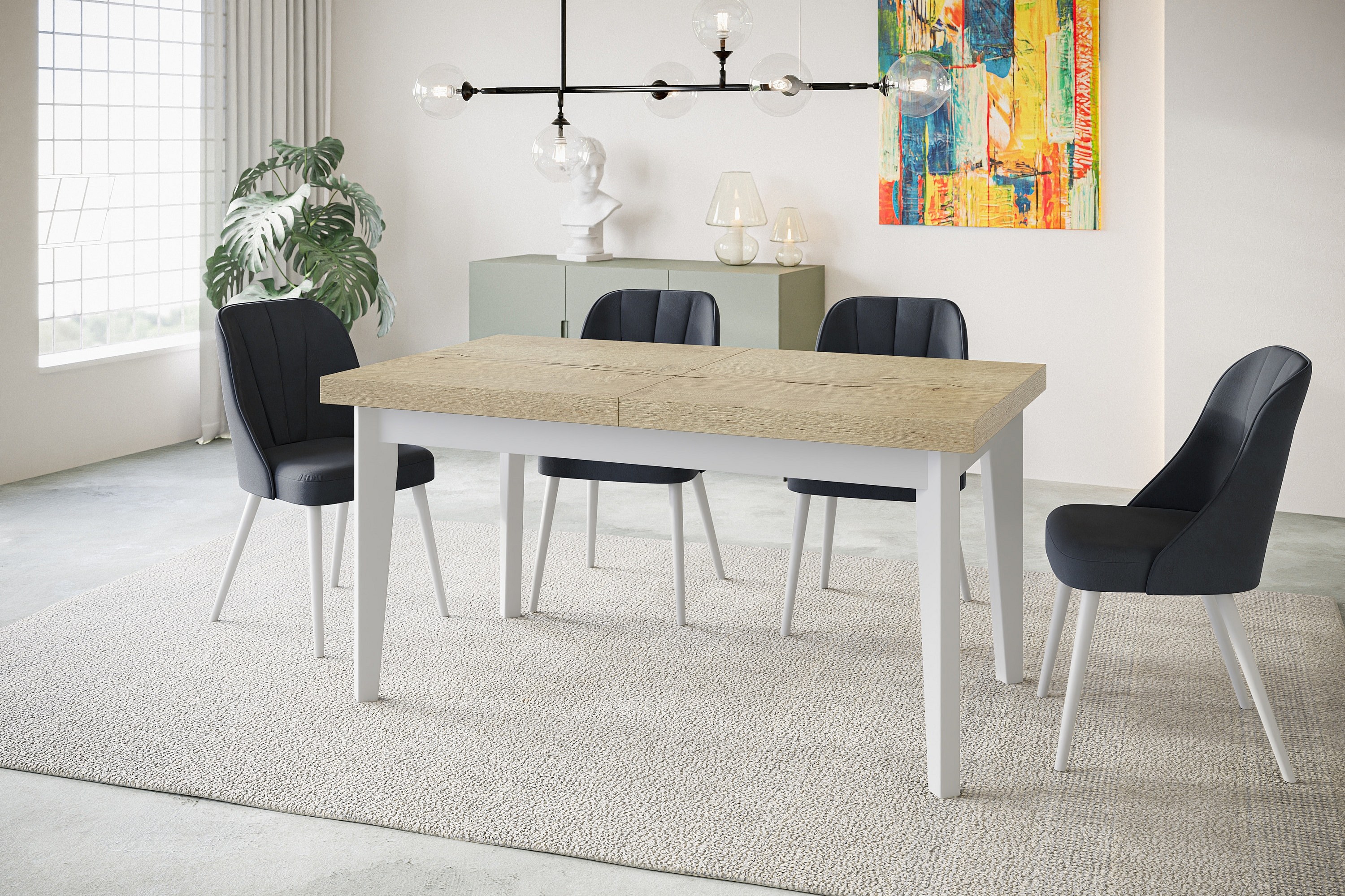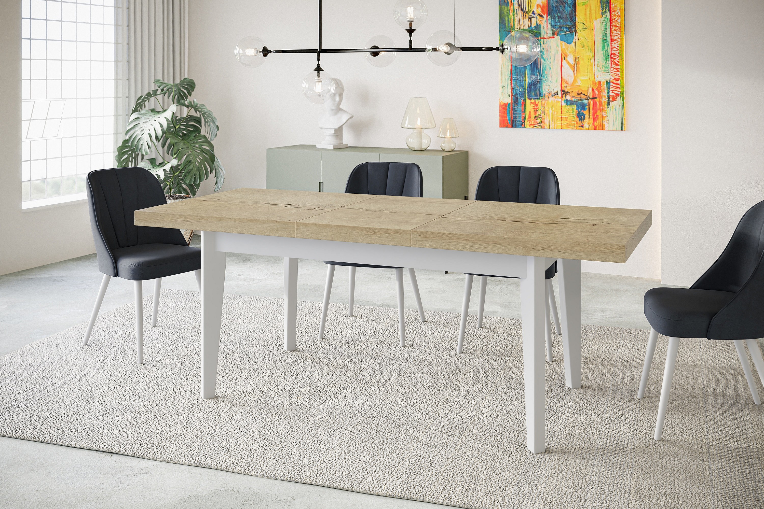 Table de salle à manger rectangulaire SKANDI, table à rallonges, dimensions: 140-180X80X78 cm, couleur: HALIFAX, avec pieds en bois blanc