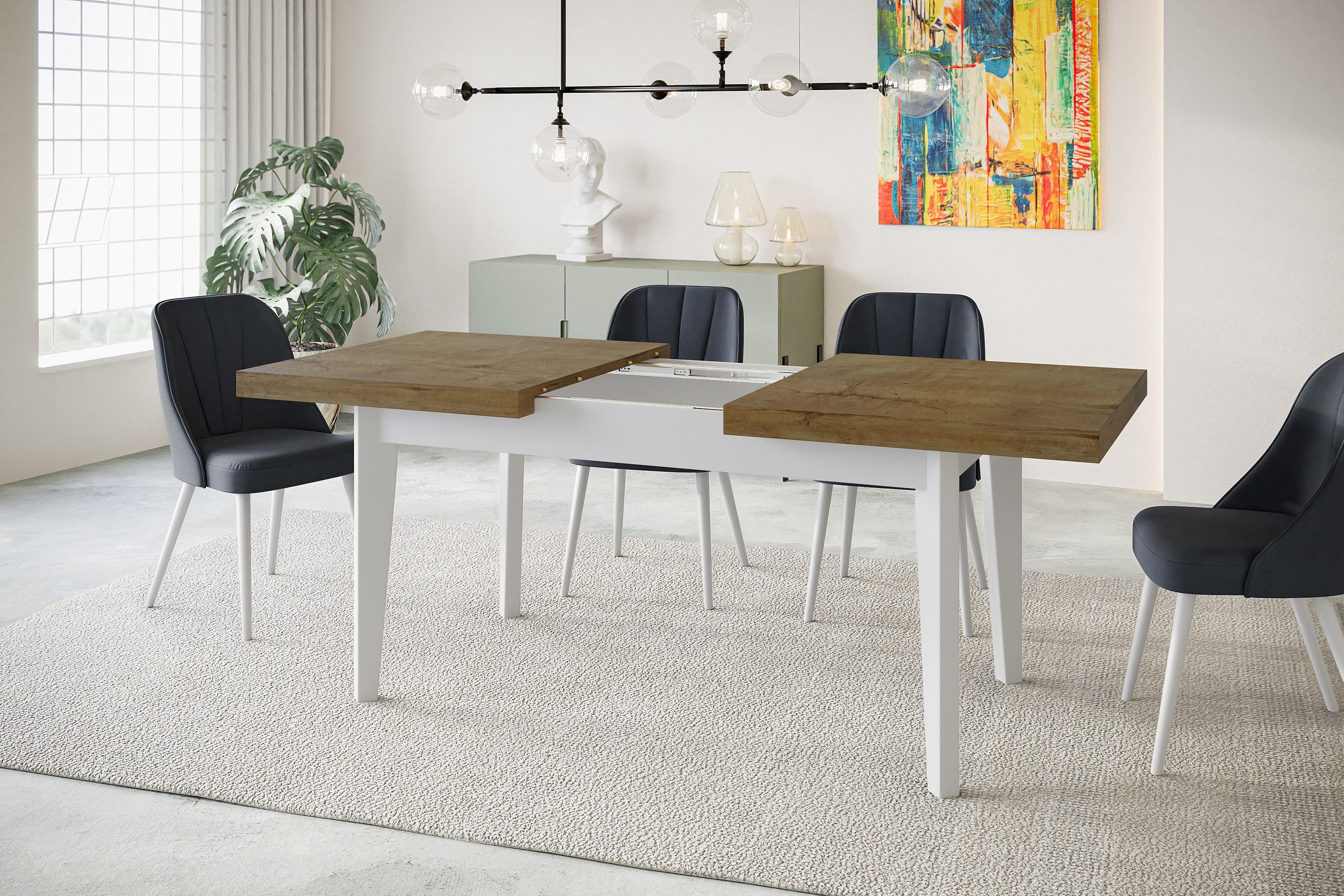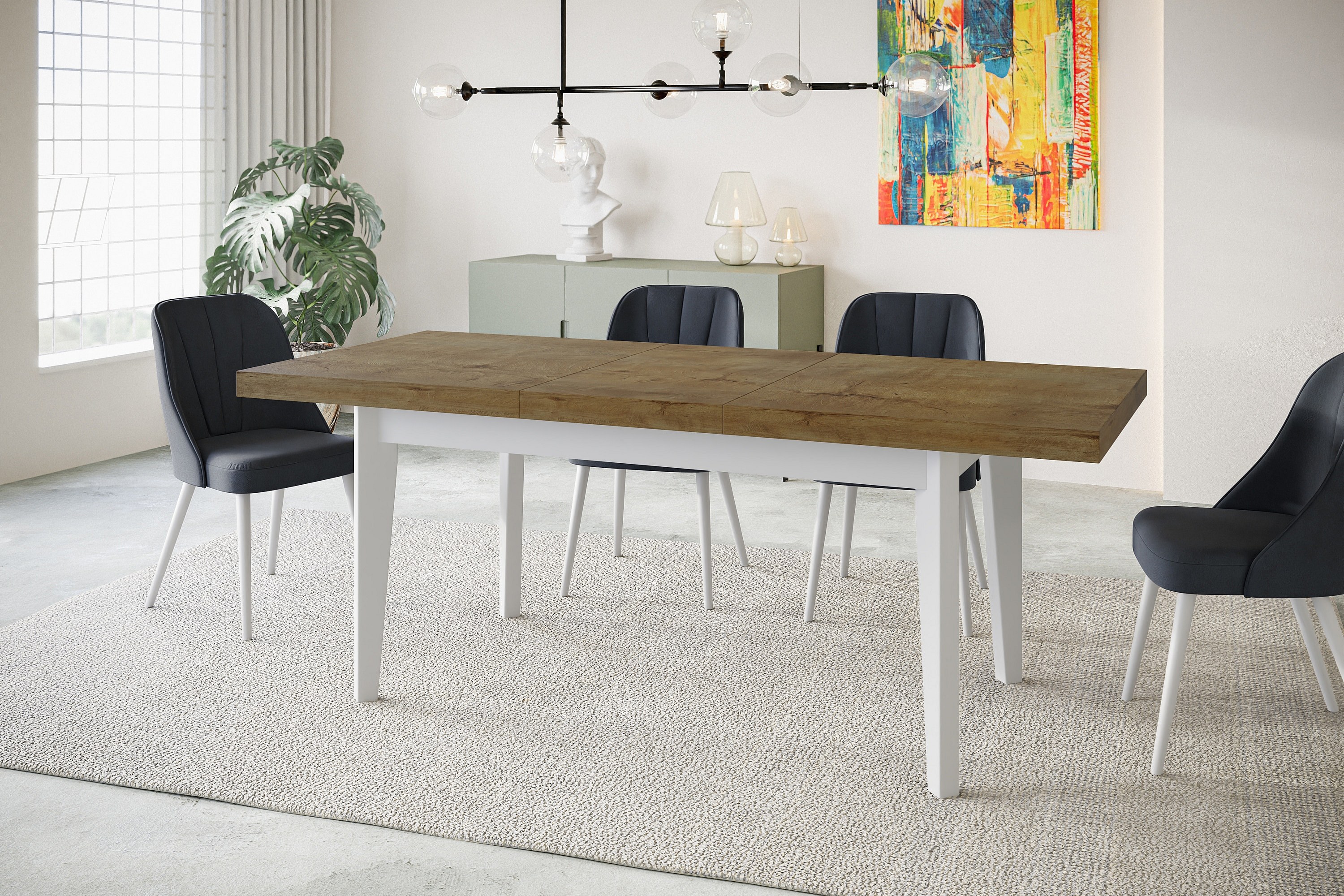 Table de salle à manger rectangulaire SKANDI, table à rallonges, dimensions: 140-180X80X78 cm, couleur: LEFKAS, avec pieds en bois blanc