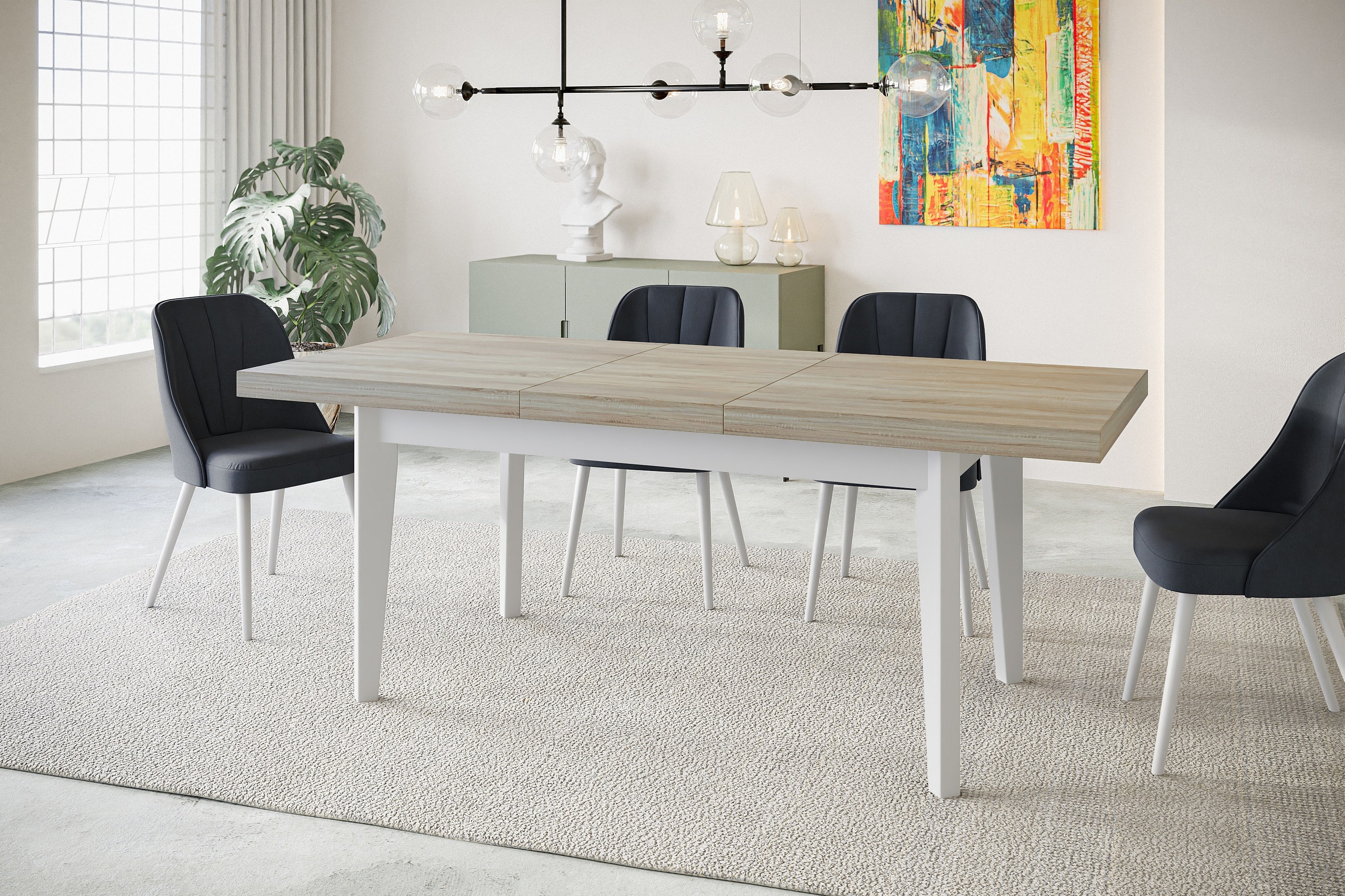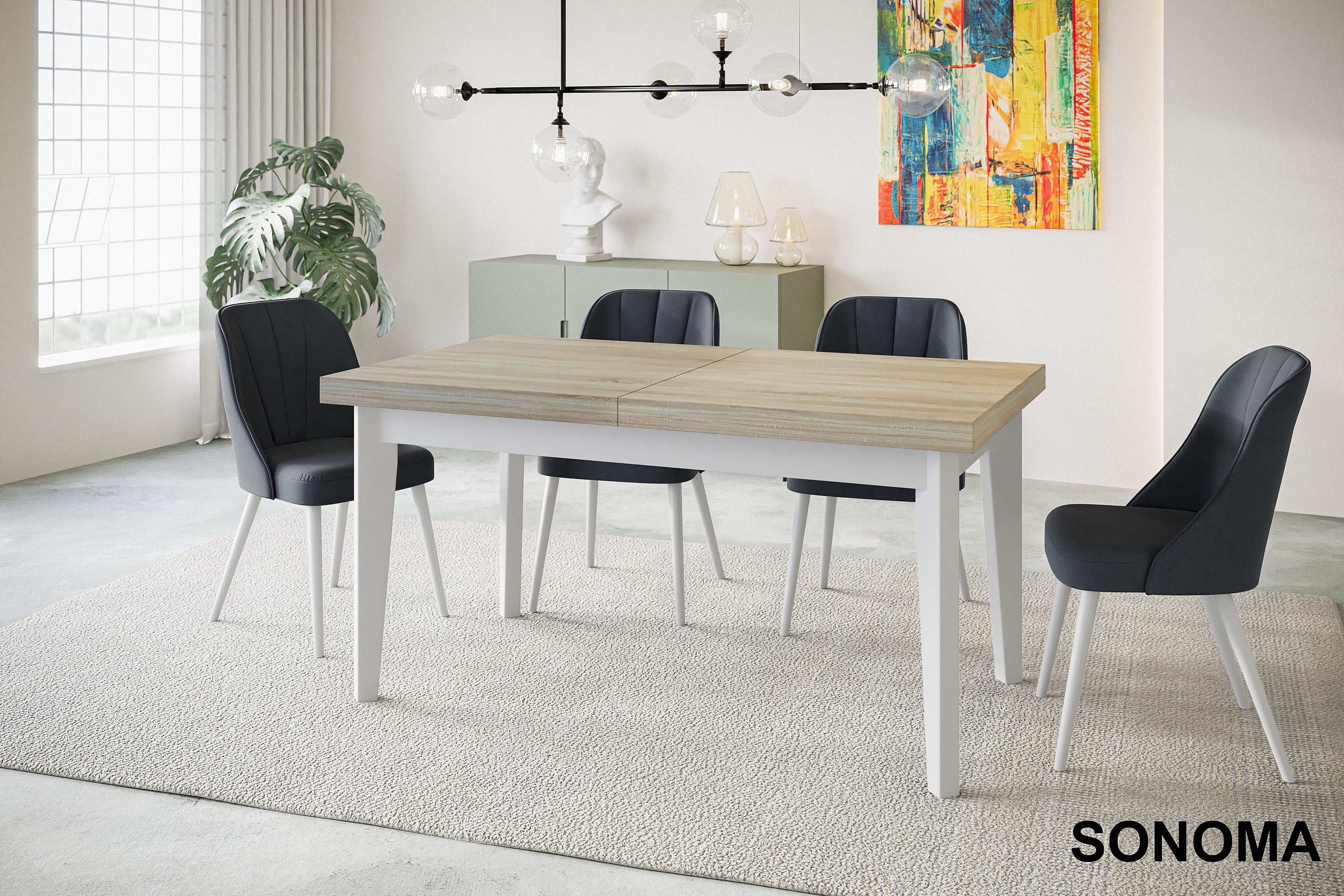 Table de salle à manger rectangulaire SKANDI, table à rallonges, dimensions: 160-210X90X78 cm, couleur: SONOMA, avec pieds en bois blanc