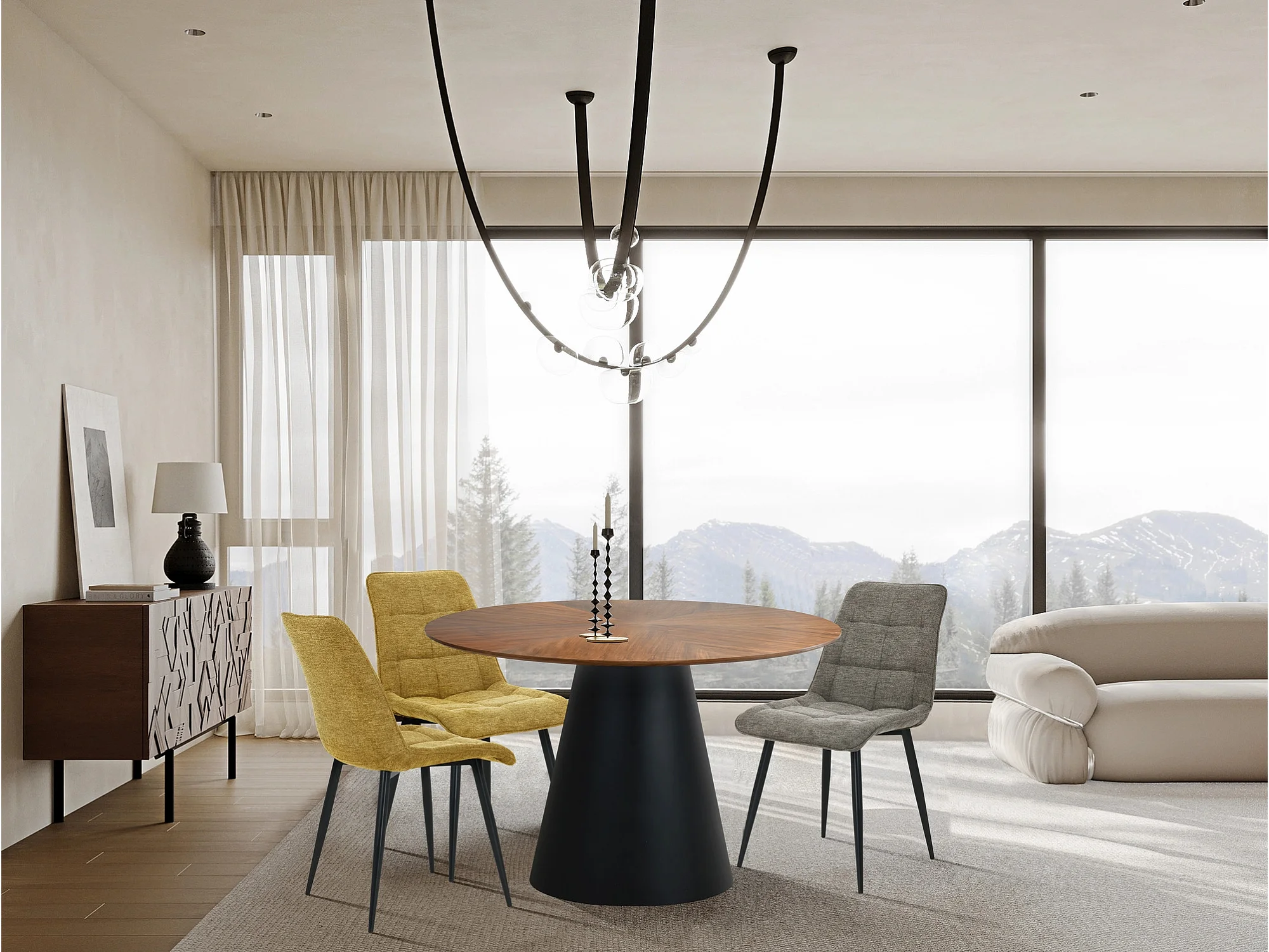 Table de salle à manger ronde 120 cm aspect noyer et noir mat Lindsay