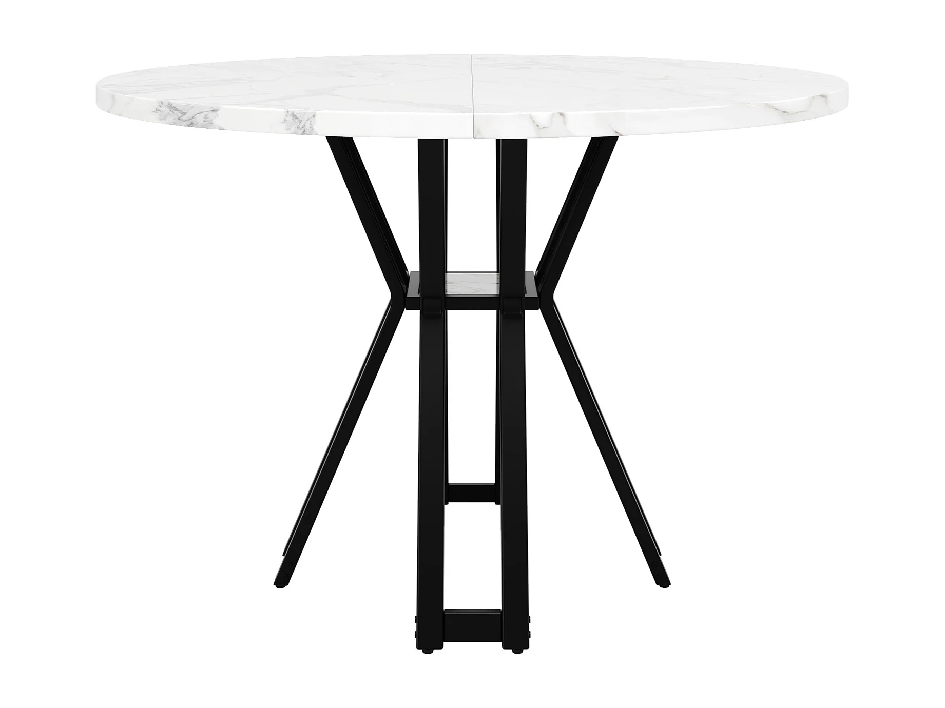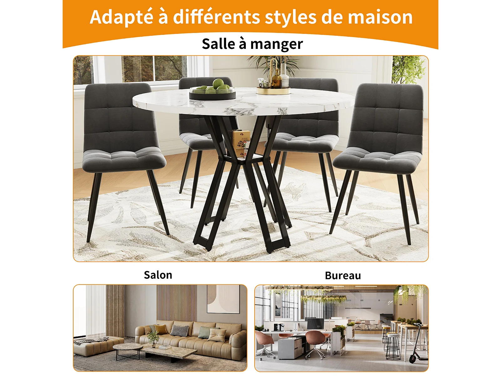 Table de salle à manger ronde - 4 à 6 couverts - plateau en MDF imitation marbre - 100 x 100 x 76 cm - noir