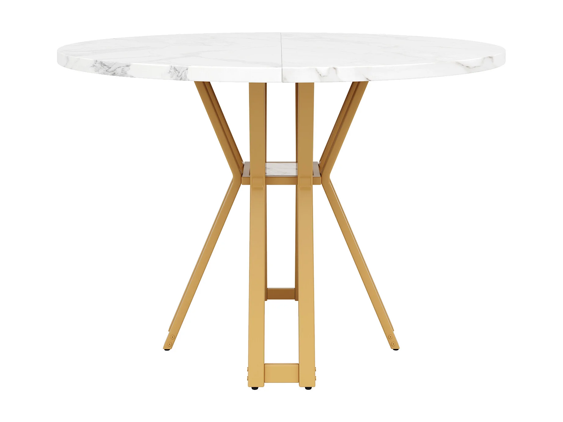 Table de salle à manger ronde - 4 à 6 couverts - plateau en MDF imitation marbre - 100 x 100 x 76 cm - or