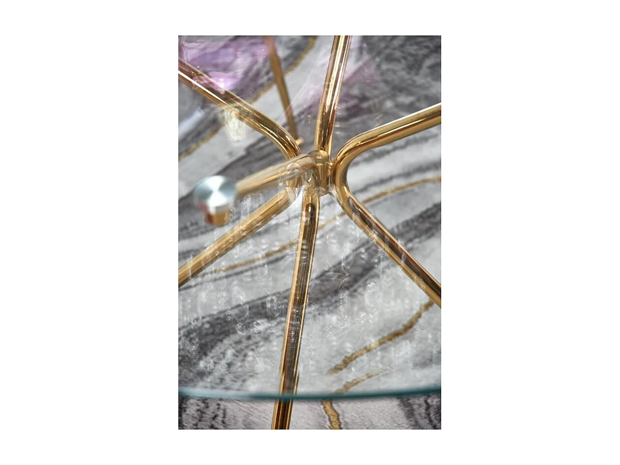 Table de salle à manger ronde avec plateau verre de 110cm et pied métal doré Around