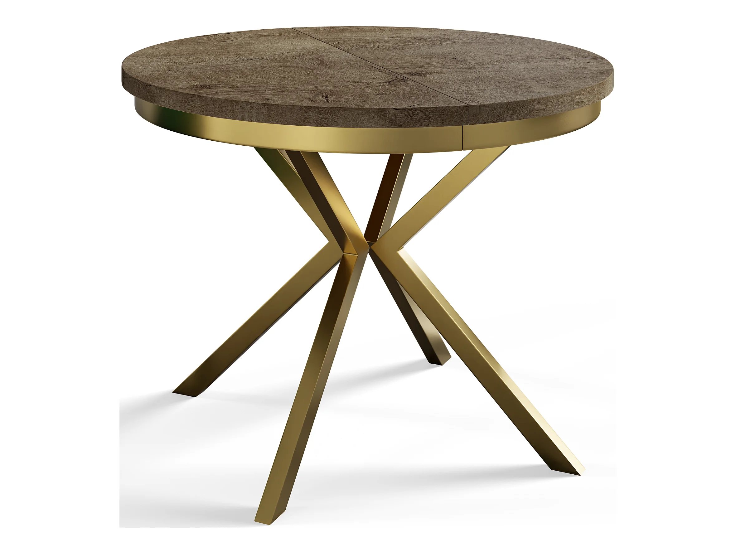 Table de salle à manger ronde BERGO, table à rallonges Diamètre : 100 cm/180 cm, couleur de la table basse : gris, avec pieds métalliques couleur or