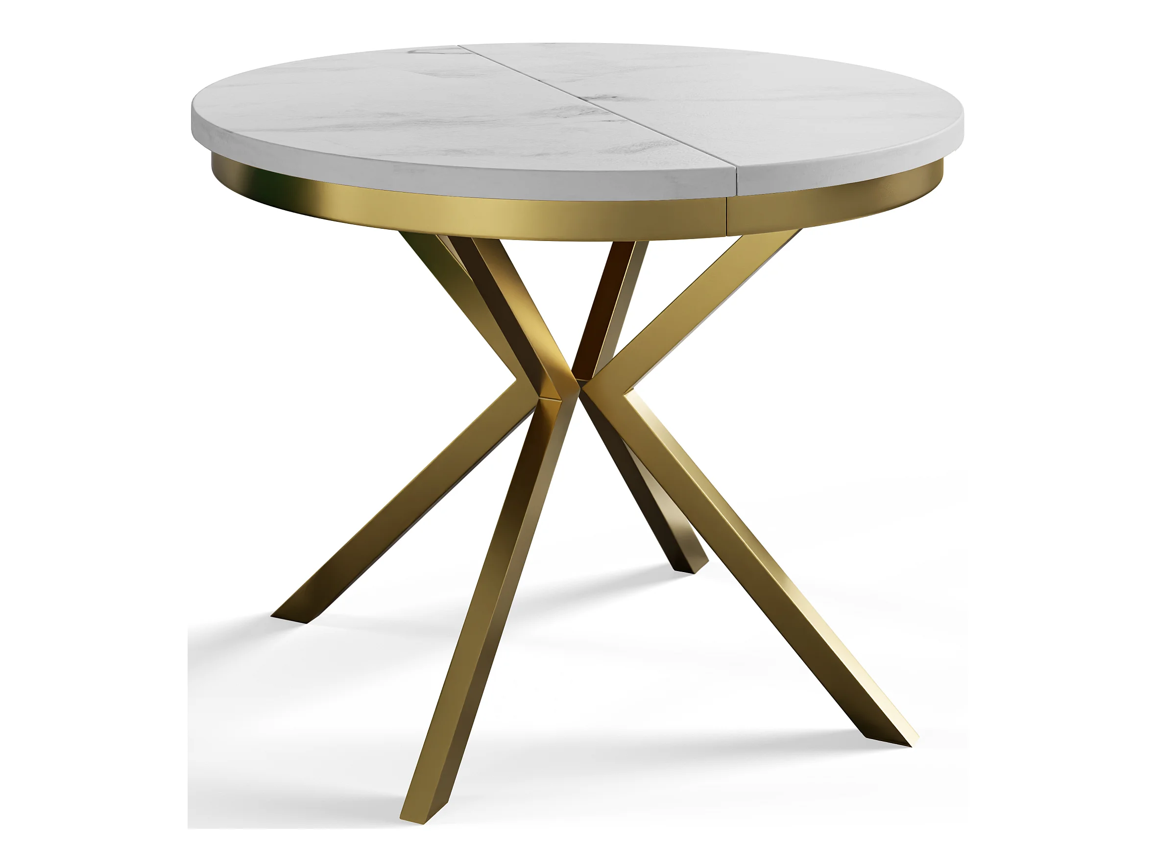 Table de salle à manger ronde BERGO, table à rallonges Diamètre : 90 cm/170 cm, couleur de la table basse : marbre, avec pieds métalliques couleur or