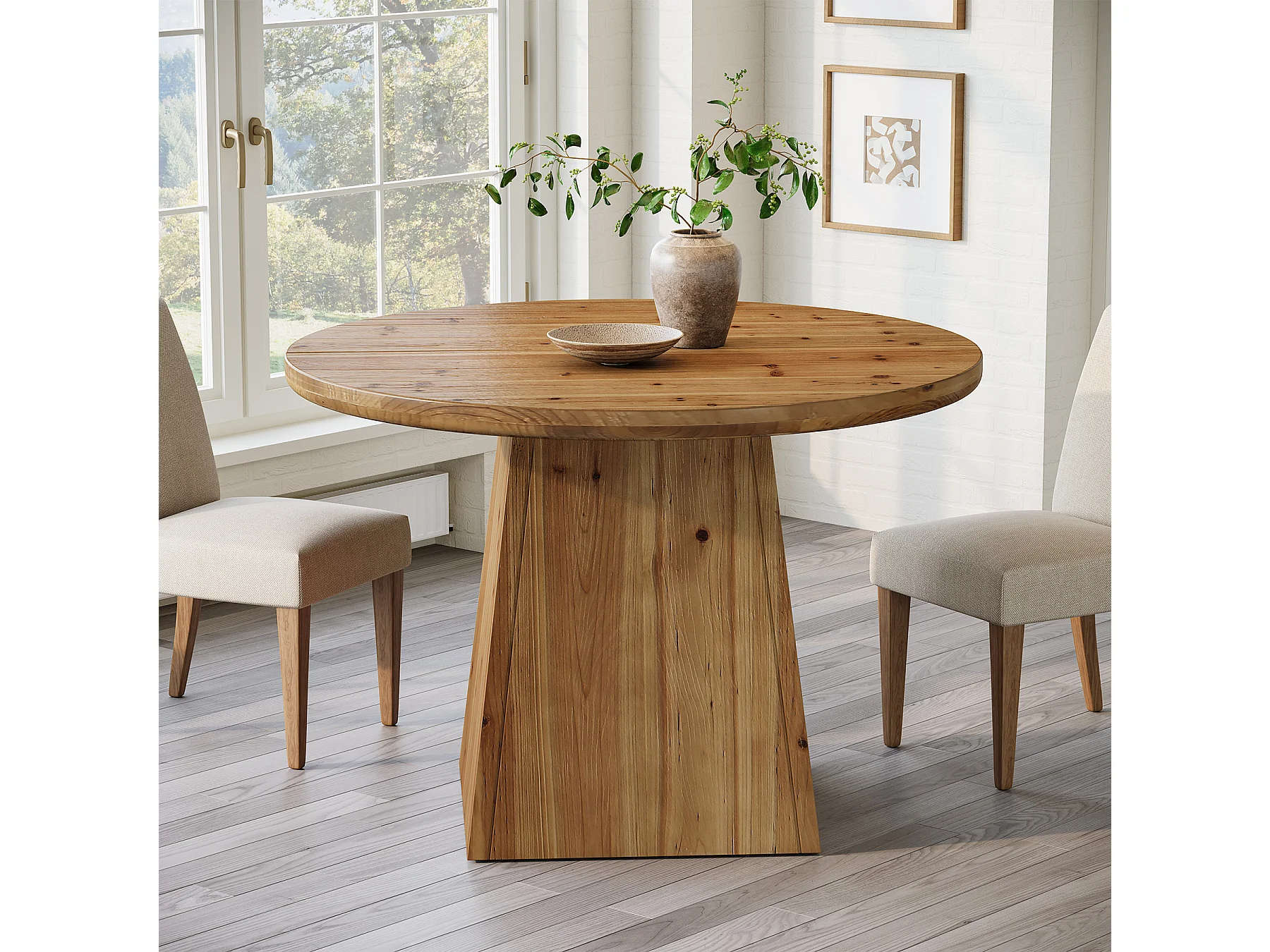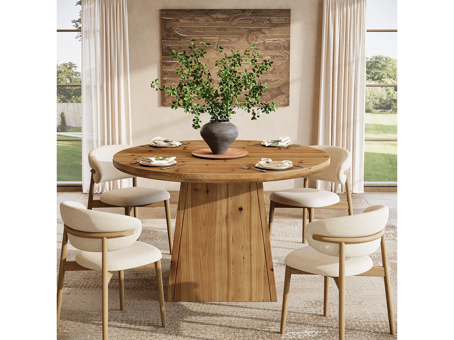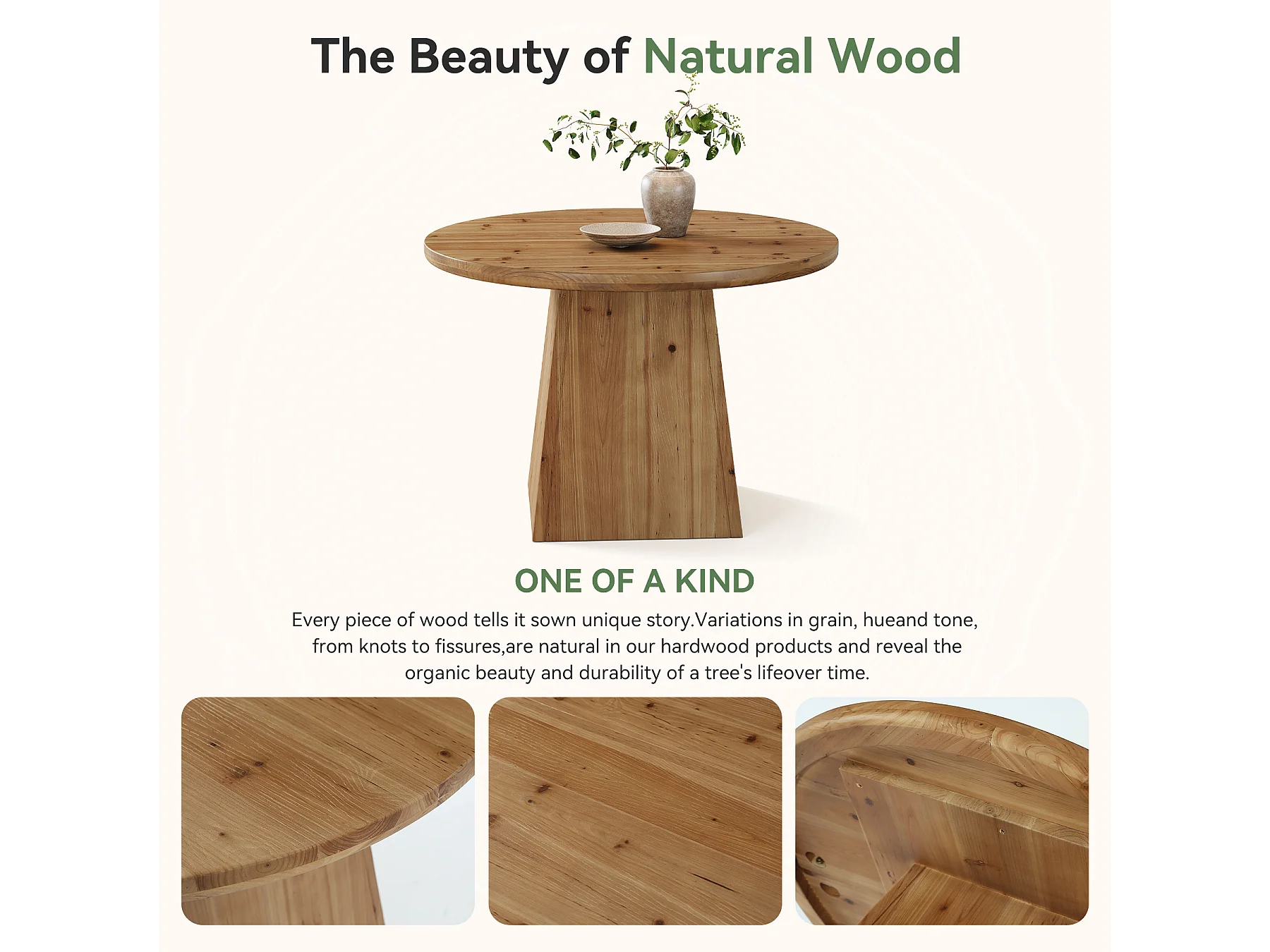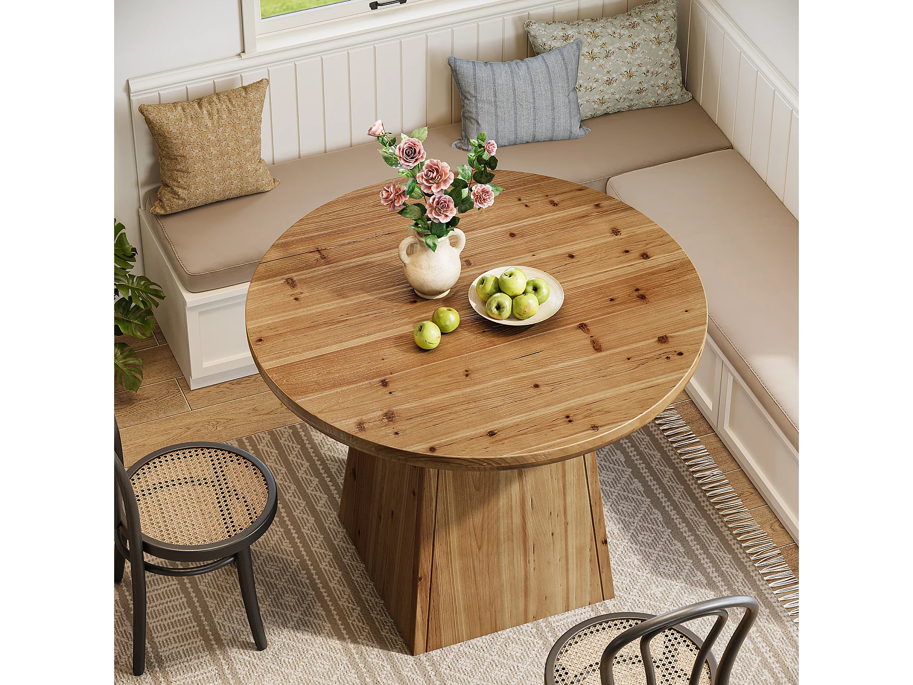 Table de salle à manger ronde en bois massif pour 4 personnes, petite table de cuisine ronde avec plateau épais et pied central robuste