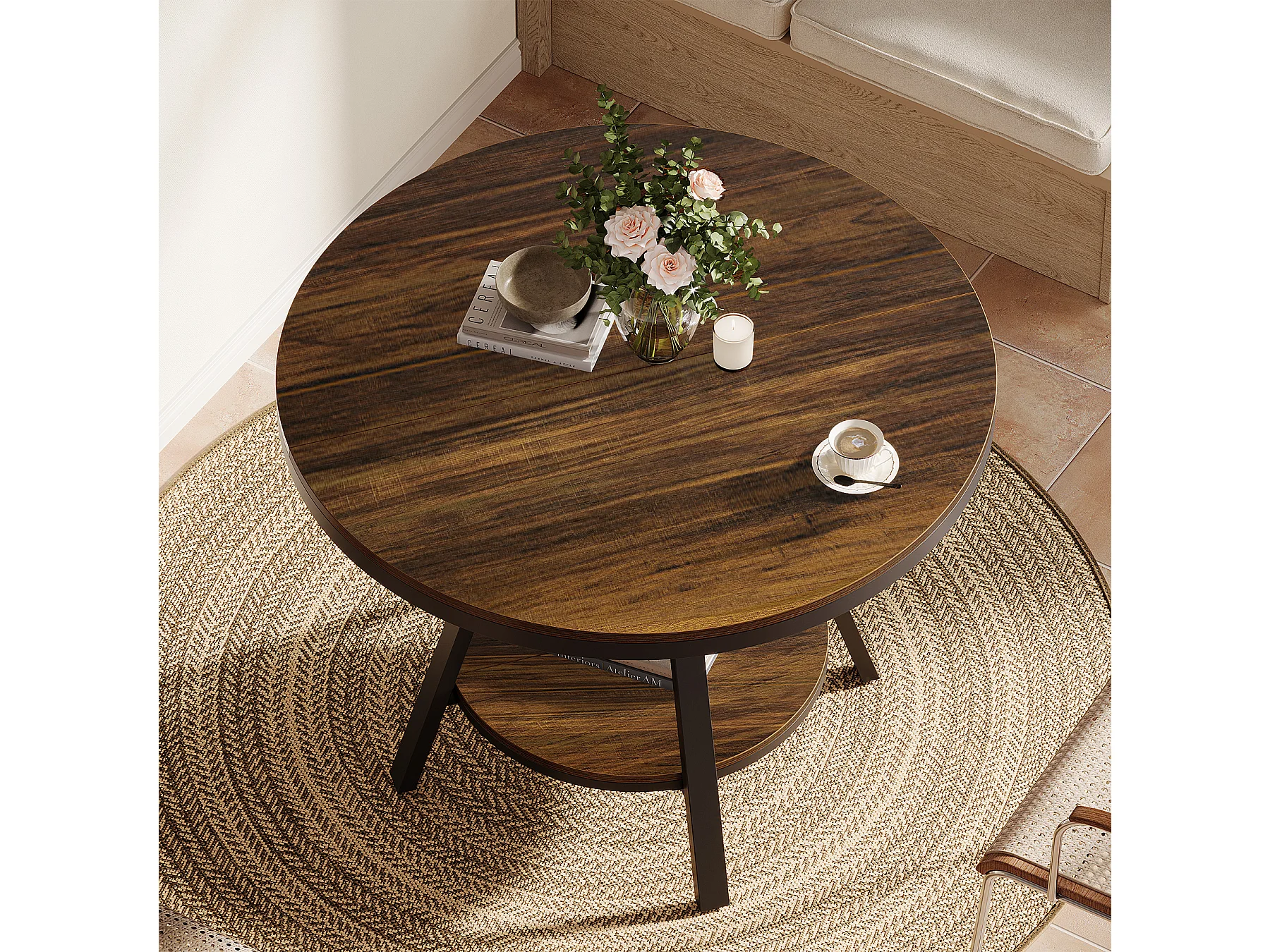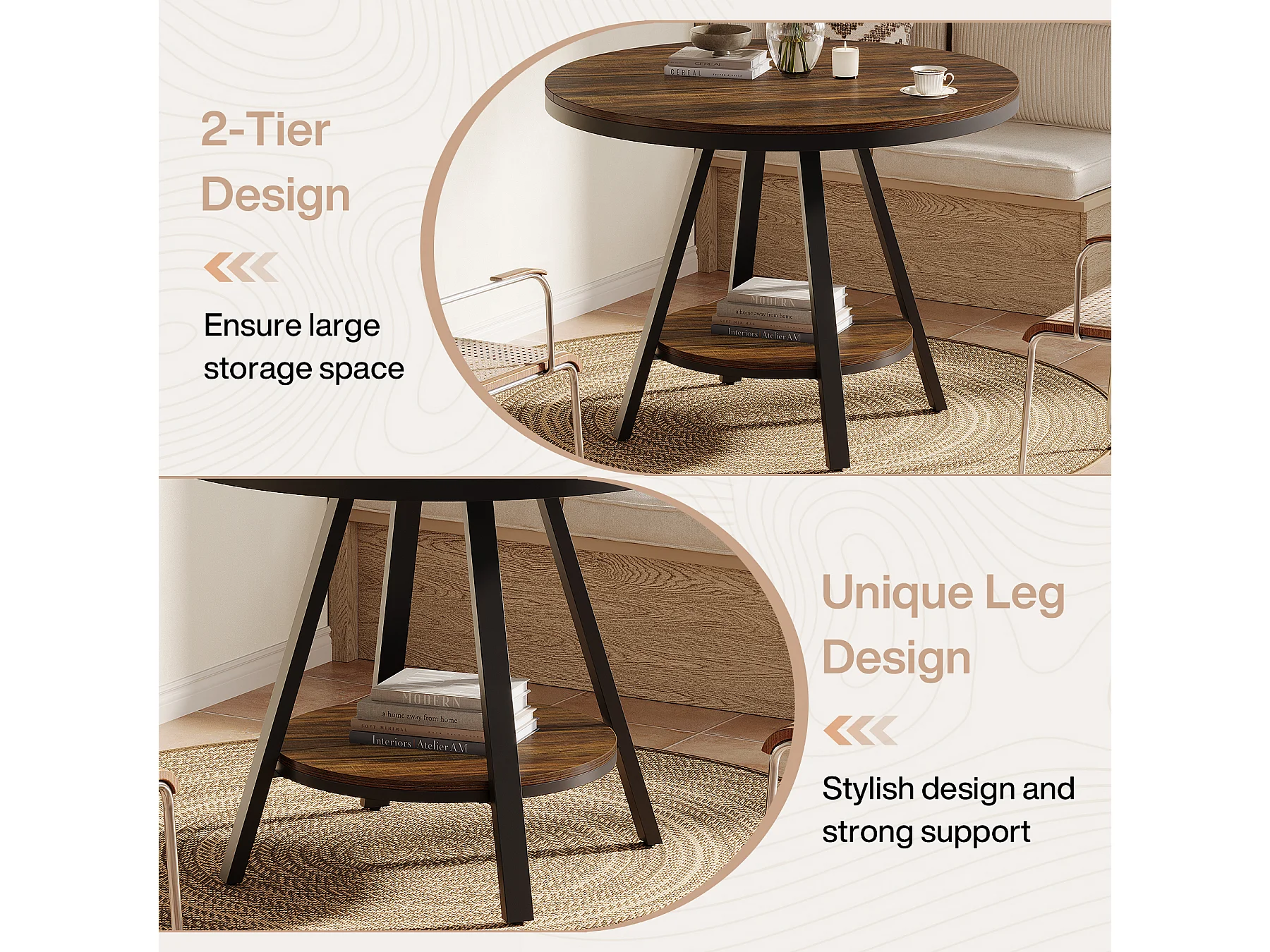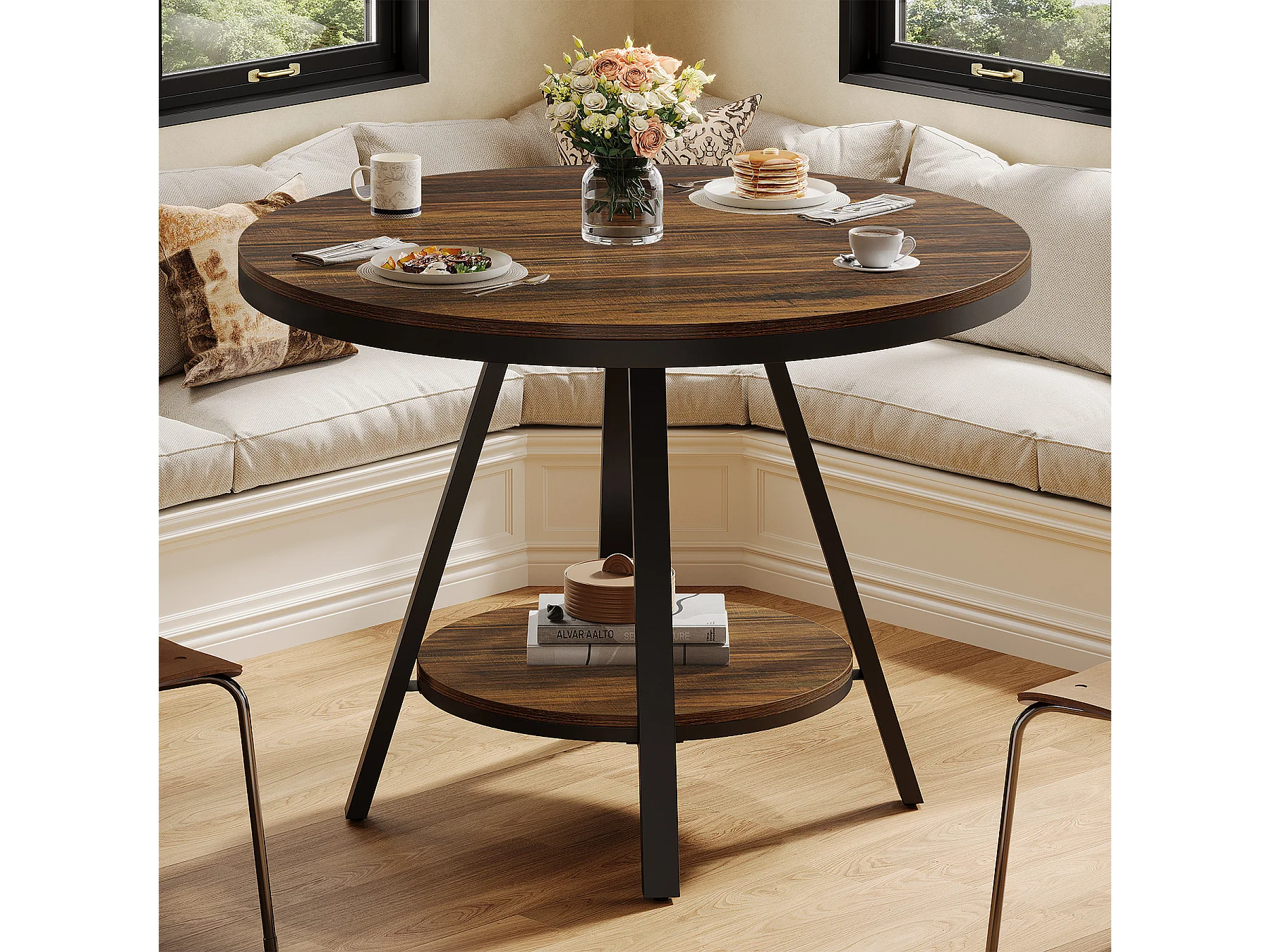 Table de salle à manger ronde industrielle à 2 niveaux, petite table de cuisine pour 2 à 4 personnes