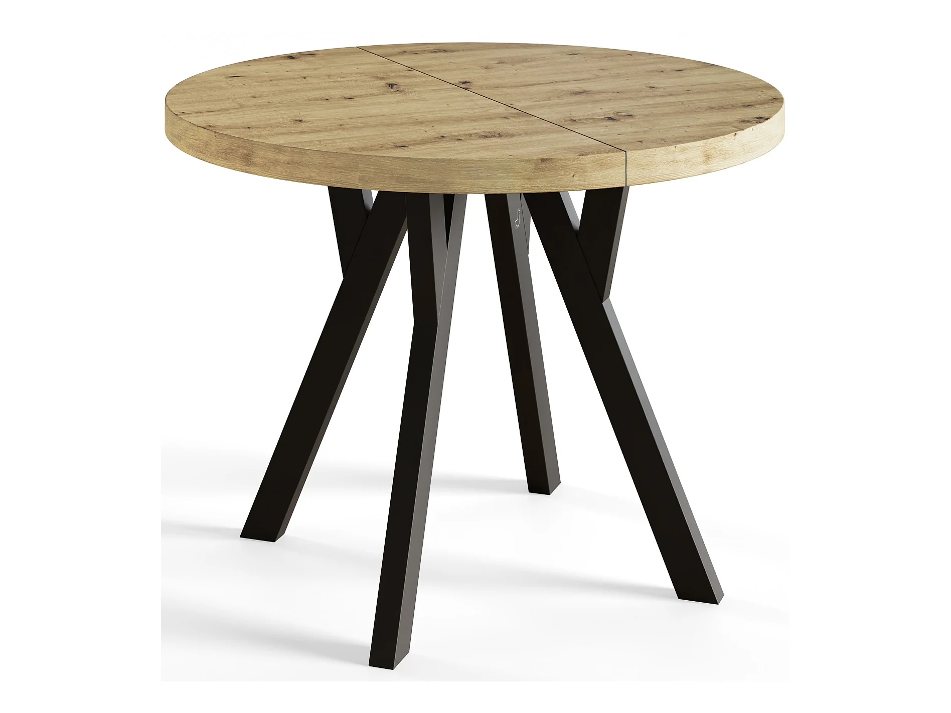 Table de salle à manger ronde OVO, table à rallonges Diamètre : 100 cm à 200 cm, couleur de la table basse : ARTISAN, avec pieds en bois de couleur noire