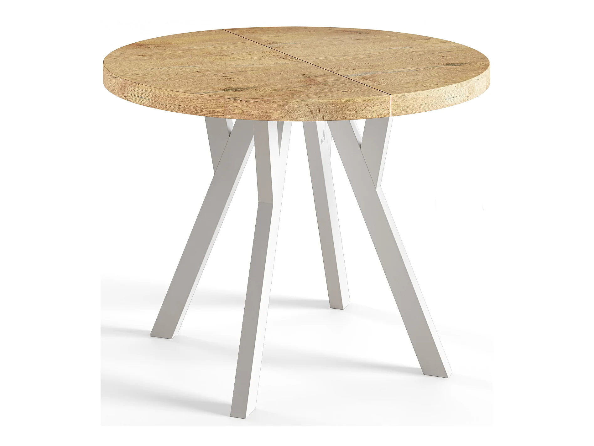 Table de salle à manger ronde OVO, table à rallonges Diamètre : 110 cm à 210 cm, couleur de la table basse : LANCELOT, avec pieds en bois blanc