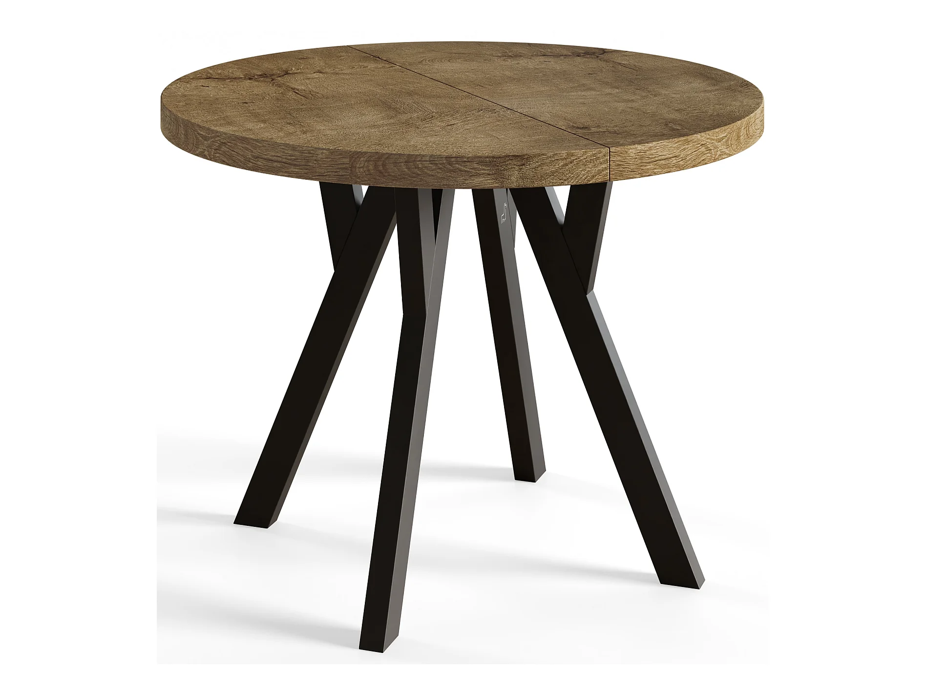 Table de salle à manger ronde OVO, table à rallonges Diamètre : 120 cm à 220 cm, couleur de la table basse : LEFAKS, avec pieds en bois couleur noir