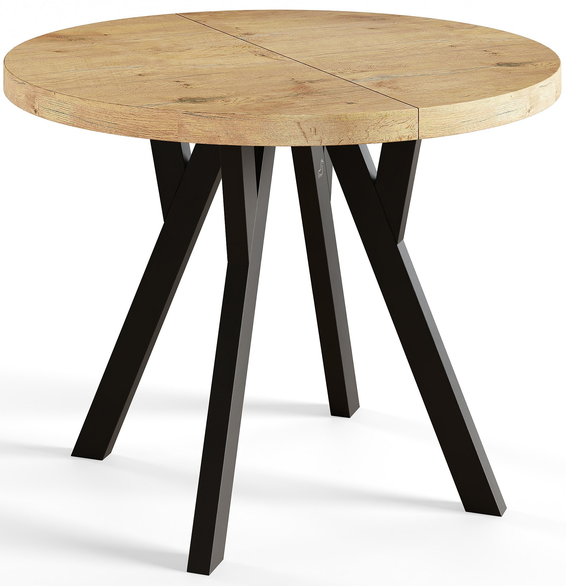 Table de salle à manger ronde OVO, table à rallonges Diamètre : 80 cm à 130 cm, couleur de la table basse : LANCELOT, avec pieds en bois de couleur noire