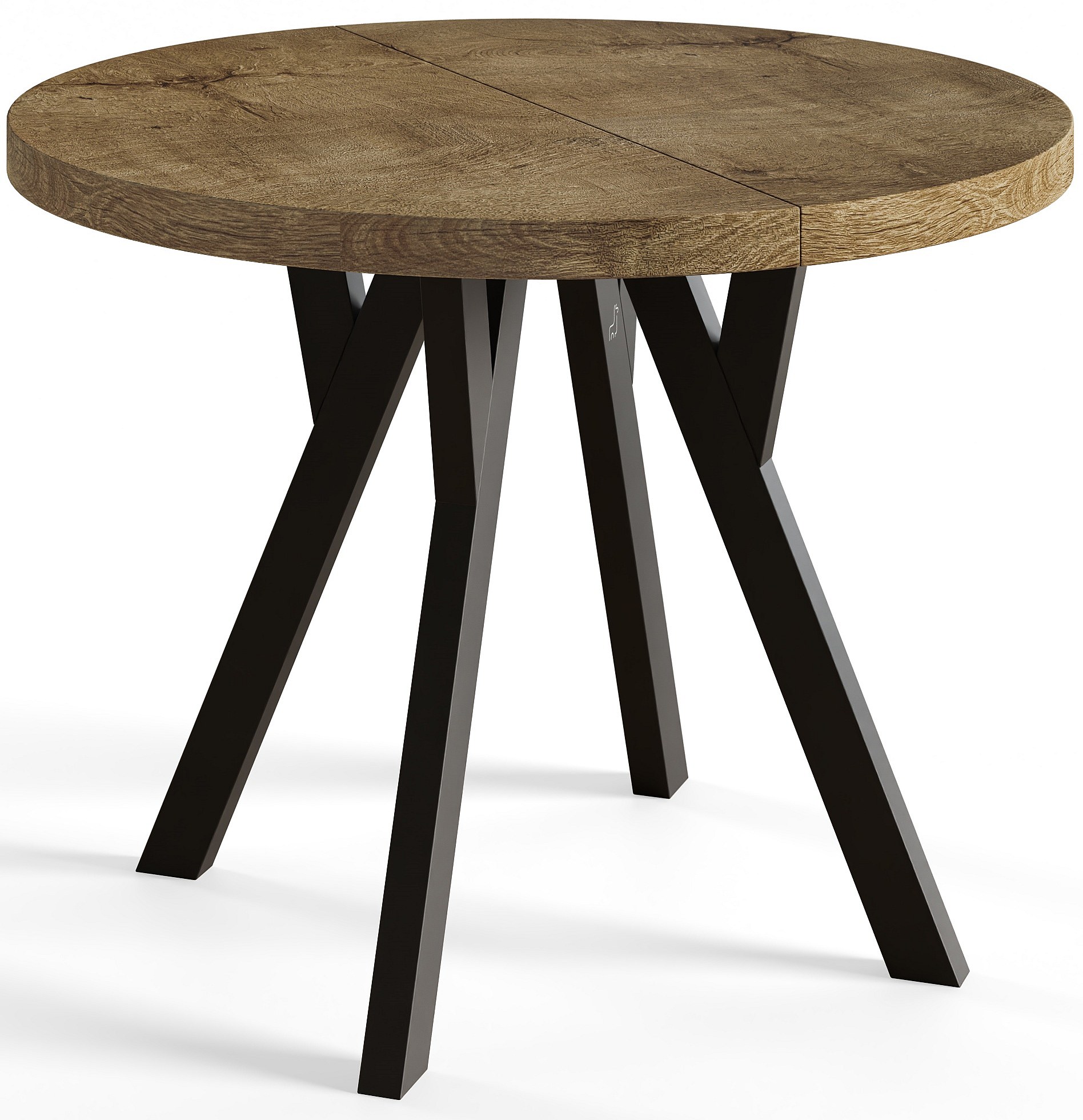 Table de salle à manger ronde OVO, table à rallonges Diamètre : 80 cm à 130 cm, couleur de la table basse : LEFKAS, avec pieds en bois de couleur noire