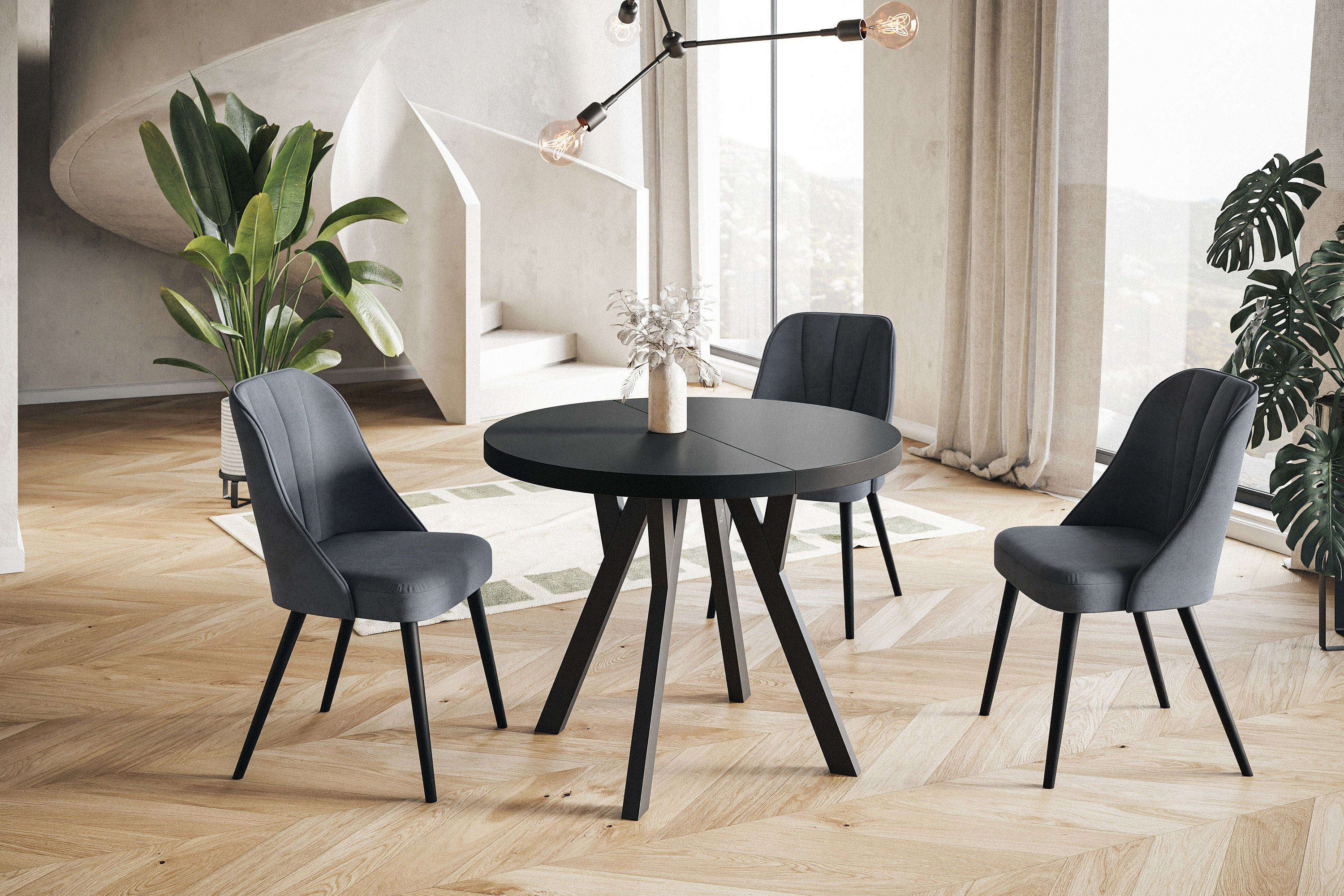 Table de salle à manger ronde OVO, table à rallonges Diamètre : 80 cm à 130 cm, couleur de la table basse : noir, avec pieds en bois de couleur noire