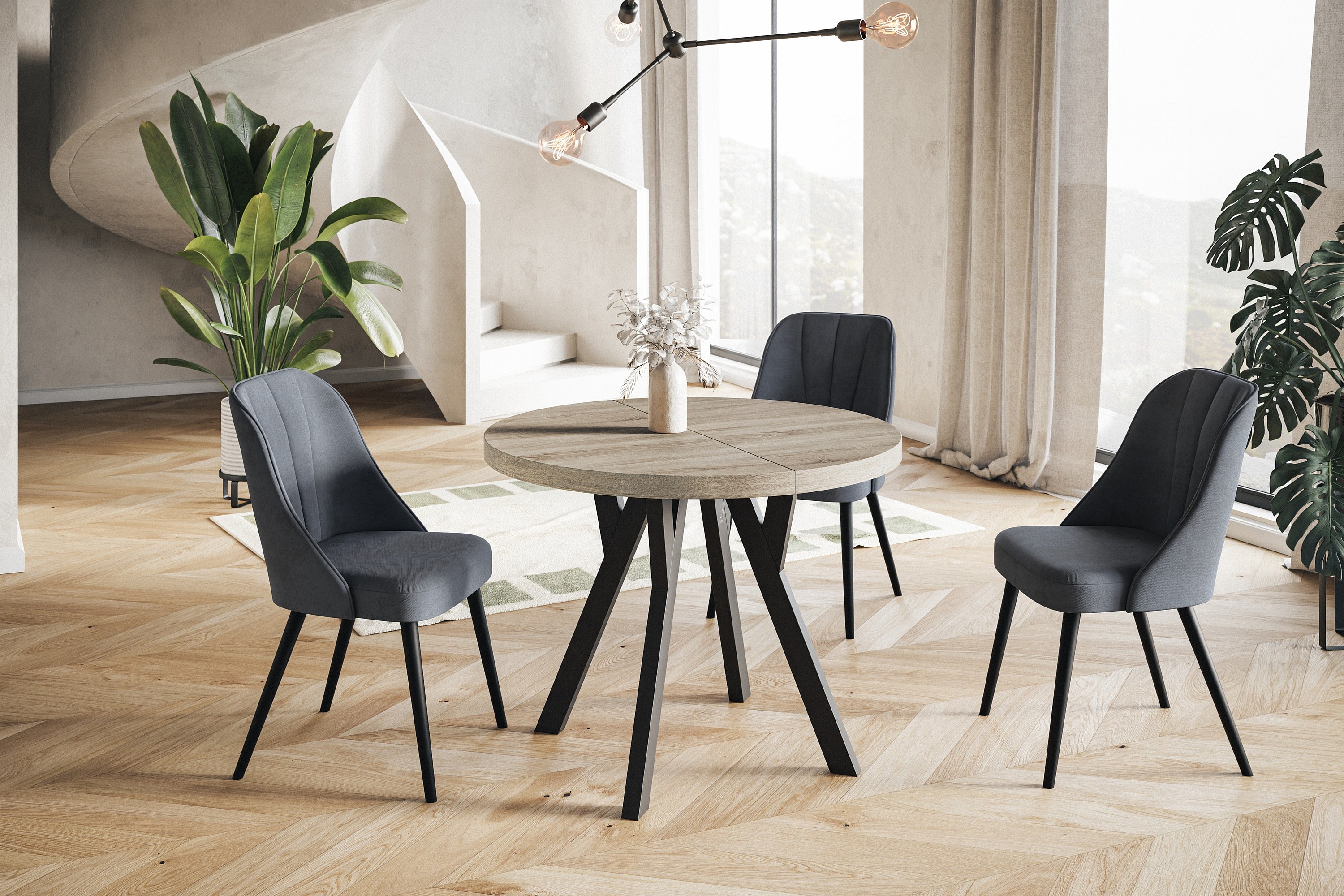 Table de salle à manger ronde OVO, table à rallonges Diamètre : 80 cm à 130 cm, couleur de la table basse : SONOMA, avec pieds en bois couleur noir