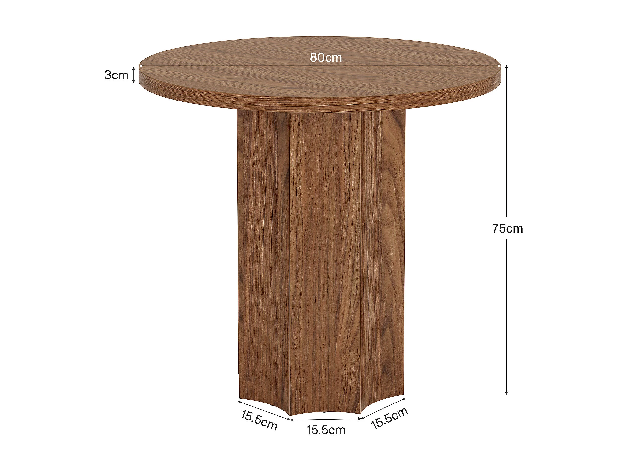 Table de salle à manger ronde pour 2 à 4 personnes, 80 cm de diamètre, avec pieds robustes. Petite table ronde gain de place pour la cuisine.