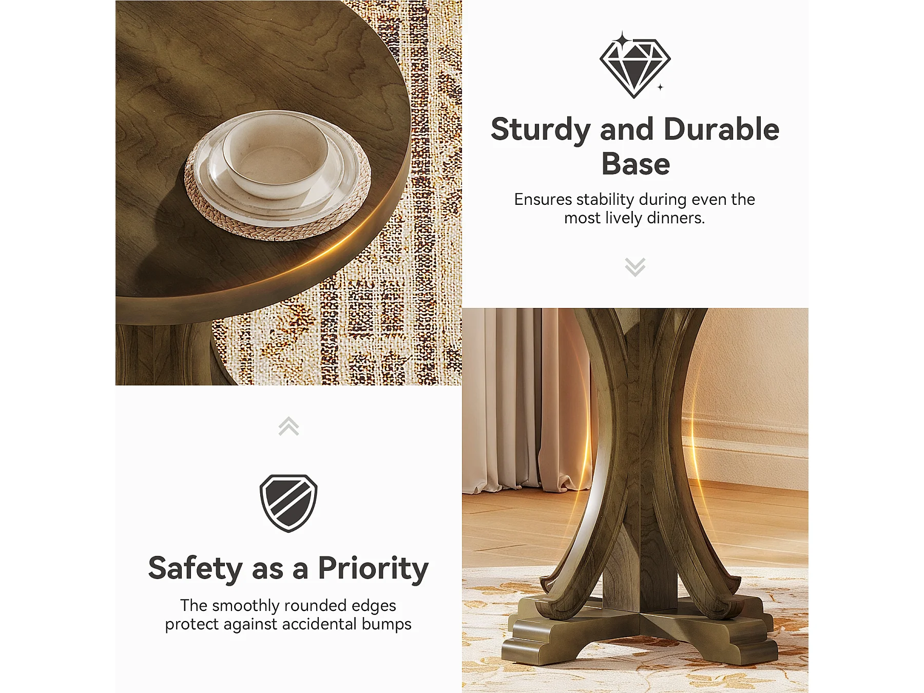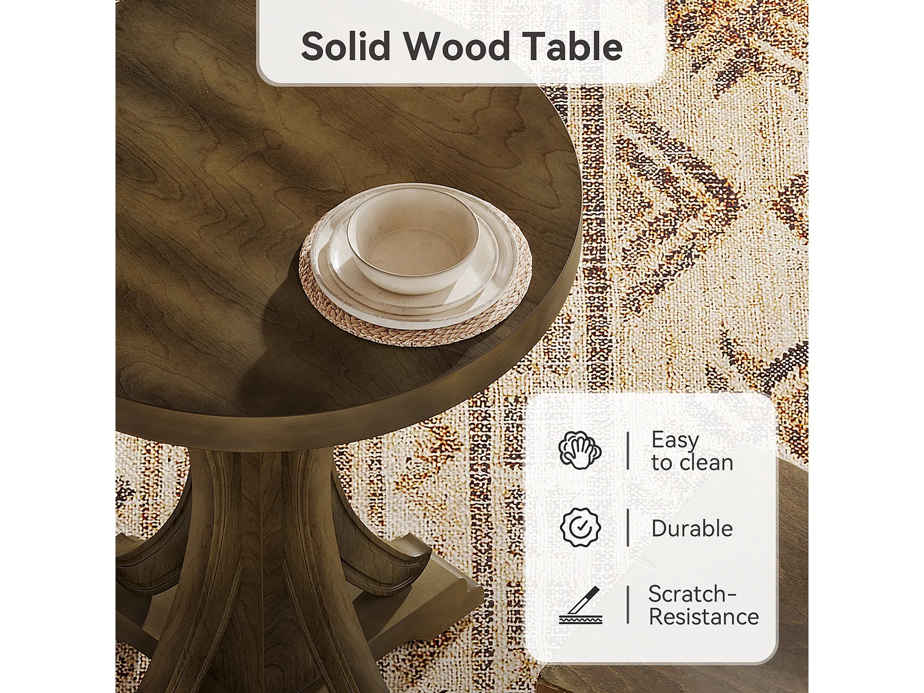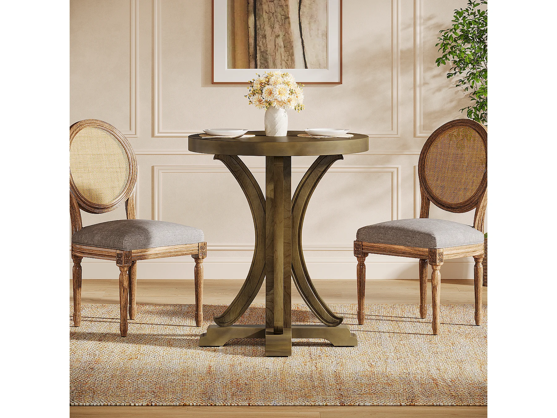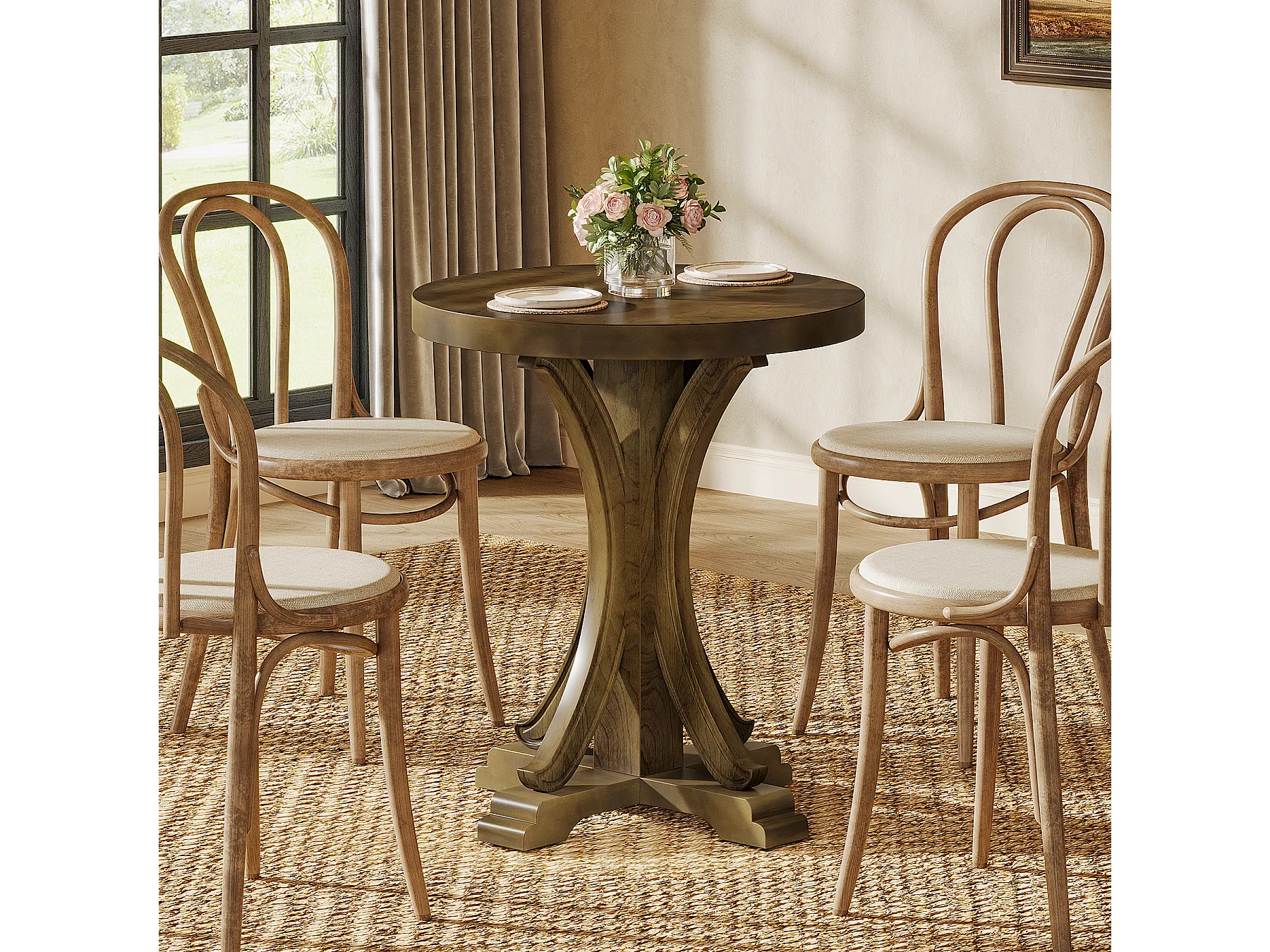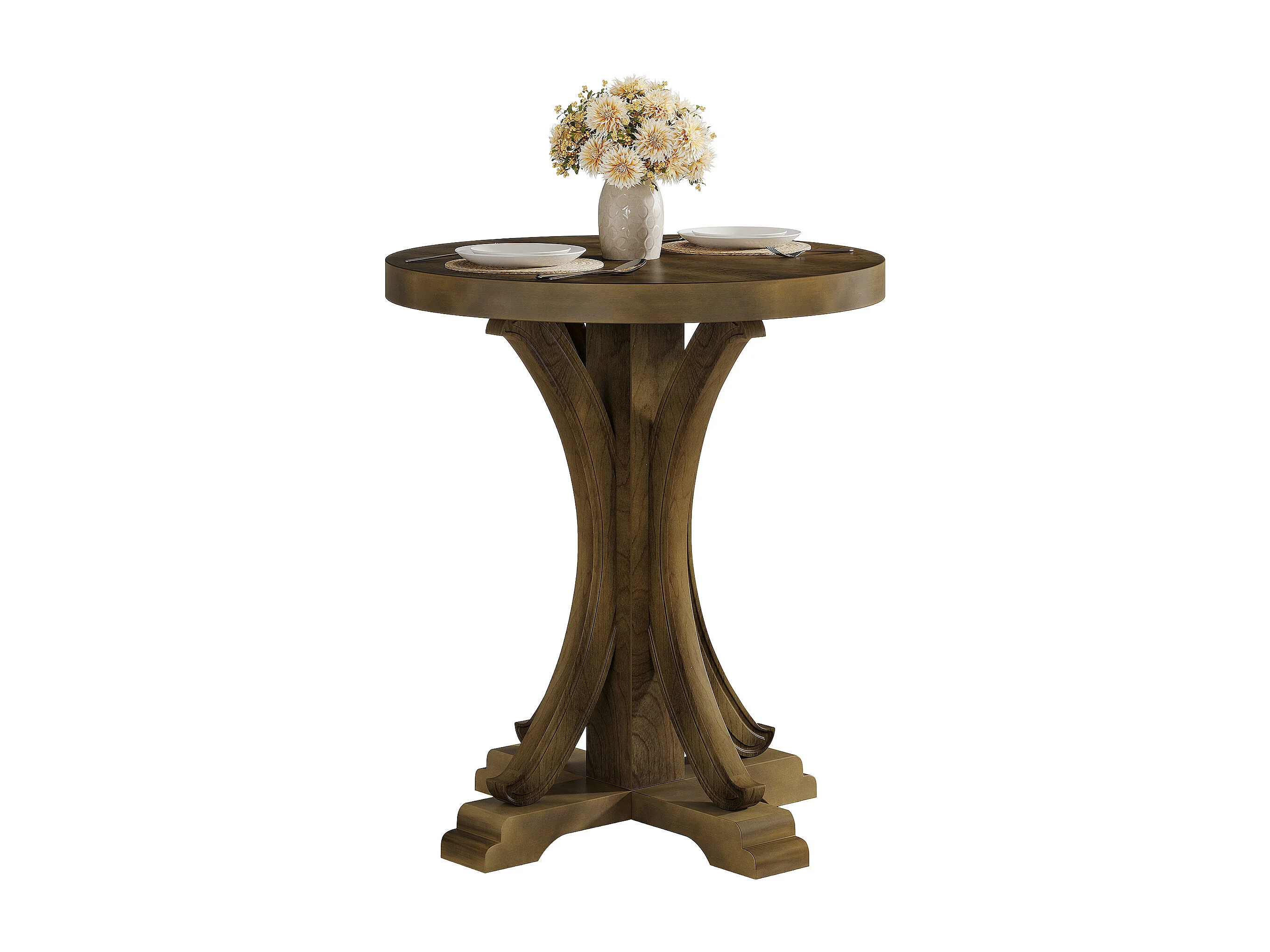 Table de salle à manger ronde pour 2 personnes, table de bistro rétro avec pieds en sapin massif