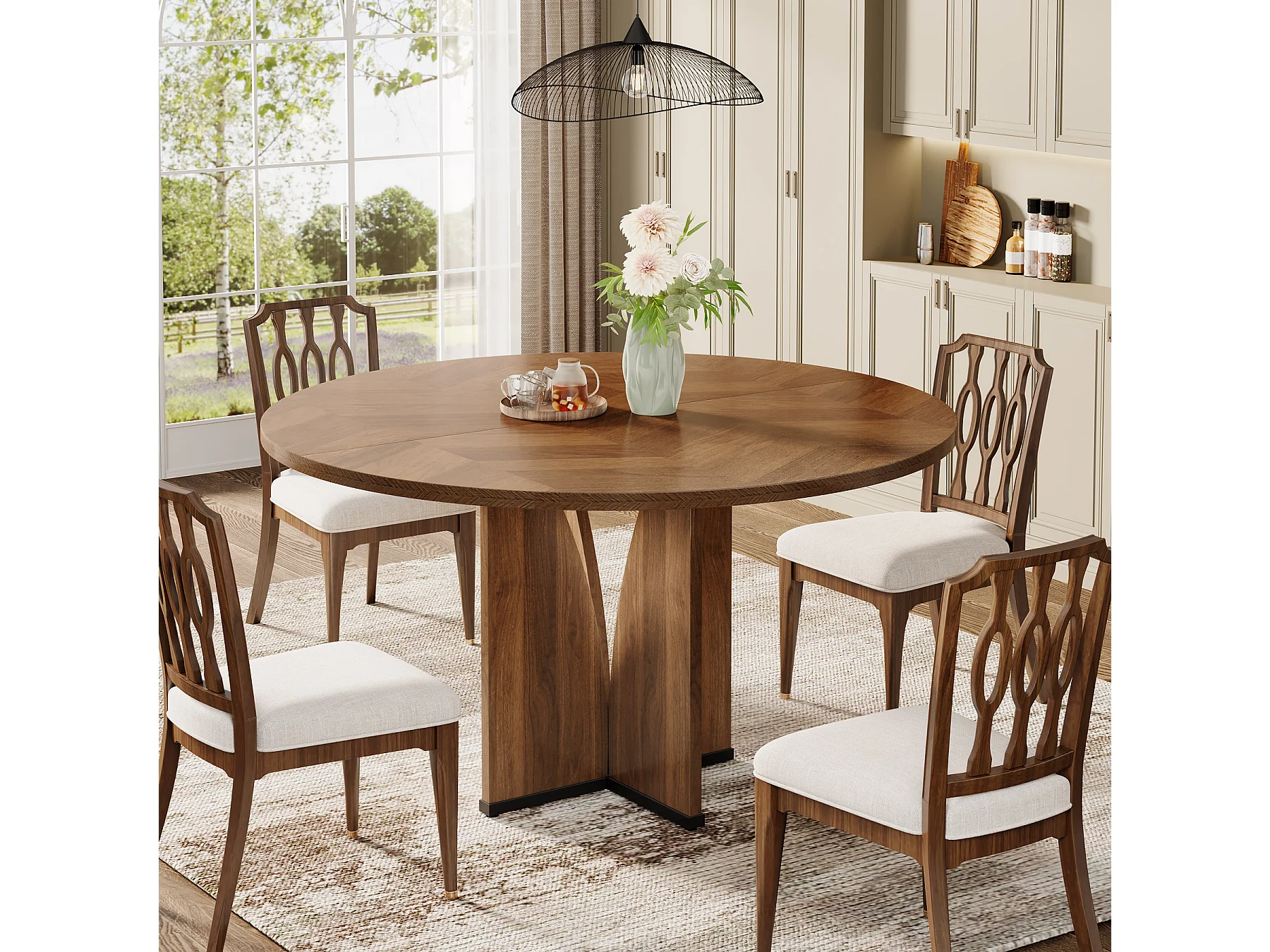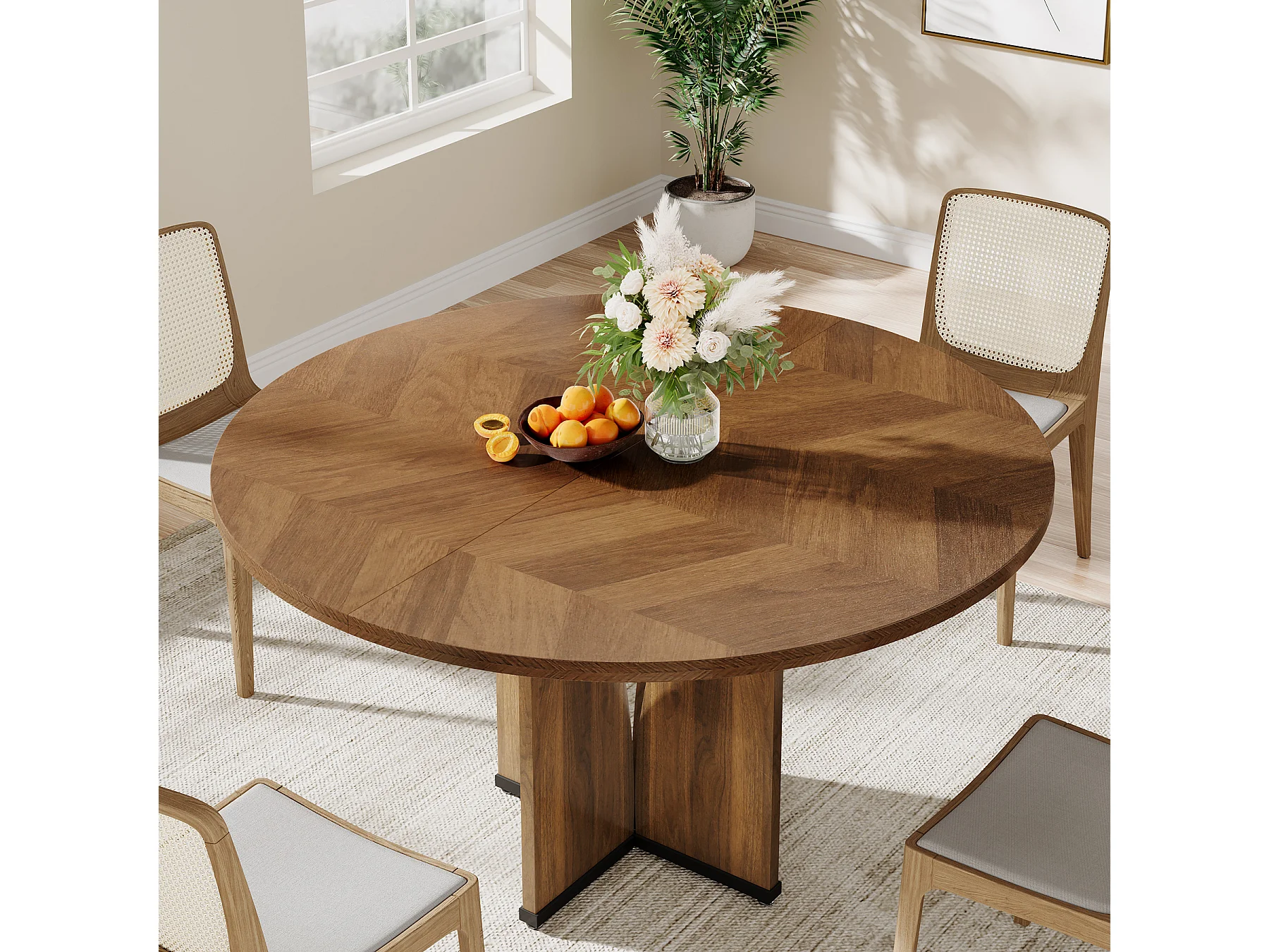 Table de salle à manger ronde pour 4 personnes, table de cuisine rustique avec pied central stable en forme de X