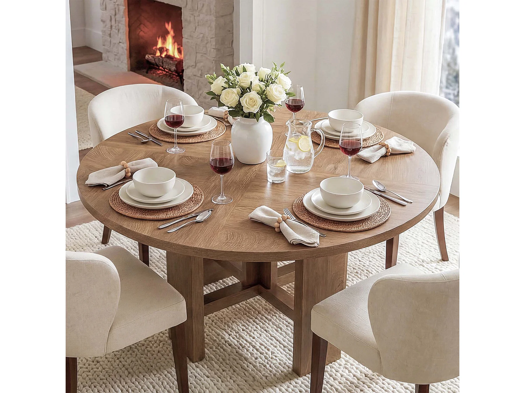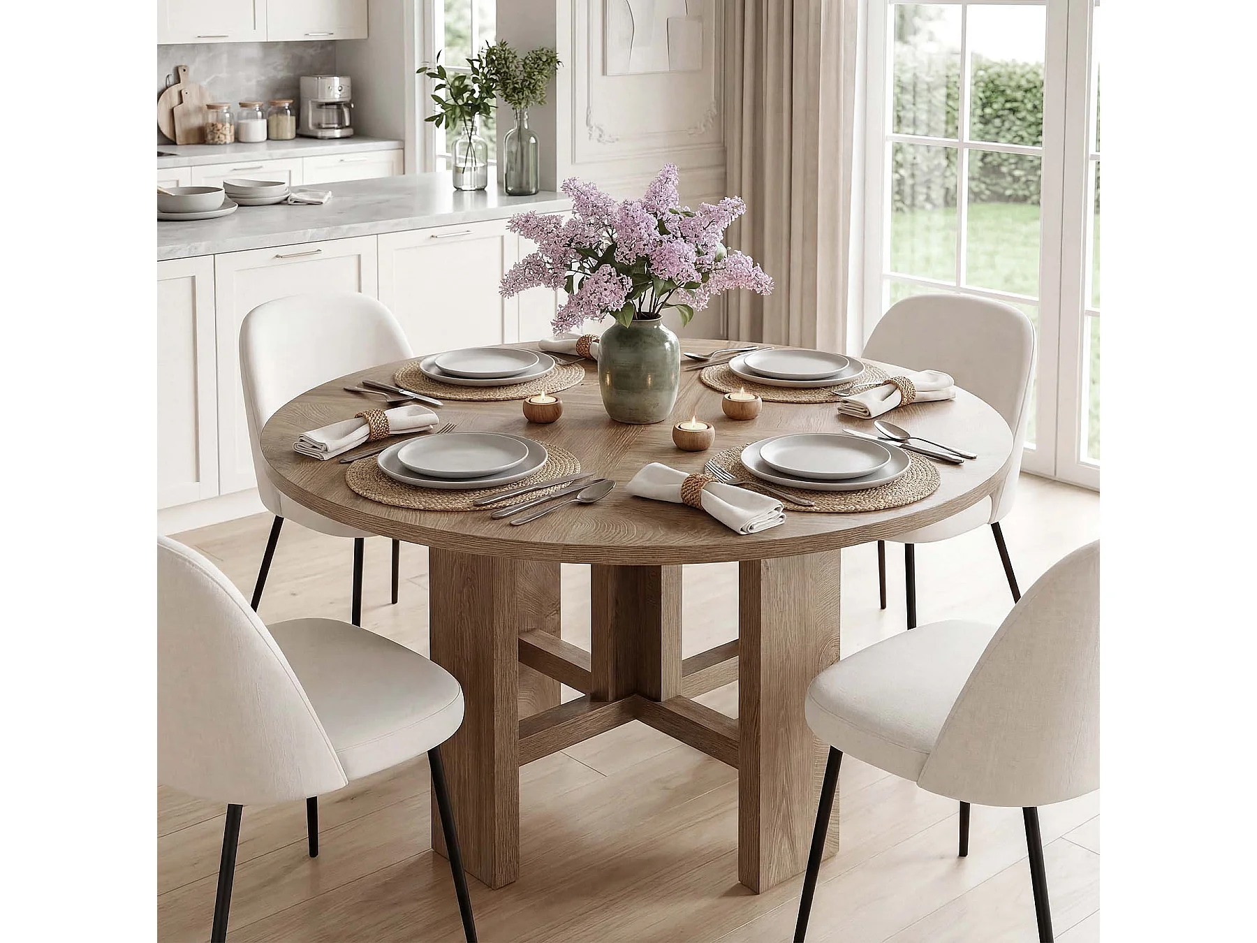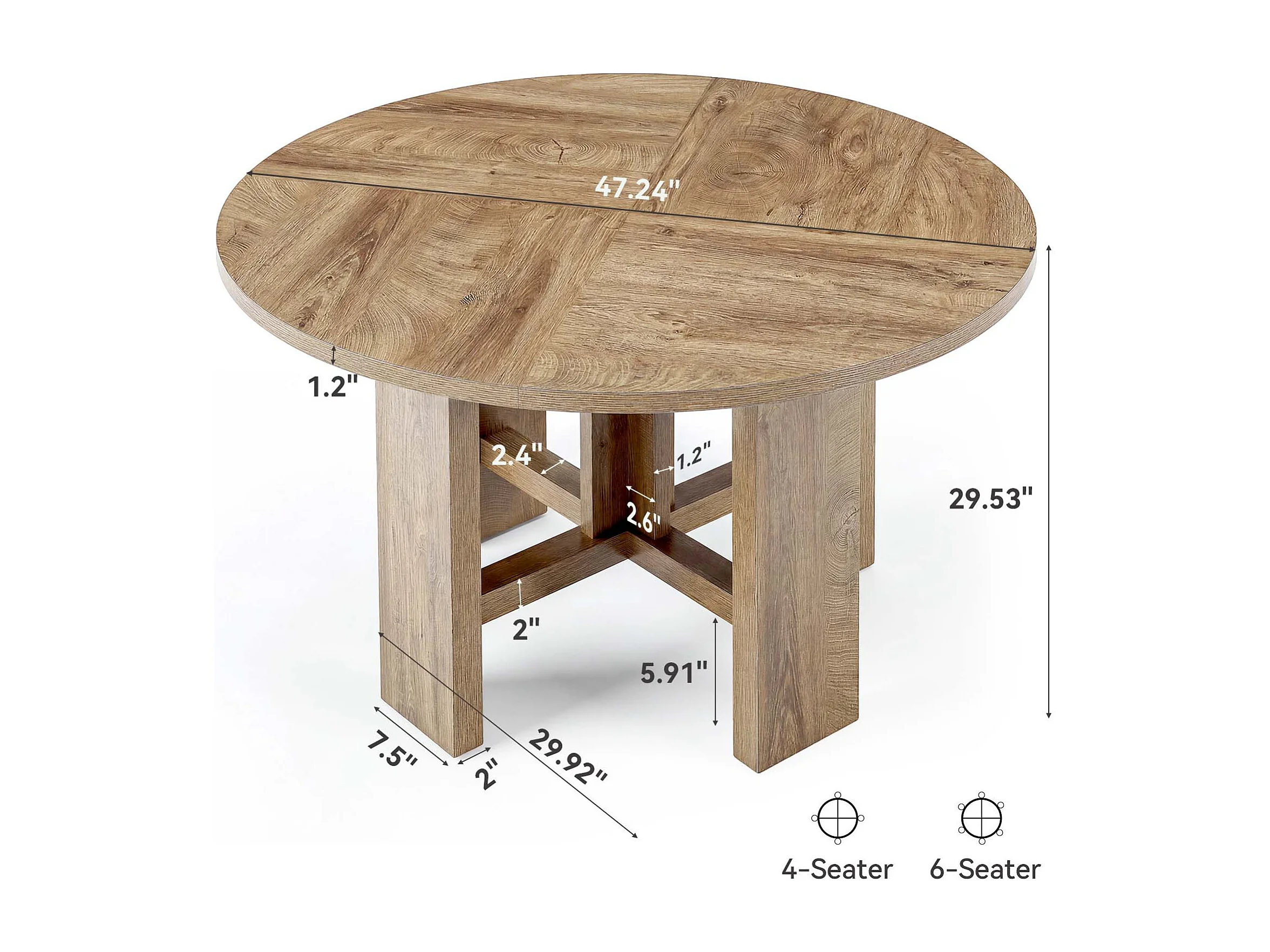 Table de salle à manger ronde, table de cuisine de 120 cm pour 6 personnes, table de salle à manger de style campagnard