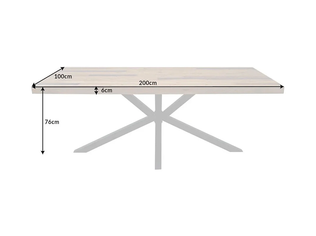 Table de salle à manger SOLARA – Bois de pin recyclé et métal noir – 200 cm – Plateau épais 60 mm – Style industriel