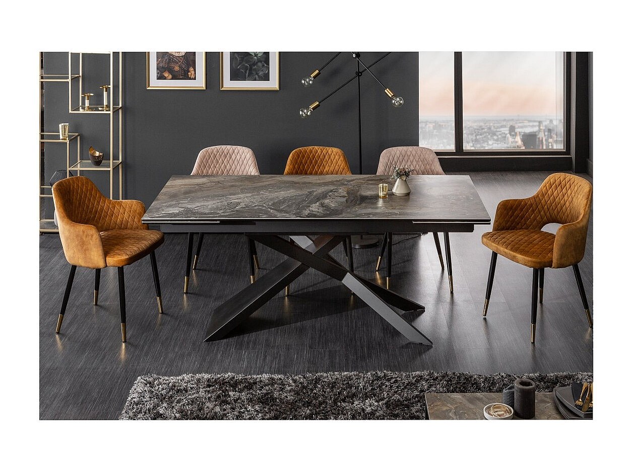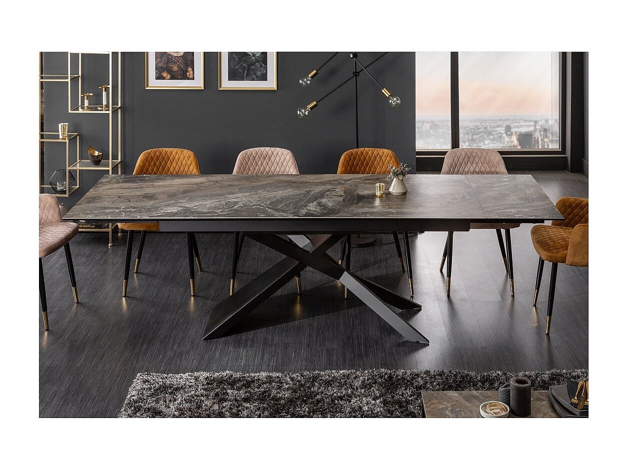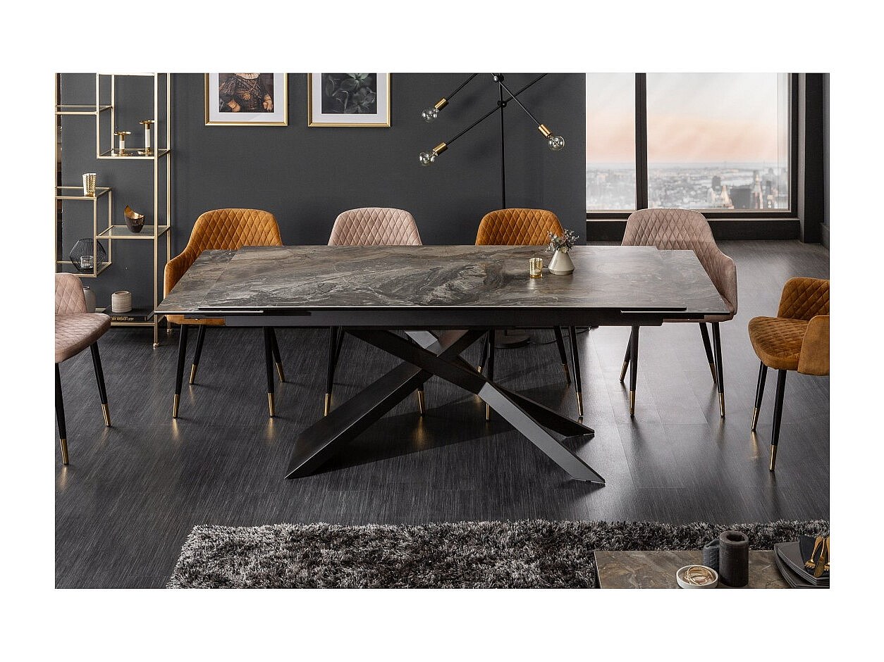Table de salle à manger STELIX 180–220–260 cm – Plateau en céramique effet marbre et verre trempé