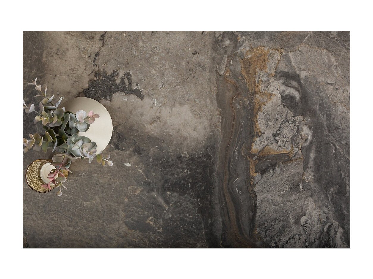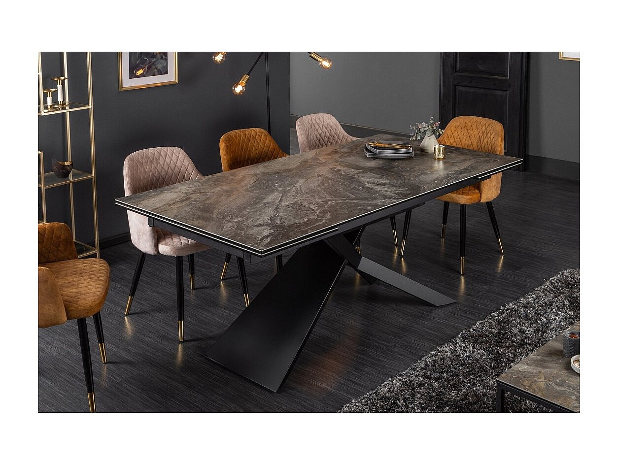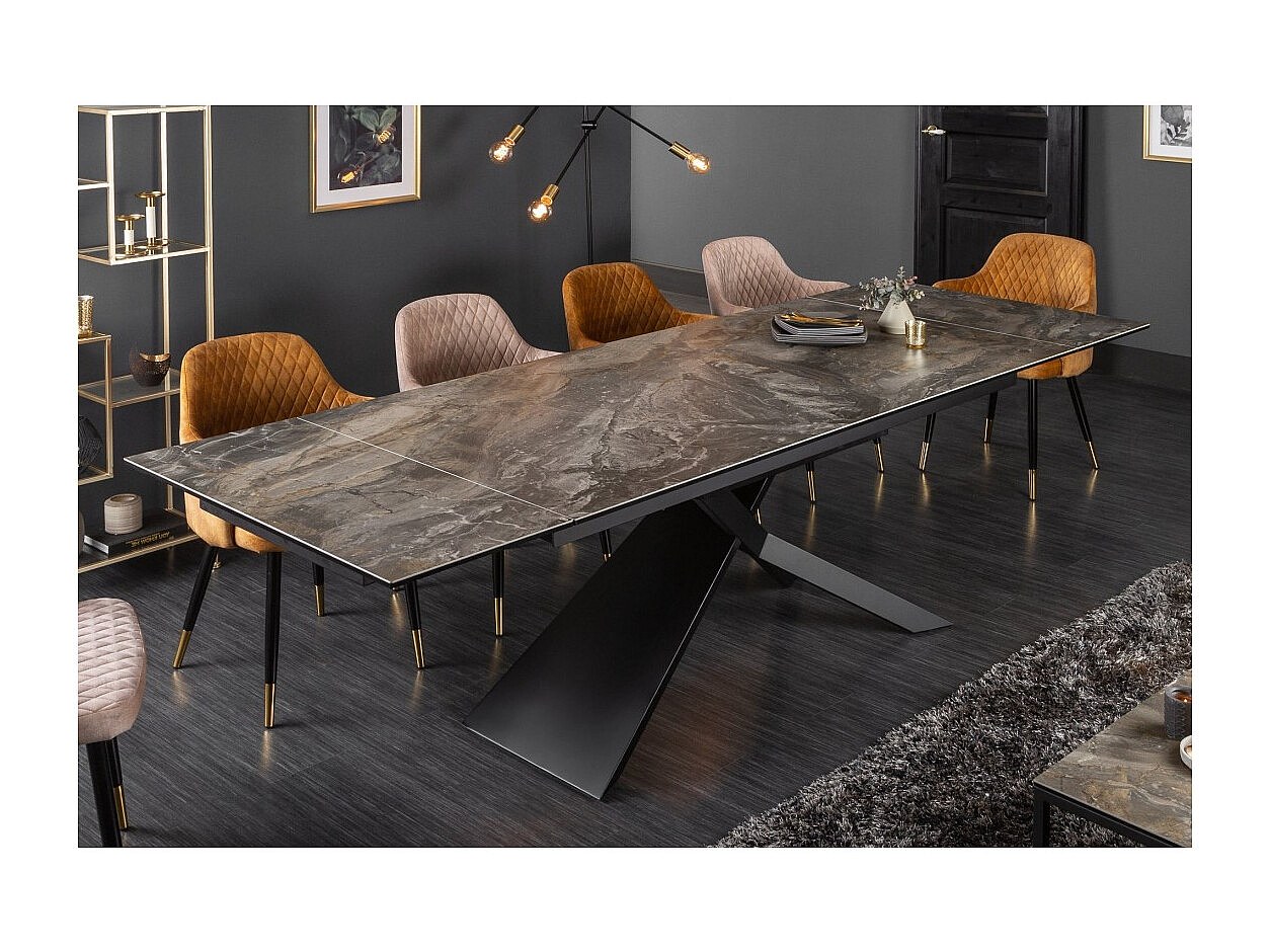 Table de salle à manger STELIX 180–220–260 cm – Plateau en céramique effet marbre et verre trempé