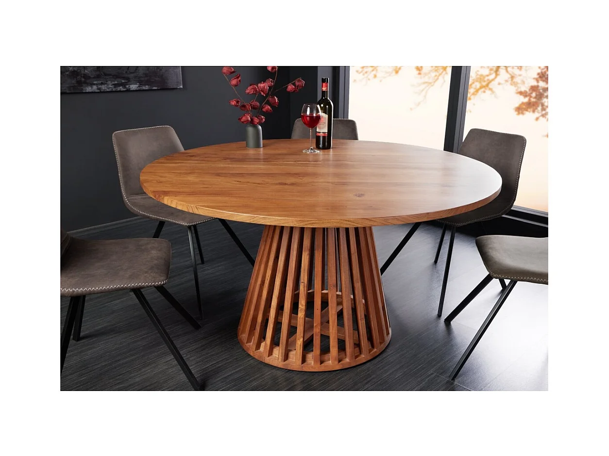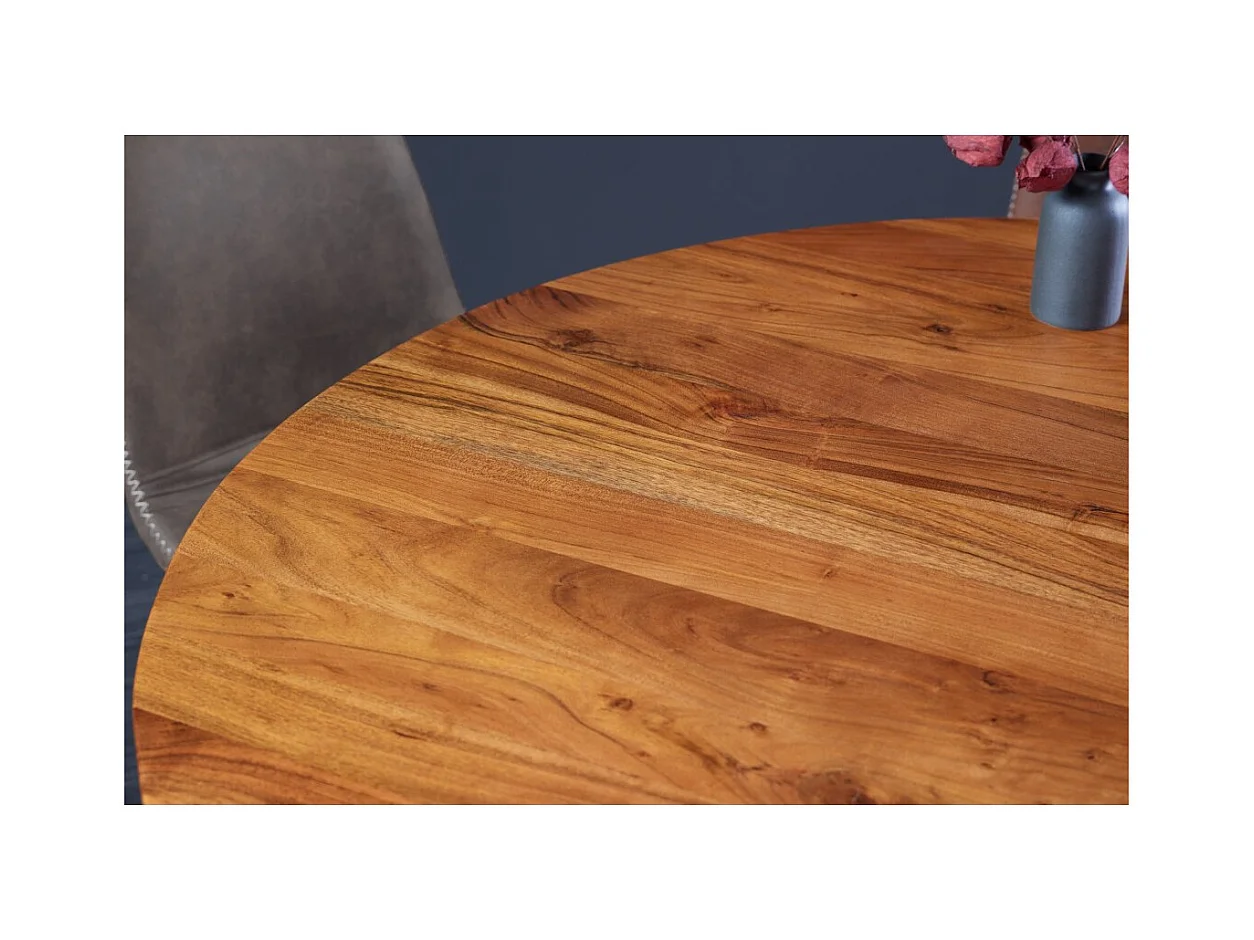 Table de salle à manger TALMA 130 cm – Plateau rond en acacia verni – Esprit rustique et chaleureux