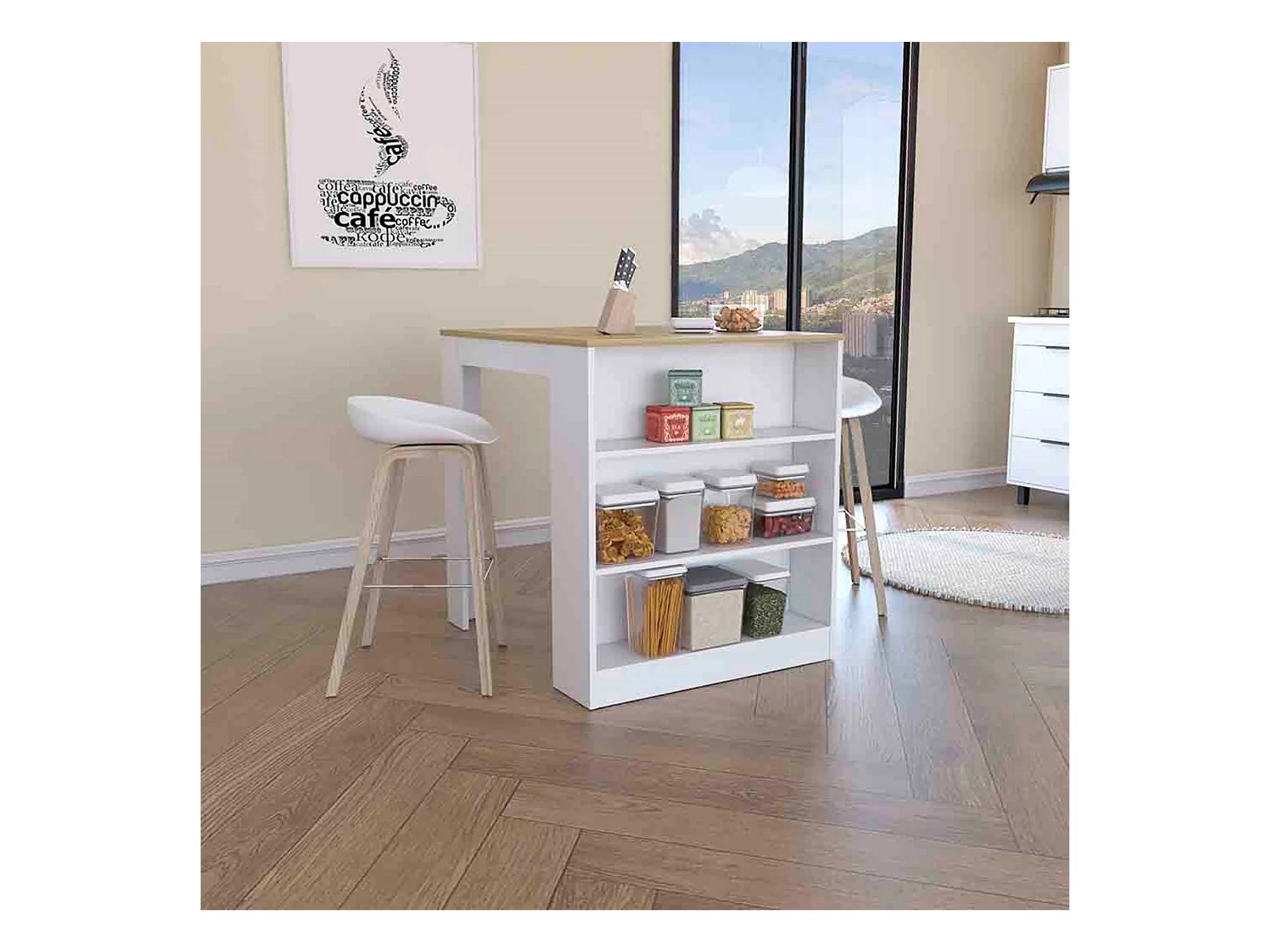 Table de salle à manger Tanna avec des étagères Blanc neige / Dune