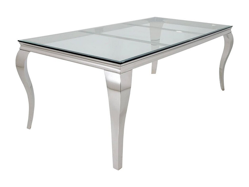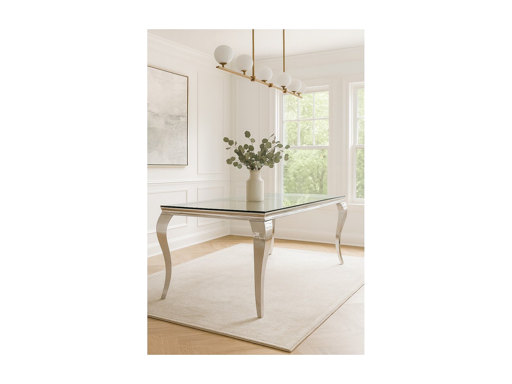 Table de salle à manger VELENA – Rectangulaire 200 cm – Verre trempé et acier argenté – Style baroque chic